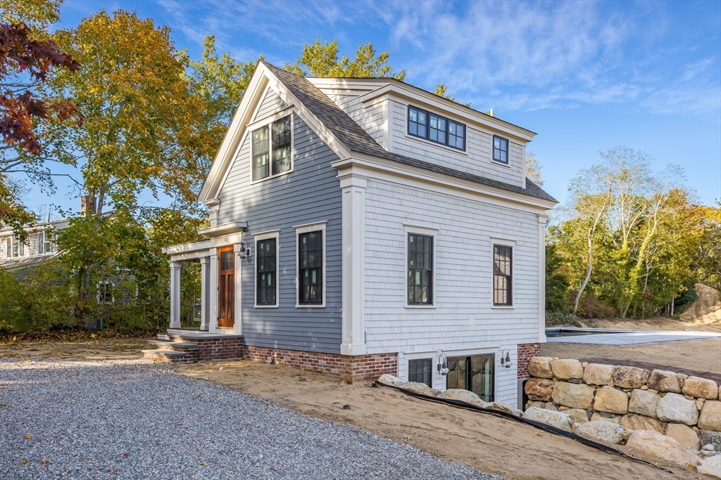 Blending resort-style amenities with timeless New England character, this exceptional Harwich compound redefines multi-generational coastal living. A fully restored antique guest house pairs seamlessly with a brand-new, custom-built three-bedroom main residence by Whitcomb Building, one of Cape Cod’s premier craftsmen. Together they create a campus-style retreat distinguished by nautical detailing and masterful woodwork. The main home features a farmer’s porch with skylights and hanging bench, a chef’s kitchen with island and sliders to the porch and yard, a first-floor primary suite, and two spacious upstairs bedrooms plus lounge. The antique offers vaulted ceilings, exposed beams, and a finished walk-out lower level with private patio. A handcrafted stone wall connects both homes and integrates the pool, bluestone terrace, and fire-pit area. Set in a central Harwich location near beaches, shops, and dining, this property unites craftsmanship, resort luxury, and Cape Cod charm.