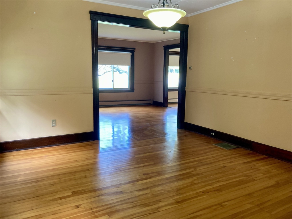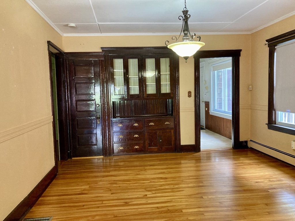 New List! This single-family residence presents an inviting home, ready to welcome you in move-in-ready condition with beautiful hardwood floors, classic original wood trim & doors including built in dining rm china cabinet, & 2 first floor bedrooms. Total of three bedrooms, 1 bath, appliances included, home office w/double closet & door at front of house, town water/sewer, 1,779 square feet of living area, enclosed side porch entrance, generous .31 Acre lot offering ample space for relaxation and recreation. Built in 1940, this single-family residence is seeking its next owner. 2025 new attic blown in insulation. Quick close possible.