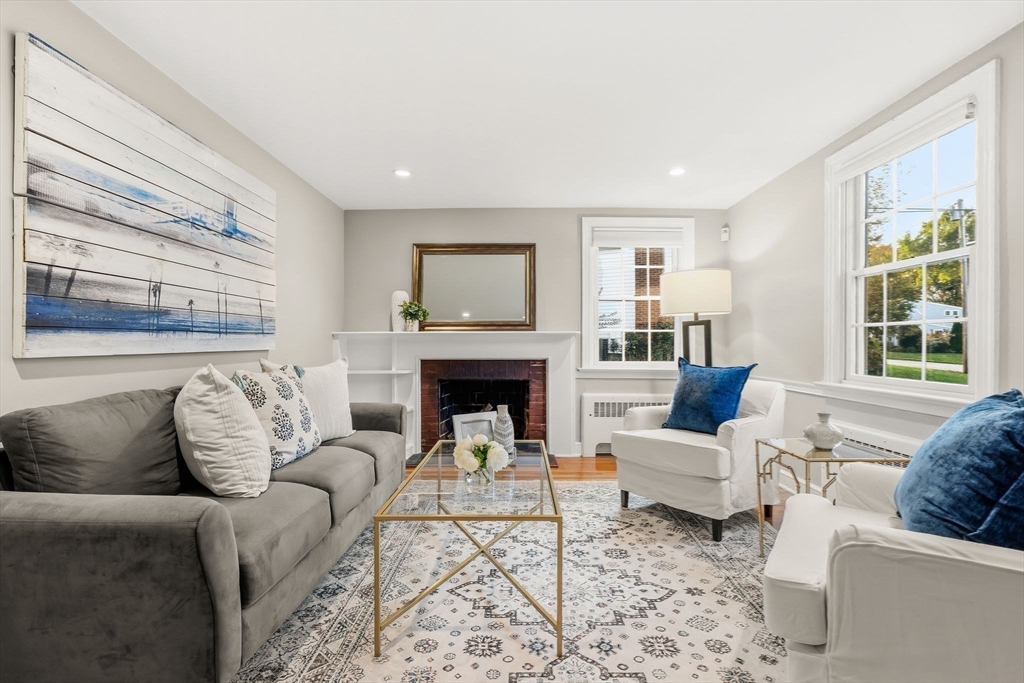 Welcome to this picture-perfect Cape located on a quiet cul-de-sac in Hingham's beloved Bradley Woods neighborhood. Sunlight streams through every room — from the kitchen that opens to the dining room, to the inviting family room with access to a private deck and backyard. A classic living room with a fireplace provides a cozy spot to relax, while three well-sized bedrooms and a full bath complete the upstairs. Beautiful hardwood floors, numerous recent updates, and an attached garage add comfort and convenience. Enjoy the best of Hingham living — just a short walk to the Shipyard's waterfront dining, shopping, and the commuter boat to Boston. This home perfectly combines neighborhood charm, everyday ease, and a true sense of community.