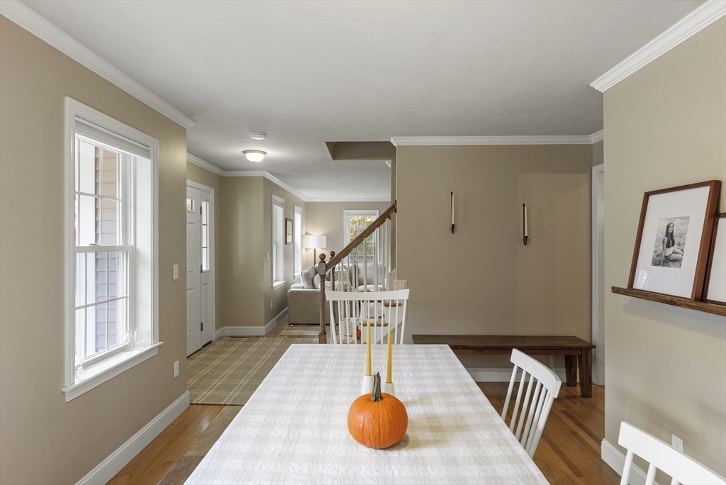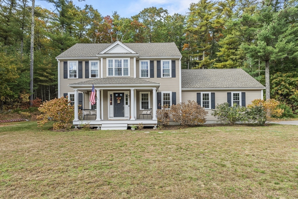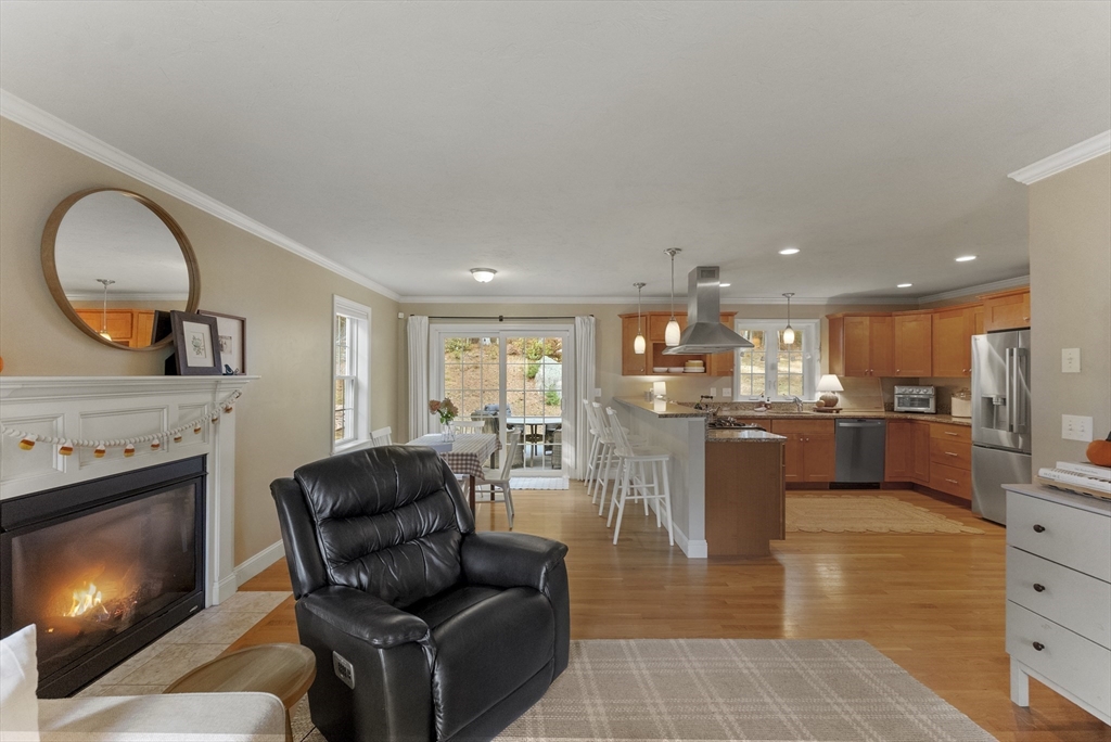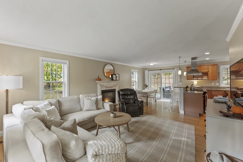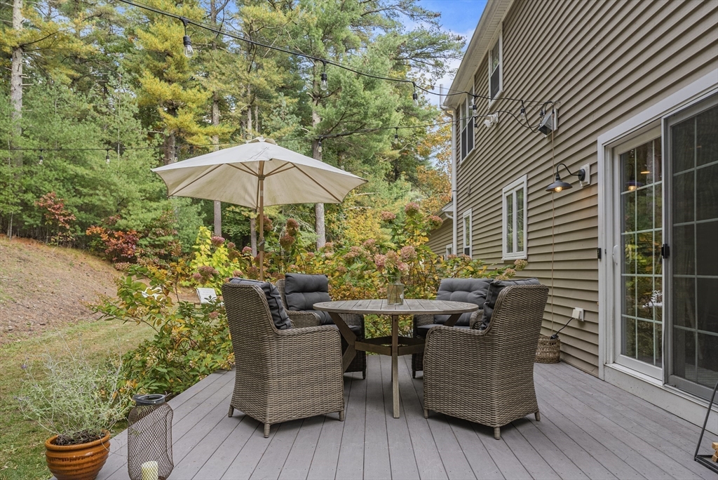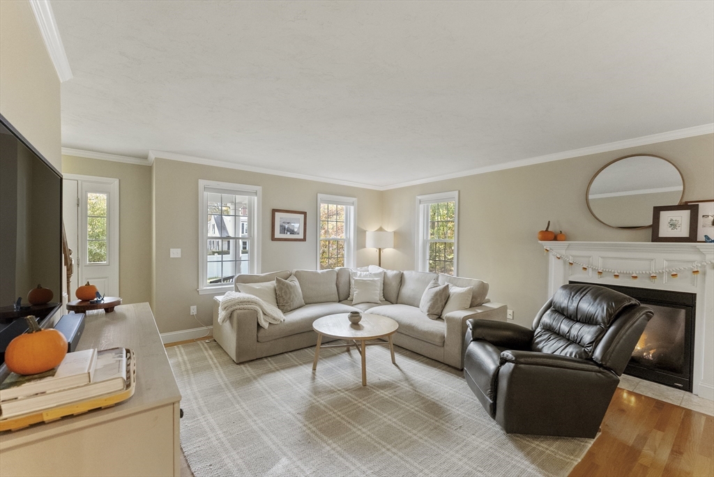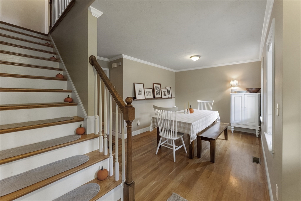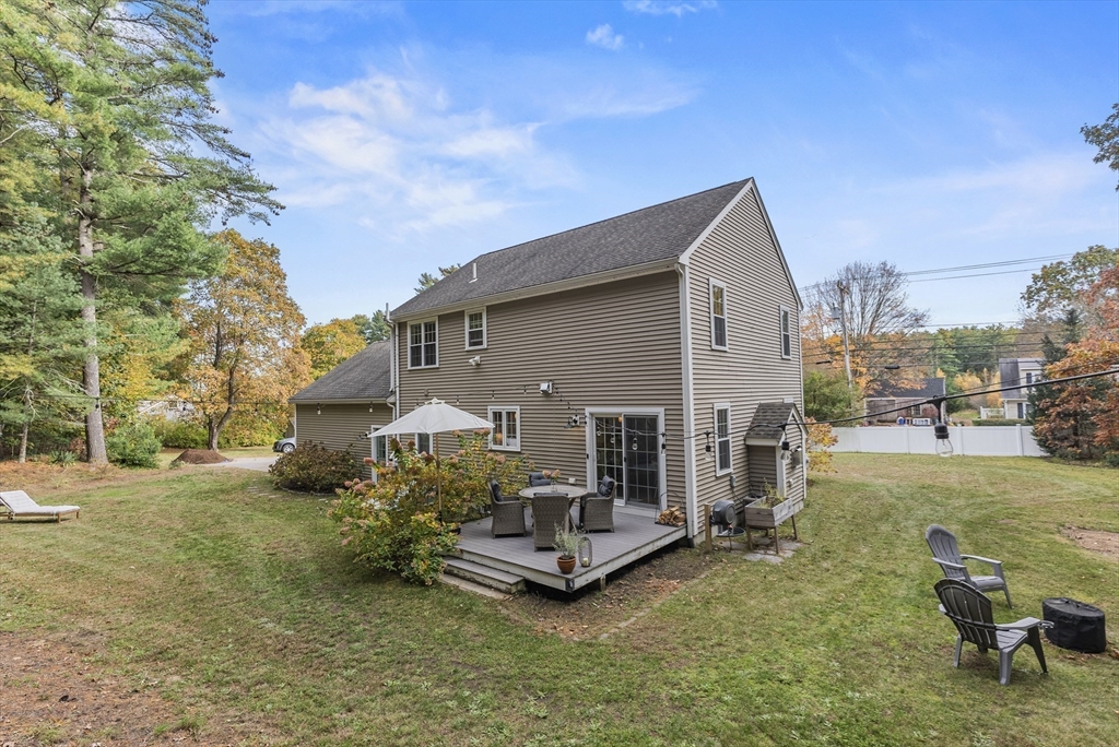 FALL in LOVE for the holidays!! This Pottery Barn Beautiful Colonial home is 12 years young and has been lovingly maintained by one owner and it shows! Perfectly situated on a huge, private lot with white privacy fence and surrounded by conservation land. You will love the high ceilings, open floor plan, neutral palette and gleaming hardwood floors! Inviting gas fireplace. Central A/C. Gorgeous chef's kitchen with warm honey cabinetry, SS appliances, pantry and hooded gas stove with peninsula and wonderful dining area. Large formal dining room for your holiday dinners and lovely 1st fl bath with laundry. Slider leads to composite deck for extra outdoor entertaining. Oversized 2 car garage attached w/side entry. Invisible dog fence. Fabulous finished basement provides added flex space plus craft room! 3 generous bedrooms up including huge primary BR w/ walk-in closet. Spacious bath w/double vanity. 2nd fl. landing provides extra nook for desk/office space. Walk-up attic. A REAL BEAUTY!!