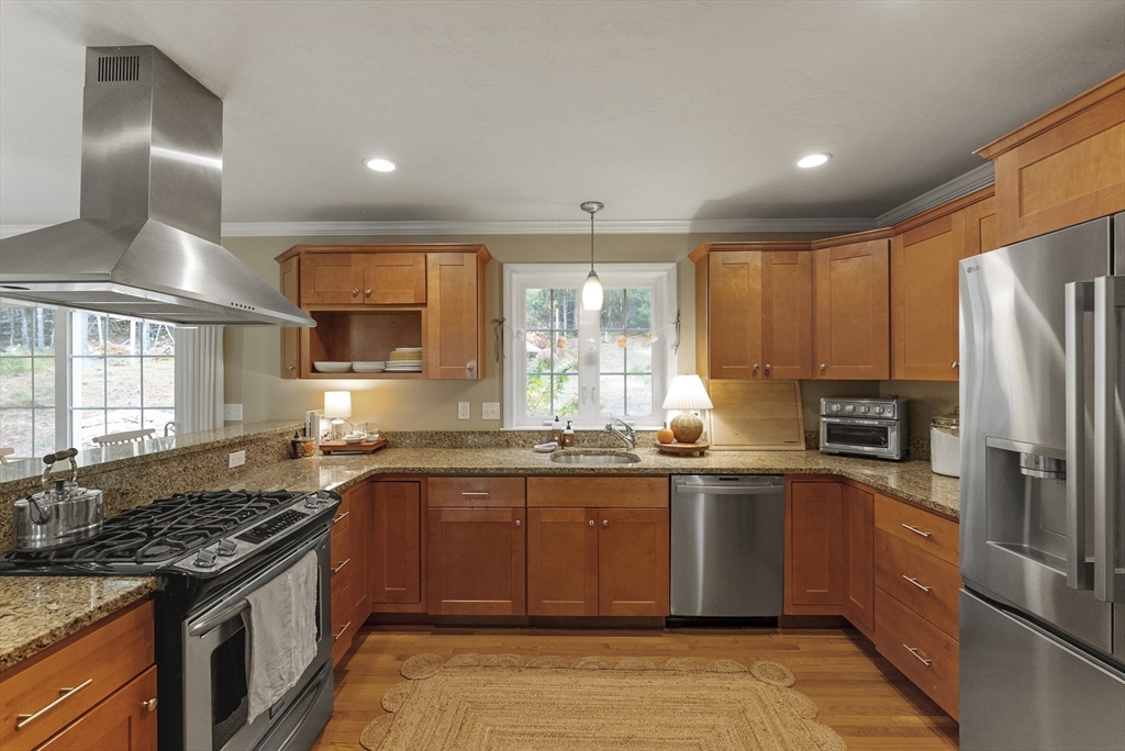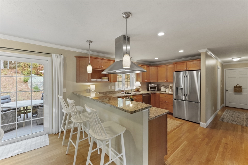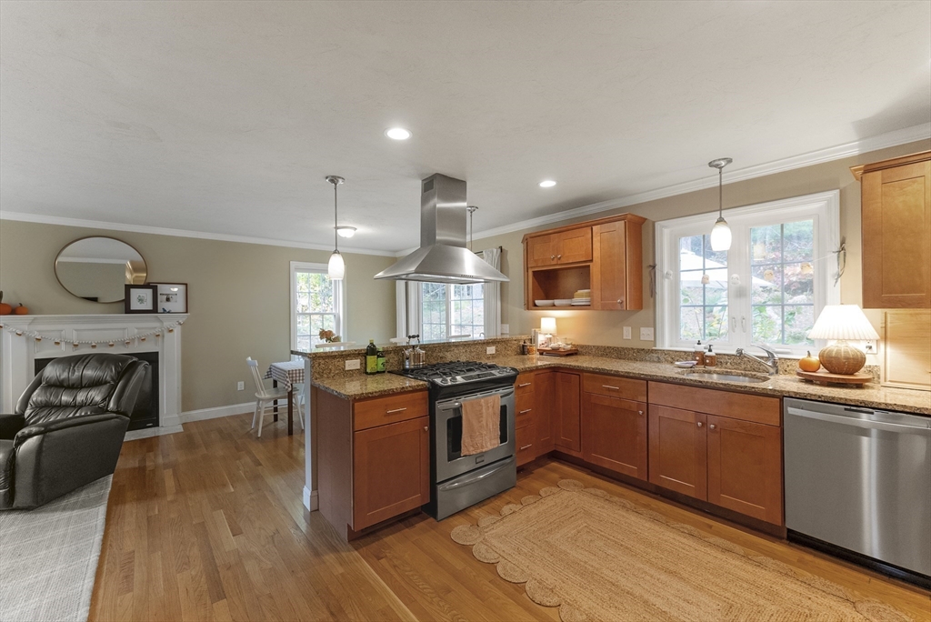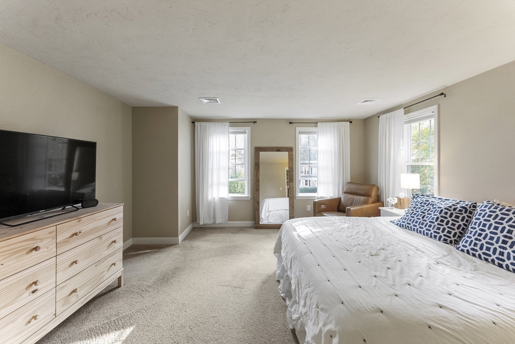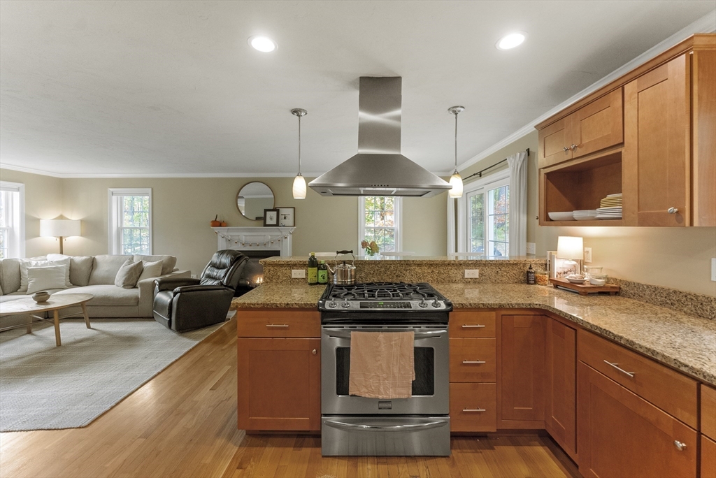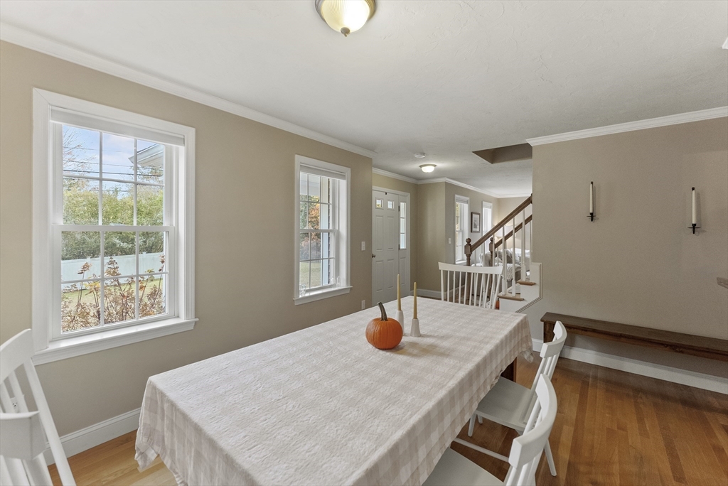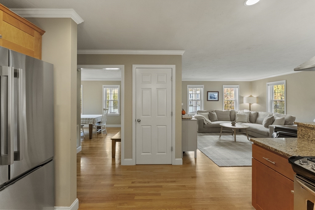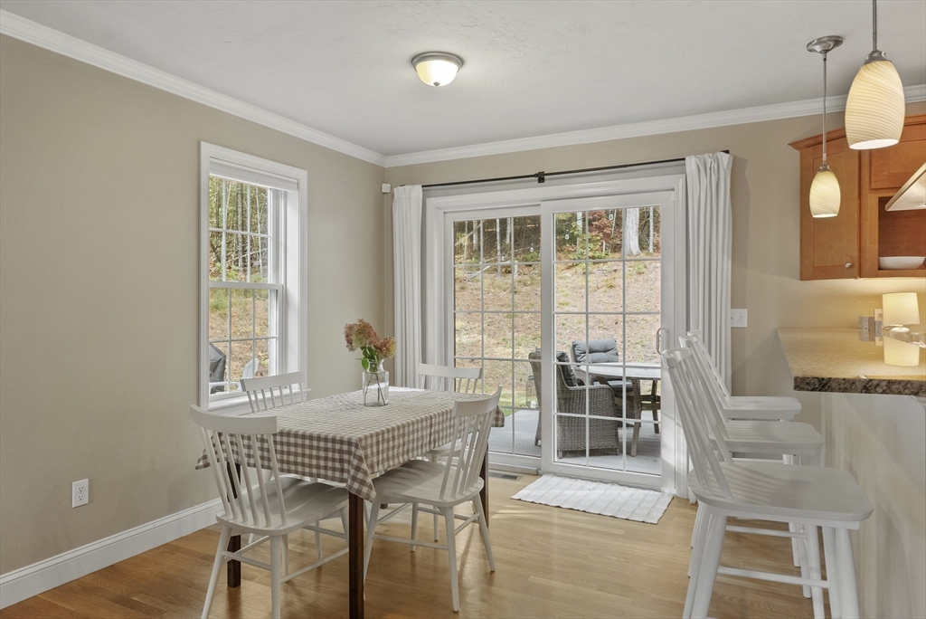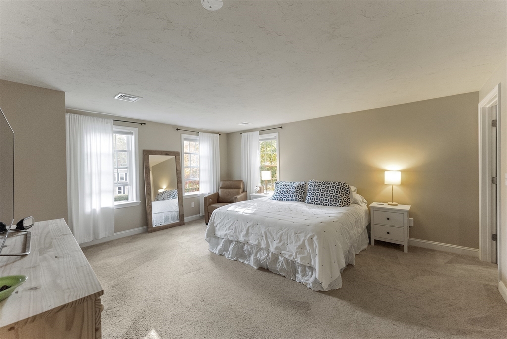 FALL in LOVE for the holidays!! This Pottery Barn Beautiful Colonial home is 12 years young and has been lovingly maintained by one owner and it shows! Perfectly situated on a huge, private lot with white privacy fence and surrounded by conservation land. You will love the high ceilings, open floor plan, neutral palette and gleaming hardwood floors! Inviting gas fireplace. Central A/C. Gorgeous chef's kitchen with warm honey cabinetry, SS appliances, pantry and hooded gas stove with peninsula and wonderful dining area. Large formal dining room for your holiday dinners and lovely 1st fl bath with laundry. Slider leads to composite deck for extra outdoor entertaining. Oversized 2 car garage attached w/side entry. Invisible dog fence. Fabulous finished basement provides added flex space plus craft room! 3 generous bedrooms up including huge primary BR w/ walk-in closet. Spacious bath w/double vanity. 2nd fl. landing provides extra nook for desk/office space. Walk-up attic. A REAL BEAUTY!!