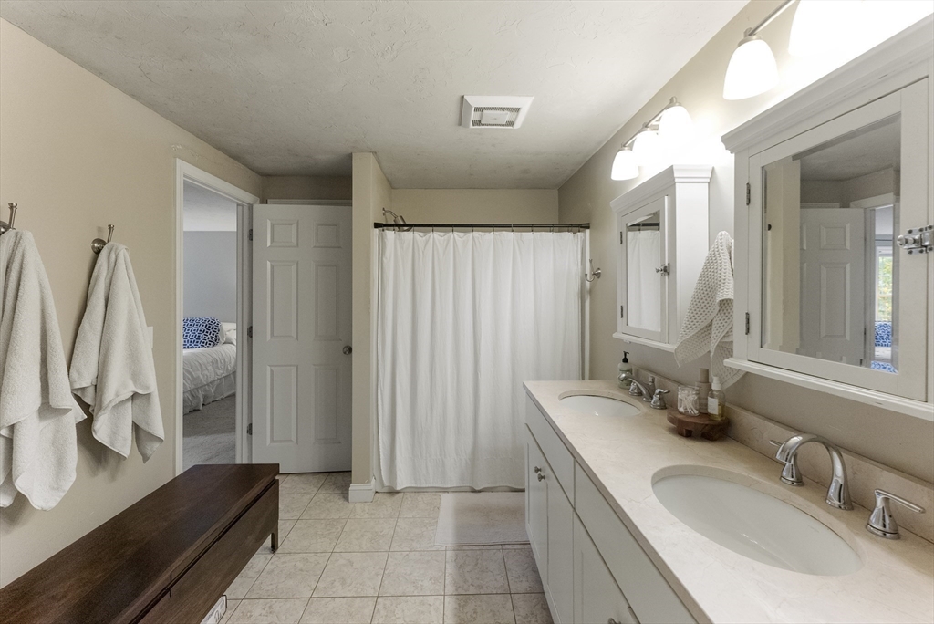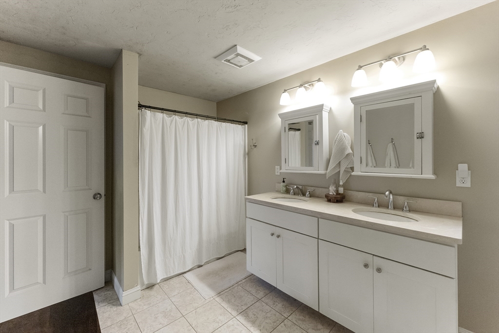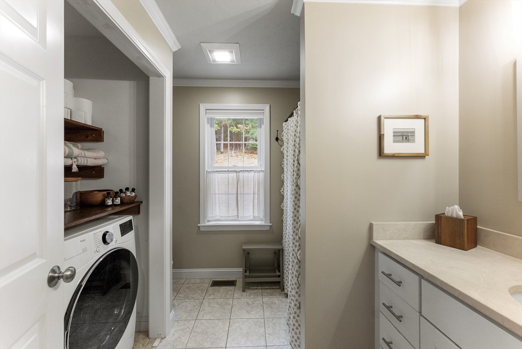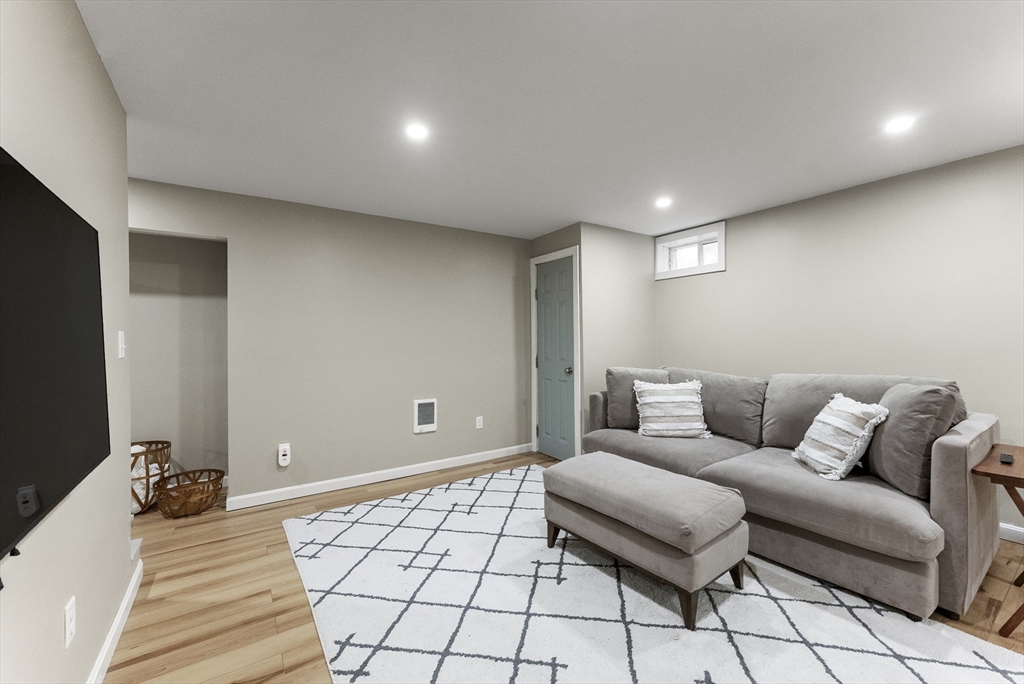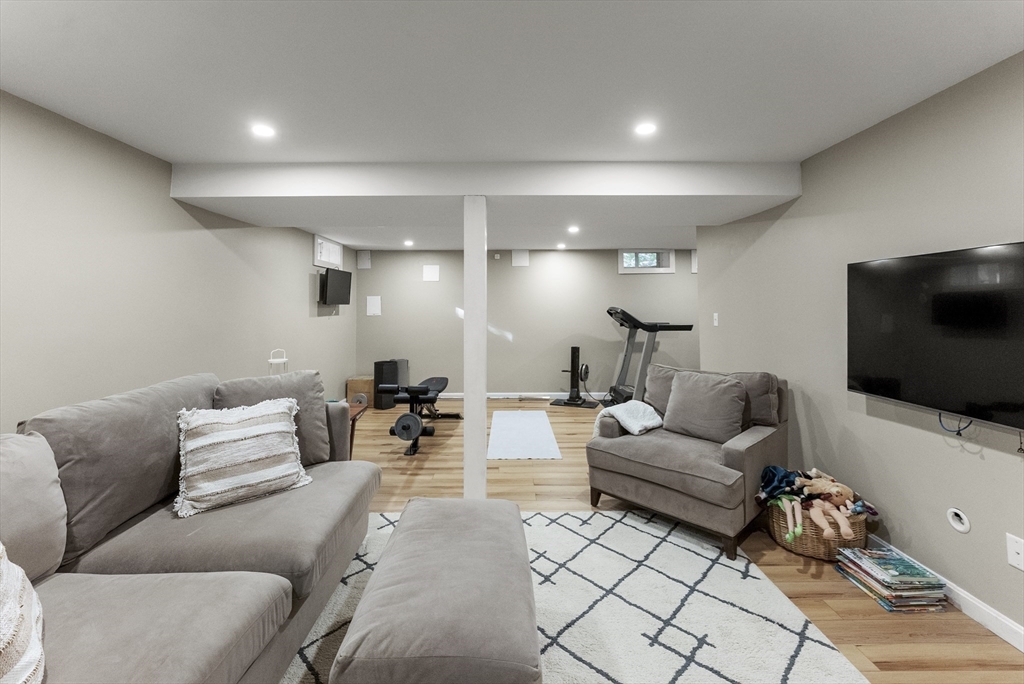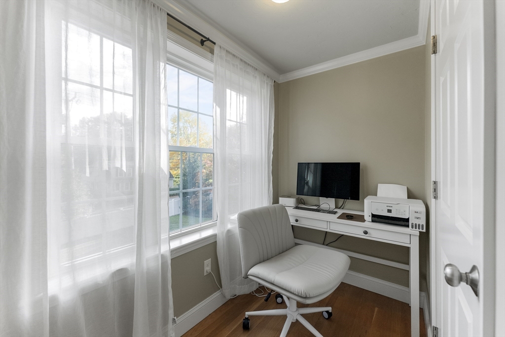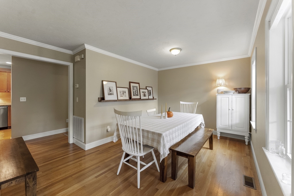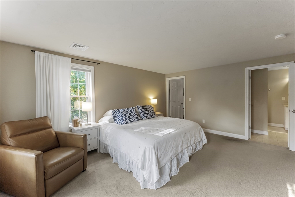 FALL in LOVE for the holidays!! This Pottery Barn Beautiful Colonial home is 12 years young and has been lovingly maintained by one owner and it shows! Perfectly situated on a huge, private lot with white privacy fence and surrounded by conservation land. You will love the high ceilings, open floor plan, neutral palette and gleaming hardwood floors! Inviting gas fireplace. Central A/C. Gorgeous chef's kitchen with warm honey cabinetry, SS appliances, pantry and hooded gas stove with peninsula and wonderful dining area. Large formal dining room for your holiday dinners and lovely 1st fl bath with laundry. Slider leads to composite deck for extra outdoor entertaining. Oversized 2 car garage attached w/side entry. Invisible dog fence. Fabulous finished basement provides added flex space plus craft room! 3 generous bedrooms up including huge primary BR w/ walk-in closet. Spacious bath w/double vanity. 2nd fl. landing provides extra nook for desk/office space. Walk-up attic. A REAL BEAUTY!!