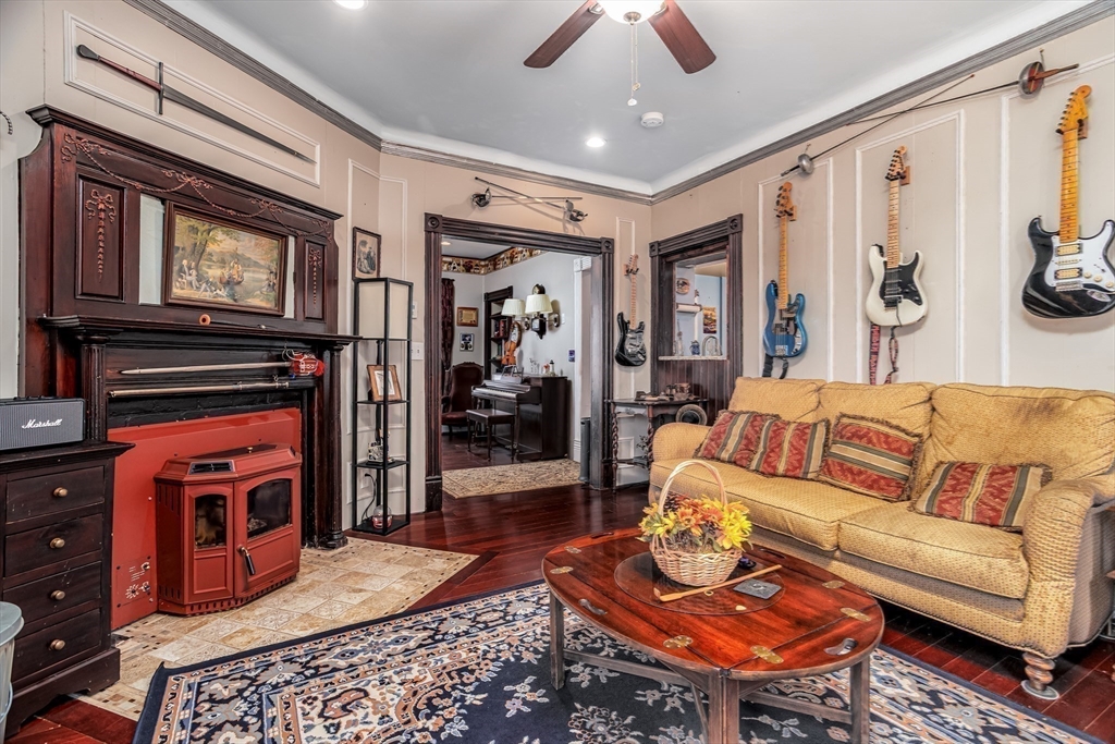 What a fantastic opportunity to own this magnificent zoned two-family home including two-car garage as an investment property, in-law setup or enjoy all the space this home has to offer as a single family. The choices are endless! With 4-5 bedrooms, two kitchens, separate electric meters and a finished third floor, not counted in original square footage, there is space to enjoy for everyone. Large room sizes and high ceilings give way to an abundance of natural light throughout. Gleaming hard-wood floors, pellet stove insert in one of the fireplaces and original character throughout the home is nothing short of spectacular. The first kitchen is an eat-in, massive dream kitchen with an abundance of cabinets and granite counters. The second is also nicely appointed. Bathrooms are updated. Roof and back deck were also redone within five years.