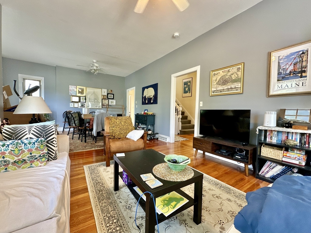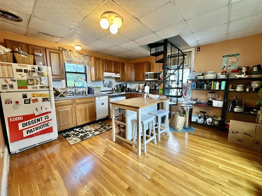 The first floor of this duplex apartment features an eat in kitchen with dishwasher, private deck off of the kitchen, a full bath, very large combined living room and dining room, separate office space, and in unit washer/dryer. The second floor includes two bedrooms, a half bath, and extra storage space. There are 2 off street parking spot included! Located right in the heart of Centre St, the location could not be better. Just a block from Jamaica Pond and lots of other amenities like the Orange line at Stonybrook station (8 mins away), Wholefoods, CVS, Life Alive, Tres Gatos, and countless other great restaurants and coffee shops just moments from your front door.