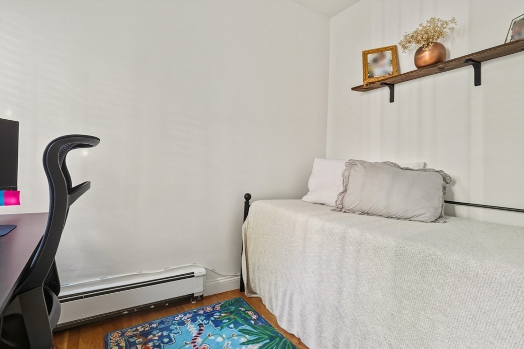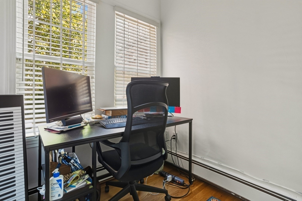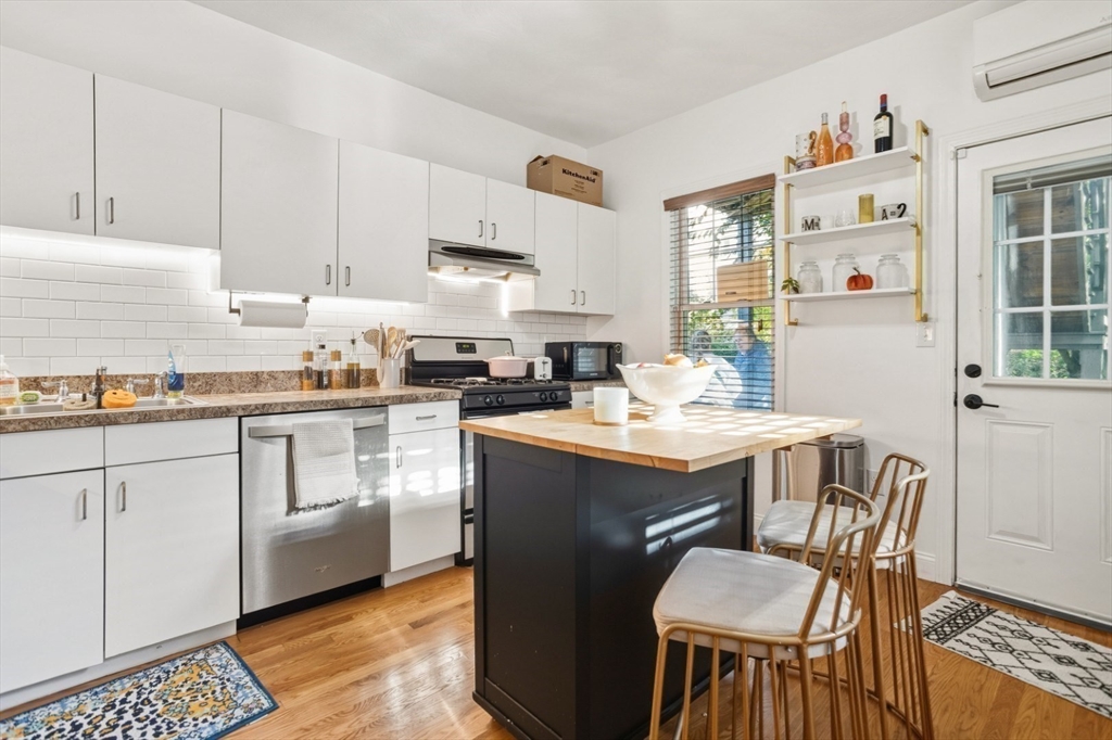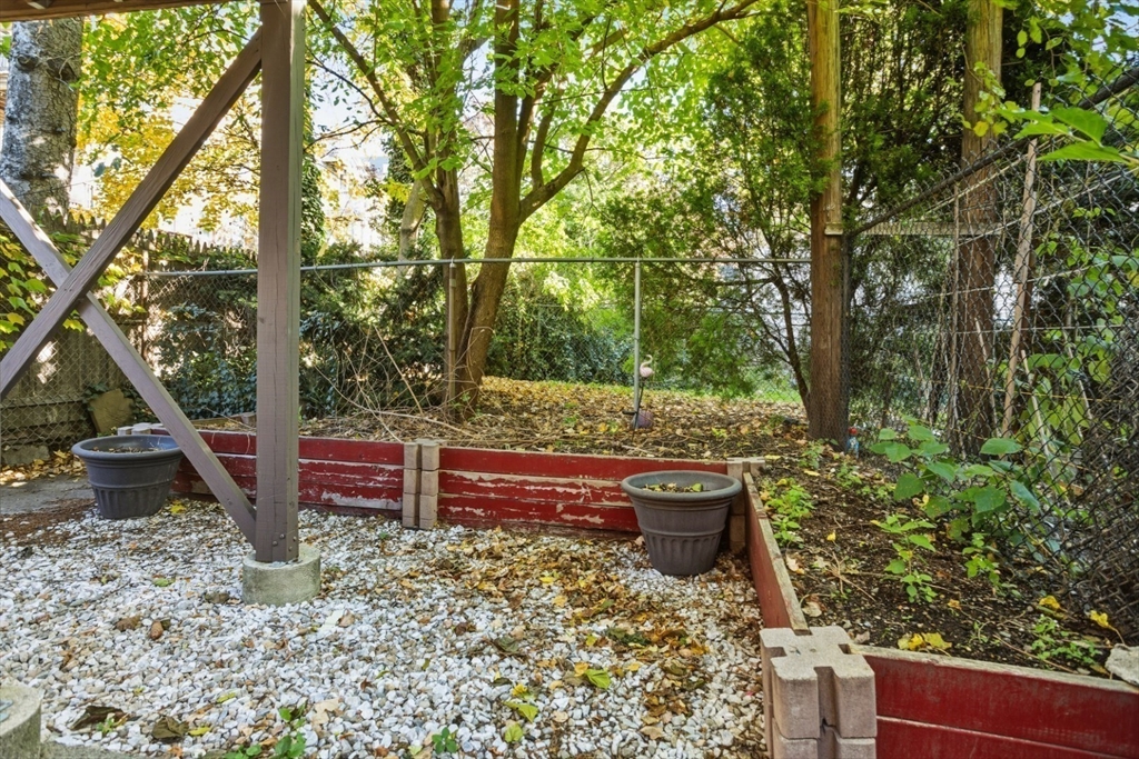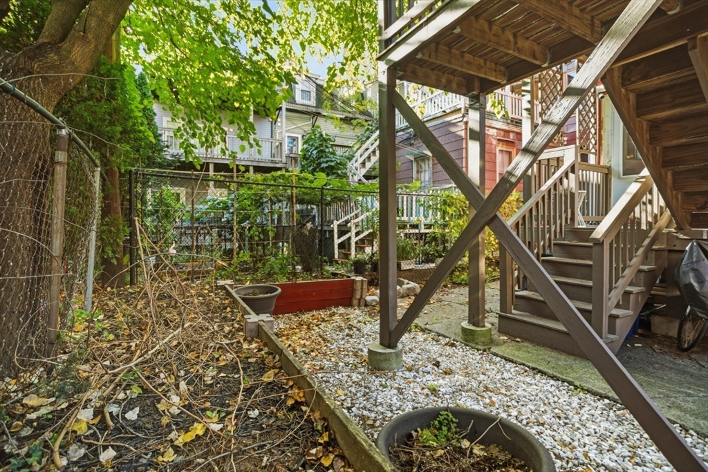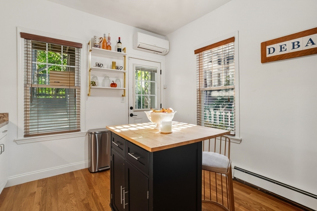 The best of both worlds: the outdoors and city living. Located in East Boston's Eagle Hill, this first floor unit welcomes natural light, a private porch and a fenced-in garden area. Imagine dining outside on a perfect summer evening in the garden area. Enjoy the comfort of a spacious living room, eat-in kitchen with stainless steel appliances, nicely sized primary bedroom with the added flexibility of a bonus room for a guest, home office or fitness equipment. The condo boasts an in-unit washer and dryer for ease of lifestyle. Mini-splits provide air conditioning and heat along with the existing heat that is a natural gas powered baseboard heat. Designated storage space is in the basement. Explore the nearby parks, restaurants, shops and transportation options: the T's Blue line (1/2 mile away), a water taxi to the Seaport, Uber, and of course nearby Logan International Airport to name a few. This unit offers flexibility, city living, and outdoor space. What a lovely combination!