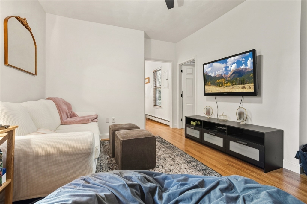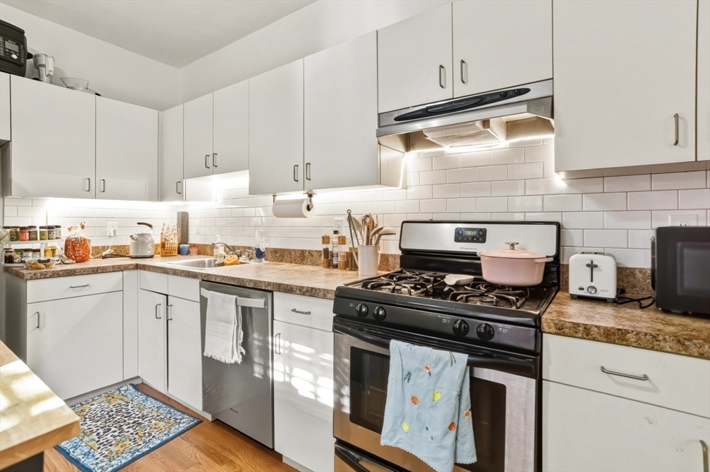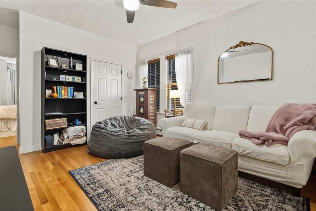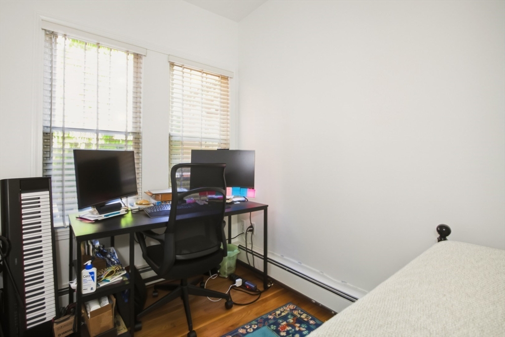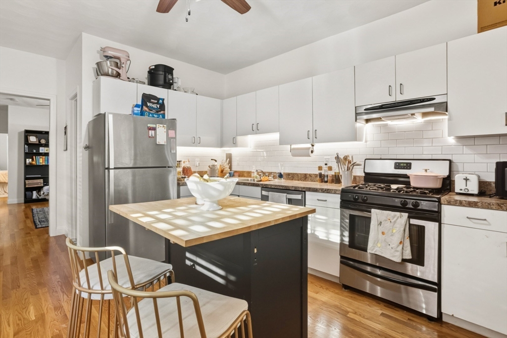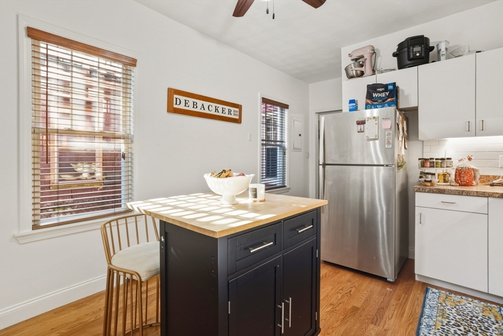 The best of both worlds: the outdoors and city living. Located in East Boston's Eagle Hill, this first floor unit welcomes natural light, a private porch and a fenced-in garden area. Imagine dining outside on a perfect summer evening in the garden area. Enjoy the comfort of a spacious living room, eat-in kitchen with stainless steel appliances, nicely sized primary bedroom with the added flexibility of a bonus room for a guest, home office or fitness equipment. The condo boasts an in-unit washer and dryer for ease of lifestyle. Mini-splits provide air conditioning and heat along with the existing heat that is a natural gas powered baseboard heat. Designated storage space is in the basement. Explore the nearby parks, restaurants, shops and transportation options: the T's Blue line (1/2 mile away), a water taxi to the Seaport, Uber, and of course nearby Logan International Airport to name a few. This unit offers flexibility, city living, and outdoor space. What a lovely combination!