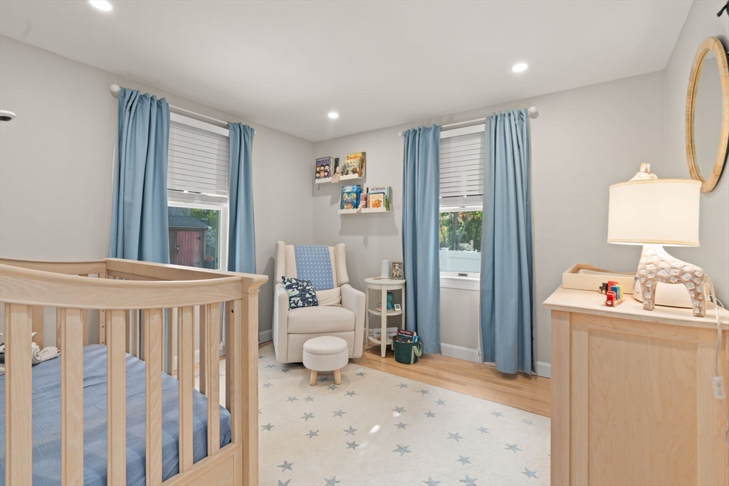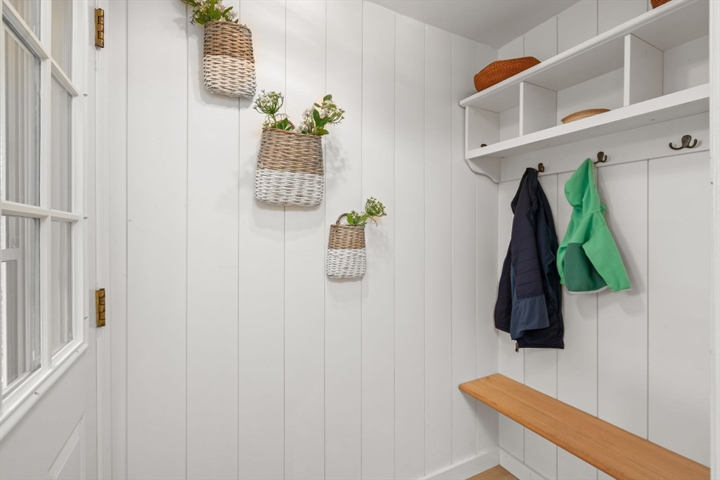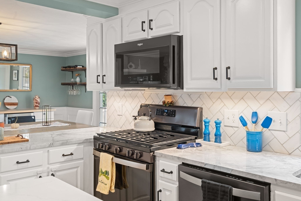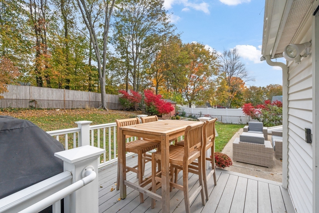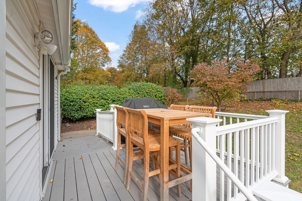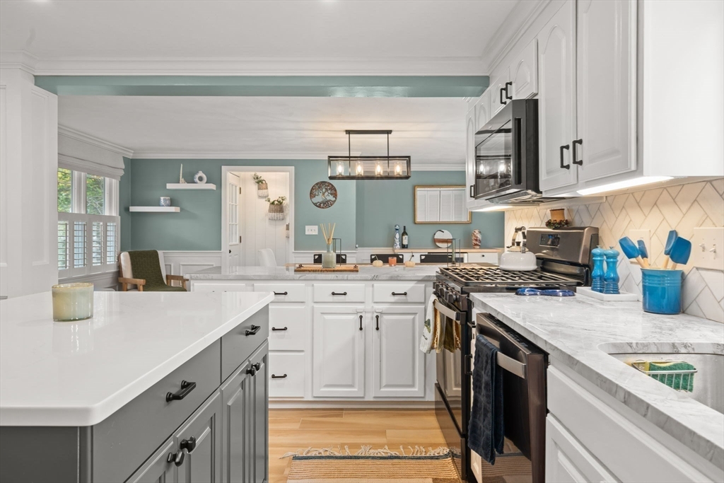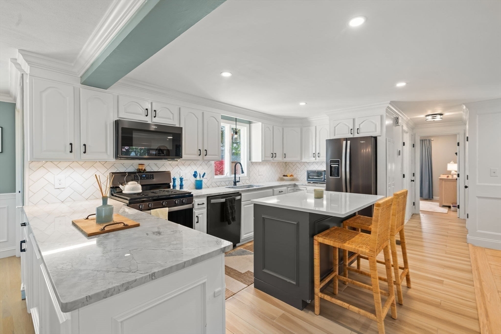 Welcome to 18 Laurel Road, a beautifully updated and meticulously maintained cape in a charming Norwood neighborhood, with convenient access to schools, parks, public transportation, and the vibrant town center. The entryway mudroom opens to a bright and open floor plan. The modern kitchen features updated cabinets and countertops, and island seating. It flows into a cozy living room with a fireplace and a spacious dining room with French doors opening onto a backyard deck. The main level also includes a bedroom, an office, and an updated full bath. Upstairs are two more bedrooms and a half bath. The unfinished basement offers potential for a playroom or exercise room, and the flat, fenced backyard provides a lovely outdoor retreat. Special features include hardwood floors throughout, elegant crown molding and wainscoting, central a/c, a 2023 water heater, and a 2022 HVAC. This gem of a home has seen many upgrades over the years, leaving you with nothing to do but move in and enjoy!