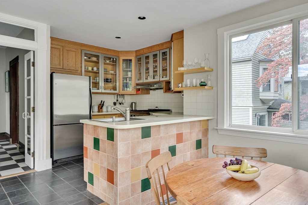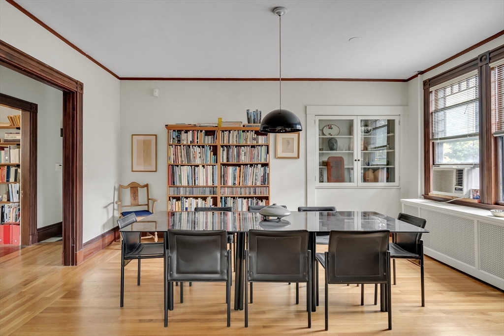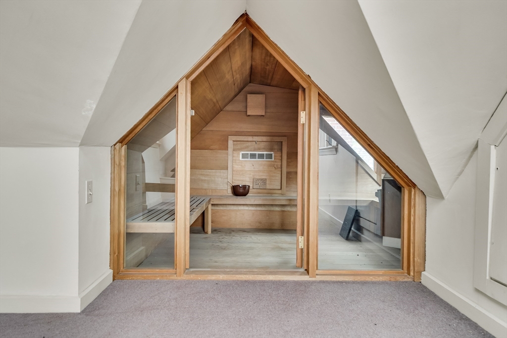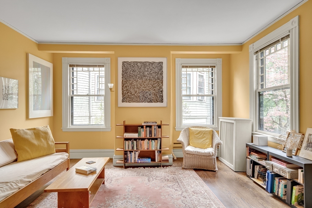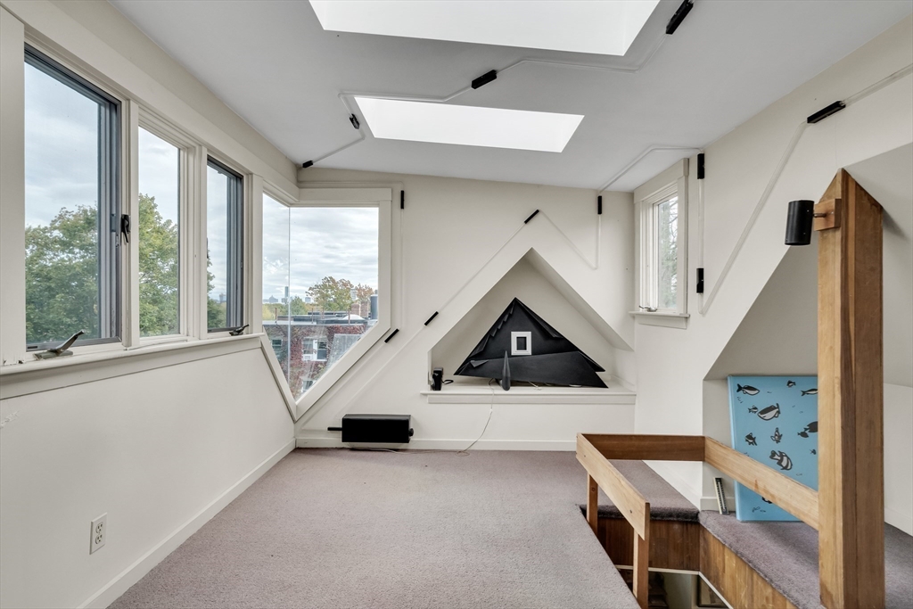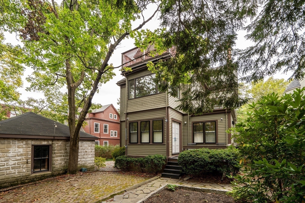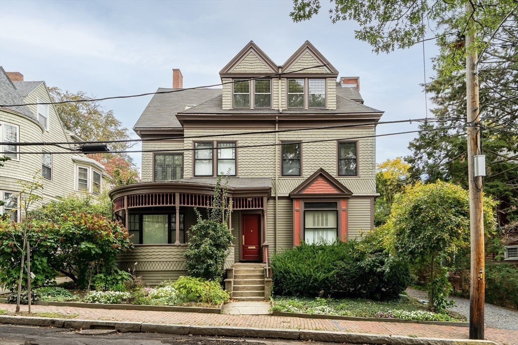 Rare opportunity. In an 1888 Queen Anne, this 3,010 sq. ft. condo retains its historic character while offering features for today’s living. The first level presents a delightful morning room, fire-placed living and dining rooms, a spacious study, a full bathroom, and a kitchen where the steel, glass, and wood of the cabinet design blend old and new elements, and expansive sliding windows overlook a serene view The upper level boasts four bedrooms, one with an en-suite full bath, and one with an en-suite half-bath, plus another full bath. An observatory holds a sauna and offers a unique space for spectacular views over the Boston skyline. Interiors are rich, with high ceilings, intricate woodwork, and an abundance of natural light. Nestled in the Avon Hill neighborhood, this home offers the perfect combination of urban convenience and historical attraction. A quintessential Cambridge treasure.