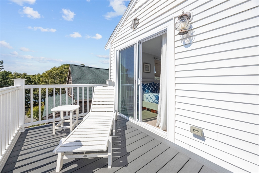 A delightful retreat - perfect for those craving a seaside lifestyle. This charming two-level home, fondly known as "The Mermaid's Cottage," offers a cozy & inviting atmosphere w/ views of Sunset Cove & beach access just across the street. Great short term summer vacation rental or summer home too. The first floor boasts a cozy, covered front porch, an eat-in kitchen w/ large windows facing the cove, as well as a roomy living room. A full bathroom completes this level. Make your way to the 2nd floor where you'll find four comfortable bedrooms, each designed to capture the essence of coastal living. Two of the bedrooms provide direct access to a sun-drenched deck, an ideal spot for enjoying morning coffee w/ a view. There's also a full bathroom on this floor. Enjoy the perks of a vibrant beach village featuring waterfront activities, beaches, concerts & festivals. Whether you're teeing off at the nearby golf course or docking at the marina, this place has it all.