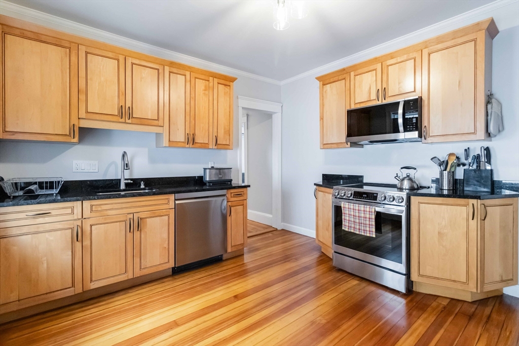 Welcome to 25 Oakland St, Unit 2 — where modern comfort meets timeless New England charm.This beautifully renovated 3-bedroom, 1-bath condo offers 1,170 sqft. of thoughtfully designed space, blending style, functionality, and a prime Watertown location. Sun-filled rooms with refinished hardwood floors, high ceilings, and updated fixtures create a warm, inviting atmosphere.Enjoy worry-free living with a brand-new roof and new high-efficiency heat pumps. The modern kitchen showcases sleek cabinetry and new stainless steel appliances, perfect for entertaining or everyday dining. Fully owned solar panels—soon operational—will power heat and electricity, offering INSTANT savings and sustainability. Two deeded tandem parking spaces provide convenience. Near Arsenal Yards, Watertown Square, and the Charles River Greenway, enjoy easy access to shops, restaurants, dog parks, and trails. With an 86 Walk Score, this home combines charm, efficiency, and commuter ease—a true Watertown gem!
