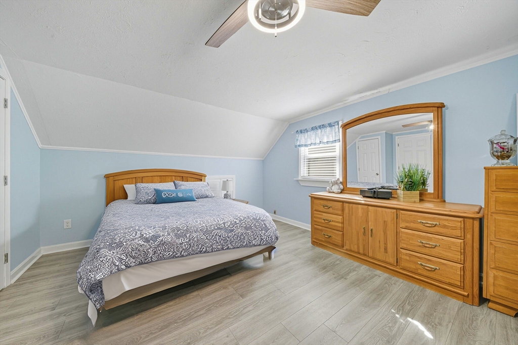 Welcome to 75 Barrow Street, a beautifully updated Cape in the heart of Norton. This charming 3-bedroom, 1.5-bath home blends classic character with modern updates throughout. The stunning kitchen features white upper cabinets, gray lowers, quartz countertops, Newer Bosch appliances, and a striking blue glass tile backsplash. The bright, open living area offers hardwood floors and plenty of natural light. Two spacious bedrooms are located on the second floor, with a first-floor bedroom ideal for guests or a home office. Enjoy a fenced-in backyard perfect for pets or play, and a large deck for outdoor entertaining. Additional highlights include a newer roof, updated systems, and a full basement with expansion potential. Conveniently located near schools, Wheaton College, and major routes, this move-in-ready home offers the perfect blend of comfort, style, and convenience. *Offers Due Tuesday 11/4 @ 12PM.