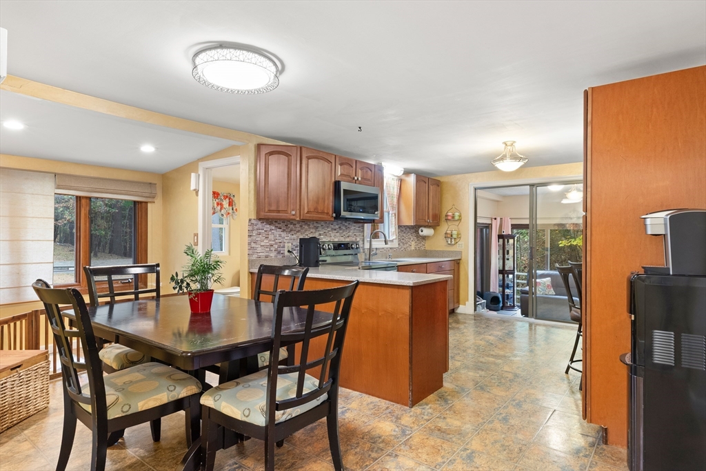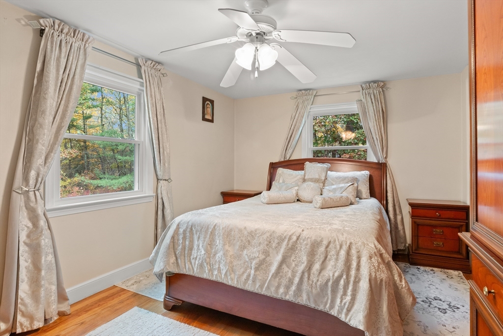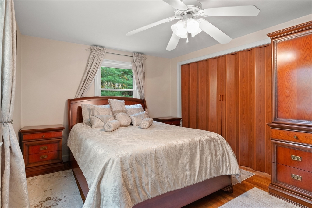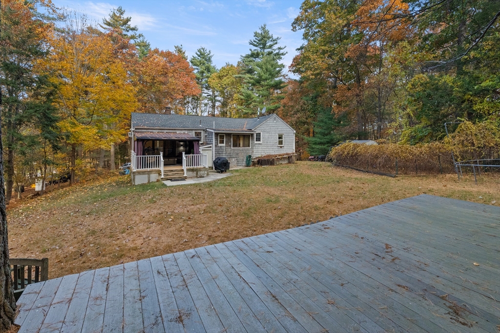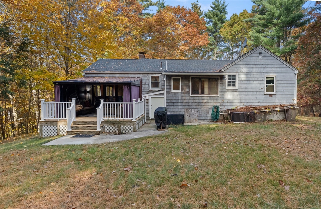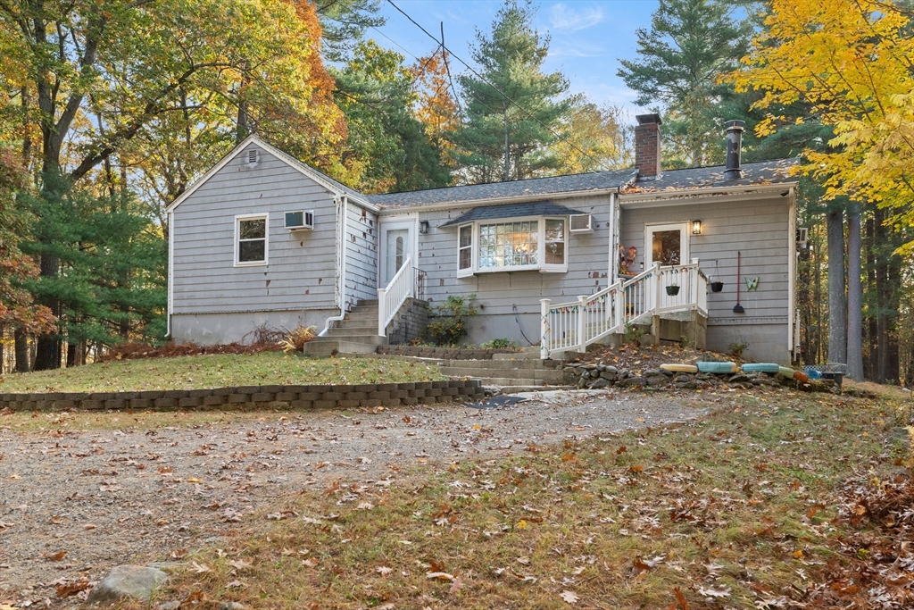 JUST LISTED!! LOCATION LOCATION! Enjoy one level living in one of Topsfield's most desirable neighborhoods! Surrounded by 2 lush acres, this sweet 3-bedroom, 1.5-bath Ranch with 1,200+ sf of living space is a rare find. A generous family room with a wall of windows and access to a delightful, covered porch providing a versatile indoor-outdoor space leading to a sprawling yard is one highlight on the main level. So is the roomy eat-in kitchen with ample counter space, breakfast bar, and dining area. A wood-burning fireplace adds charm to the living room with hardwood flooring. Three bedrooms, all with hardwood flooring, share a full updated bath. A large bonus room, large walk-in closet, and a flex room which would make a great office, guest room, even a home gym are on the finished lower level. Newer appliances, newer baths, 9-year-old heating system and privacy galore are just some of the hallmarks of this great family home.