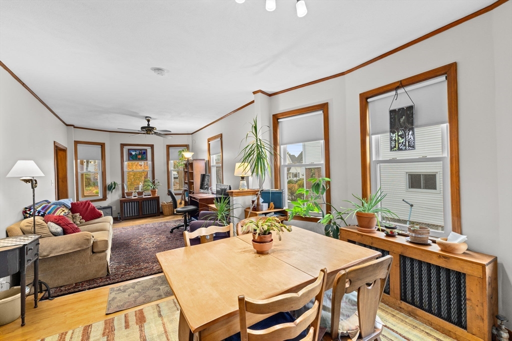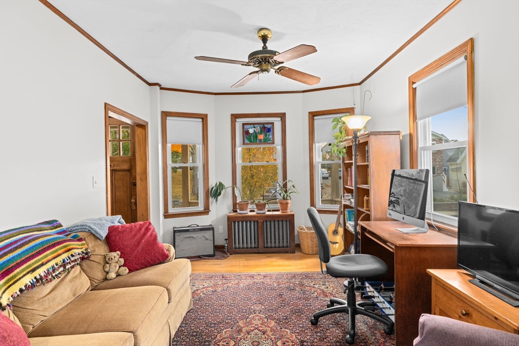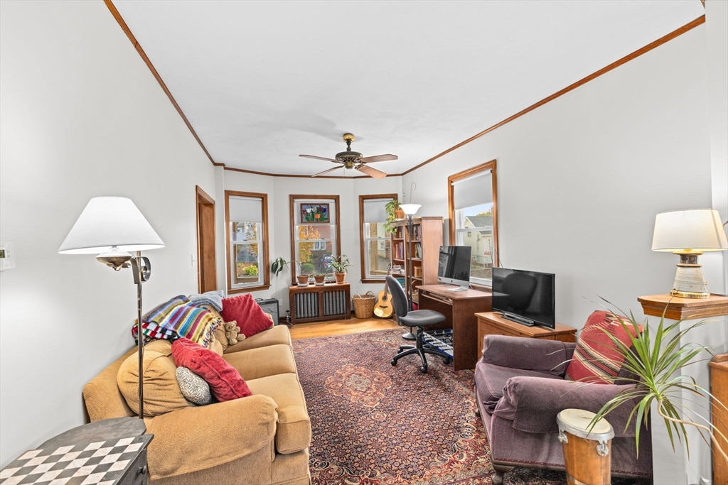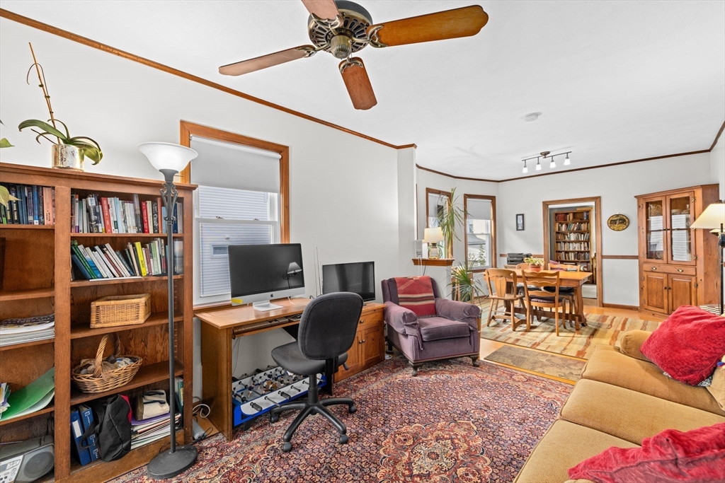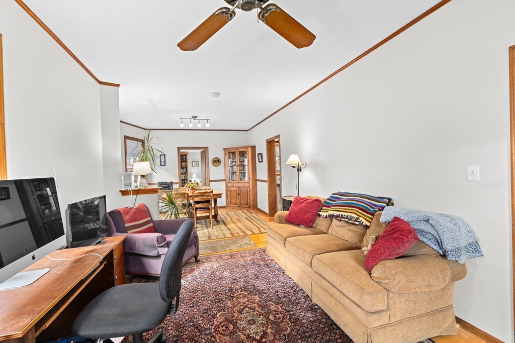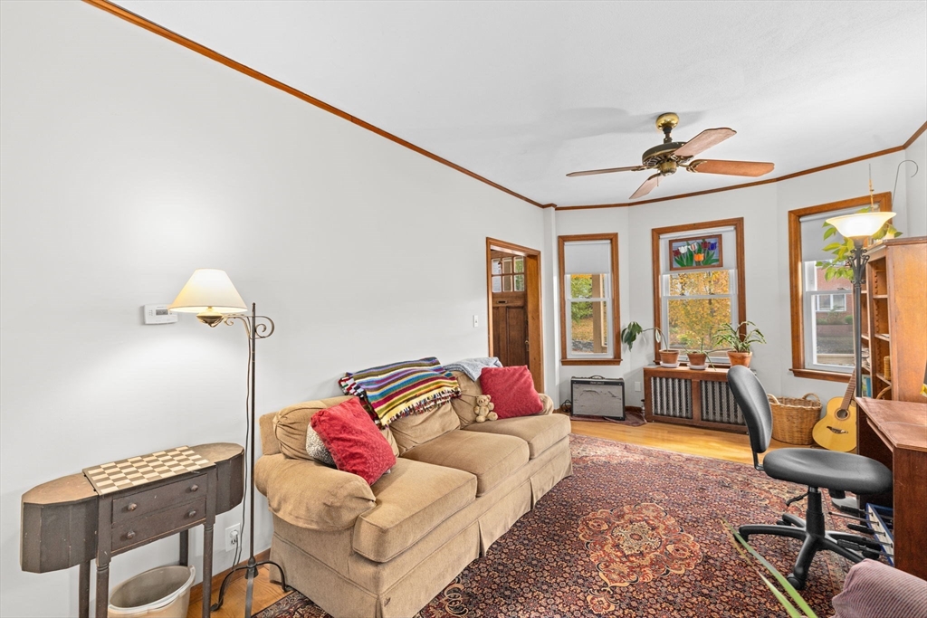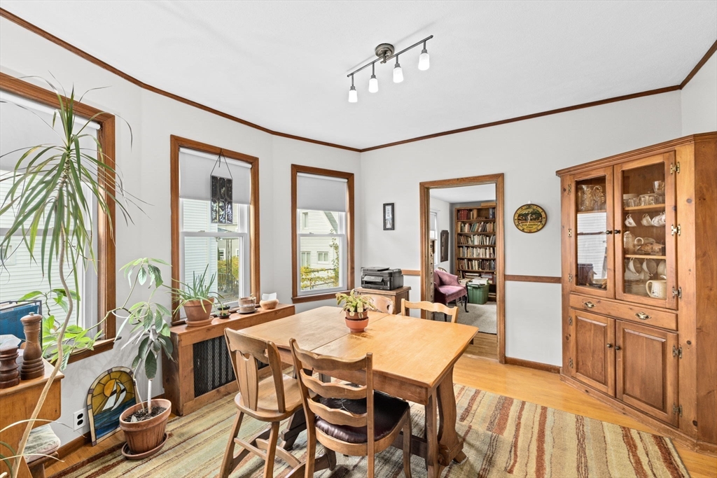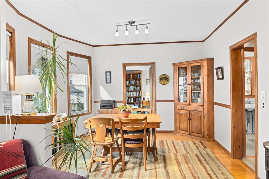 This lovingly maintained Colonial with a tasteful front porch offers 4 bedrooms, 2 full bathrooms, and 1422 sq ft of living space ready for you to move right in! Step inside and you’ll appreciate the easy flow of the first floor with a welcoming entry way leading you to a cozy living room, perfect for relaxing, and a bright and sunny dining room, ideal for entertaining. Hardwood floors throughout all living areas. Off the dining room is a nice kitchen space with a large pantry area. Depending on your needs, the first floor bedroom could also be used as a den, office, playroom, or exercise room. Additionally, there is a convenient full bathroom on the first floor. Upstairs, you will find 3 ample sized bedrooms, each with good closet space, and another full bathroom. Large cedar closet in basement. The fenced-in yard provides a nice outdoor space with lots of opportunities to further enhance it for gatherings with friends and family. The extra large driveway allows parking for 6 cars.