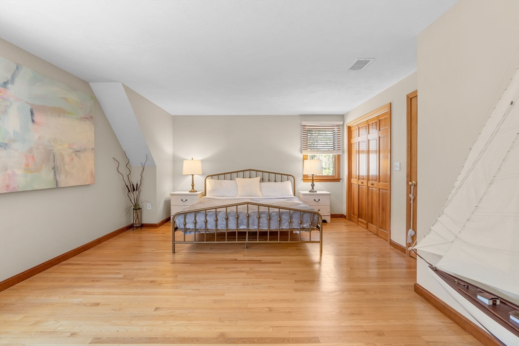 This warm and inviting home in the heart of the charming South Cape Beach Estates offers great opportunities as a summer escape or year round residence. Bright and attractive, this Cape provides an open floor plan with the living room, dining area, kitchen, breakfast bar and sitting room all connected with easy access to the lovely back yard and extended patio area. A den/study, bedroom and full bath complete the main level. Upstairs are 2 additional spacious bedrooms and a hall bath. Spend a quiet relaxing day at the private SCBA waterside picnic/playground area, perhaps kayaking or paddle boarding, and return home, rinse off in the outside shower and prepare for a lovely evening entertaining friends! Great rental option as well, please inquire regarding rental history. Come for a visit and stay for awhile!