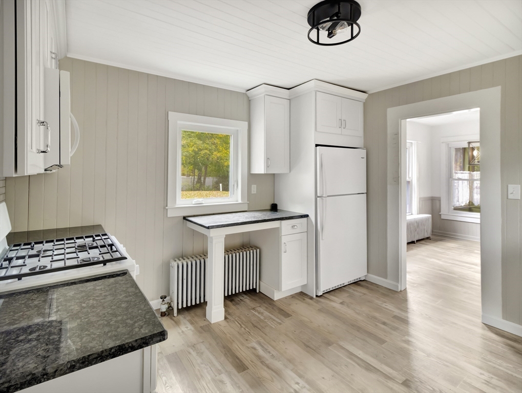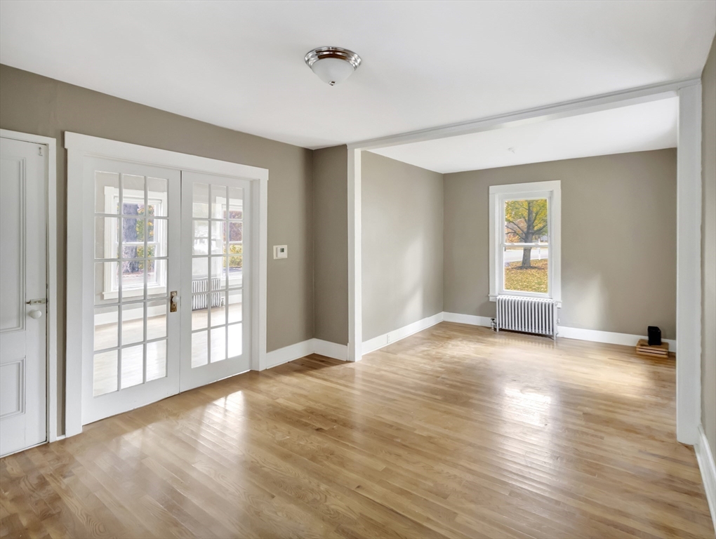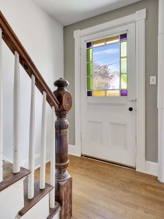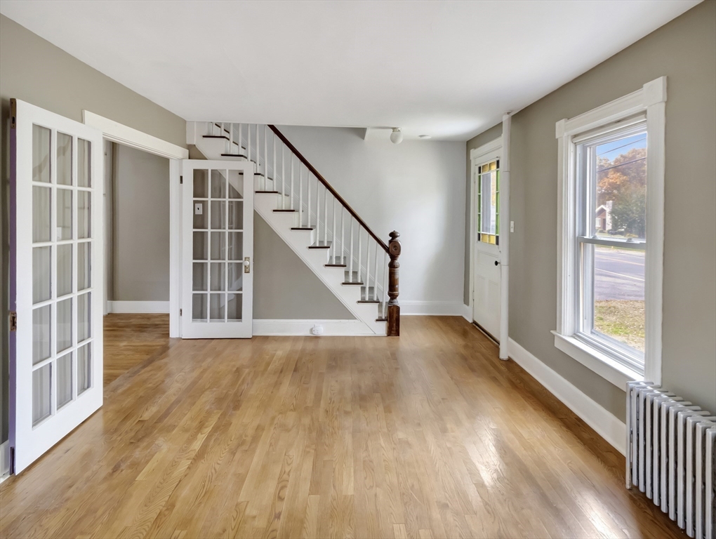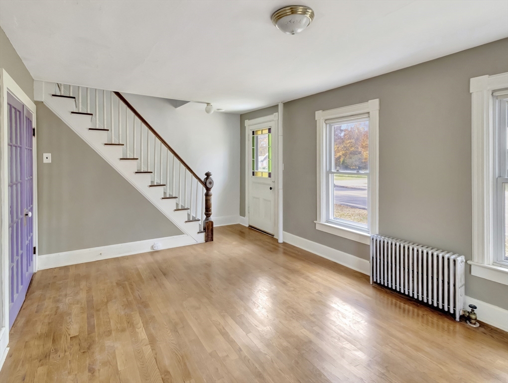 This inviting classic New England farmhouse offers a move-in ready opportunity to begin your next chapter. The well-designed kitchen is a welcoming space, featuring shaker cabinets paired with stone countertops, farmhouse sink, desirable gas cooking & a tiled backsplash providing both beauty & functionality for everyday living. Gleaming hardwood floors, French doors connecting the living and family room & stained-glass front door all add to the charm, and the layout gives lots of room to spread out. Upstairs there's fresh paint & carpet with 3 bedrooms & extra space that can be used for a playroom/sitting room. Spend peaceful afternoons in the screened sun porch, bathed in natural light overlooking the lovely well established flower gardens. Large yard offers plenty of space to relax, garden & entertain and has a shed for storage. Convenient to Route 24. Bonus 1 year home warranty provided by the seller.
