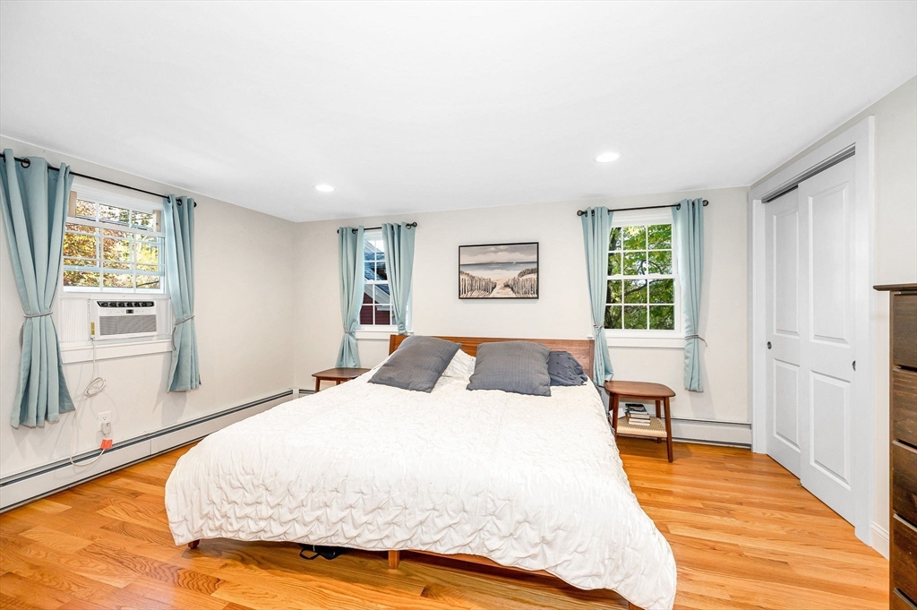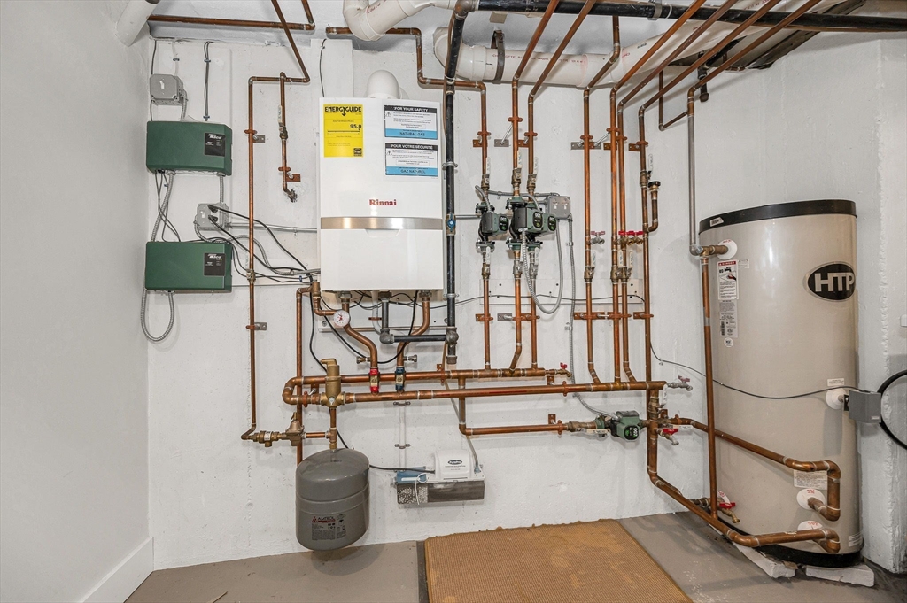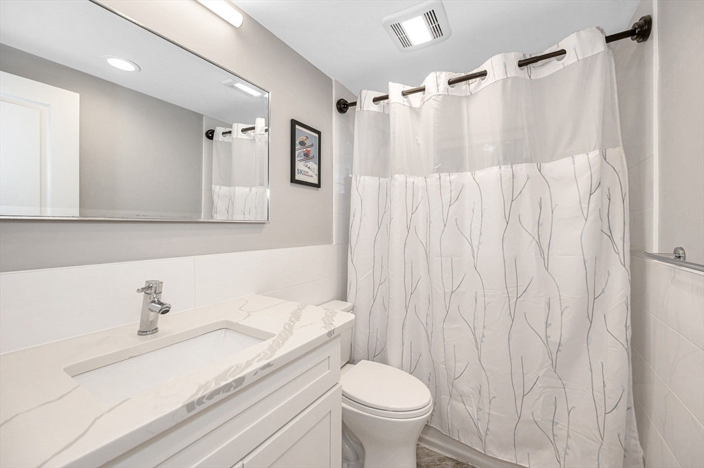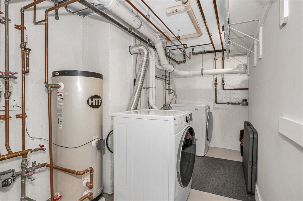 Fully renovated, move-in ready Townhouse in the heart of Arlington, just a stone's throw from Mass Ave, Rte. 2A and Minuteman Bike Path. The open concept main level features kitchen with granite countertops, center island, custom cabinets, stainless steel appliances, recessed lighting and subway tile backsplash, opening to the living room. Half bath on main level. Upstairs is a large Primary bedroom, second bedroom and a renovated bath with quartz countertops, tiled floors and tiled tub/shower. Updated systems include a high-efficiency Combination gas boiler and water heater, updated electrical and thermal windows. A finished walkout basement offers bonus space which could be used as an office and/or recreation room.