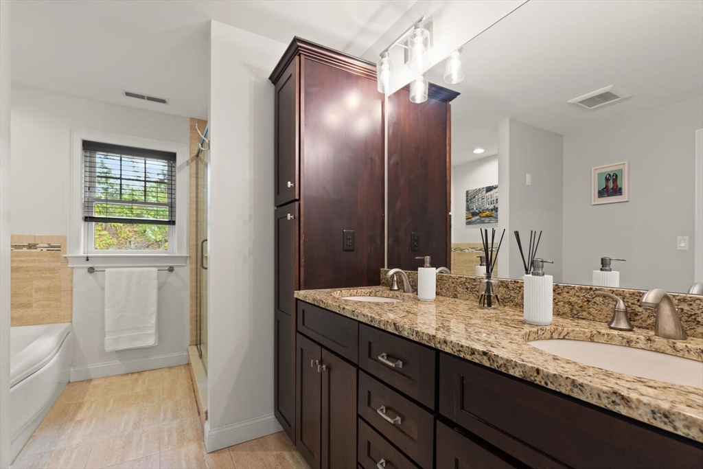 Gorgeous condo for rent! Welcome to 10 Murray Ave, unit 15 - a sophisticated townhouse offering four levels of beautifully designed living space in the heart of Burlington. Built in 2013, this home combines modern style with everyday comfort, all the minutes from shopping, dining, and public transportation.The main level features an open layout with 9-foot ceilings, hardwood floors, and a seamless flow from the living room with gas fireplace to the dining area and modern kitchen. The kitchen is equipped with quality finishes, abundant cabinetry, a space for casual dining, while the private deck offers the perfect spot to relax or entertain.Upstairs, the primary suite is a true retreat, complete with an oversized walk-in closet and a spa-like bath boasting a jacuzzi tub, tiled shower, and double vanity. The top floor offers a bright a versatile space with vaulted ceilings, a large window seat, full bath and another walk-in closet - ideal for guest suite, home office or family room
