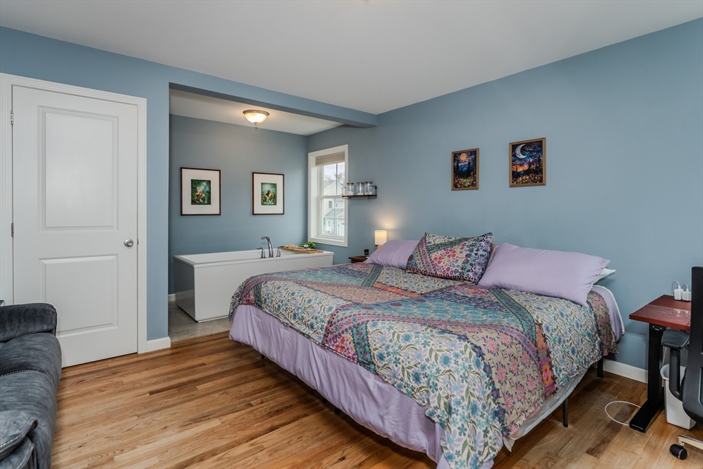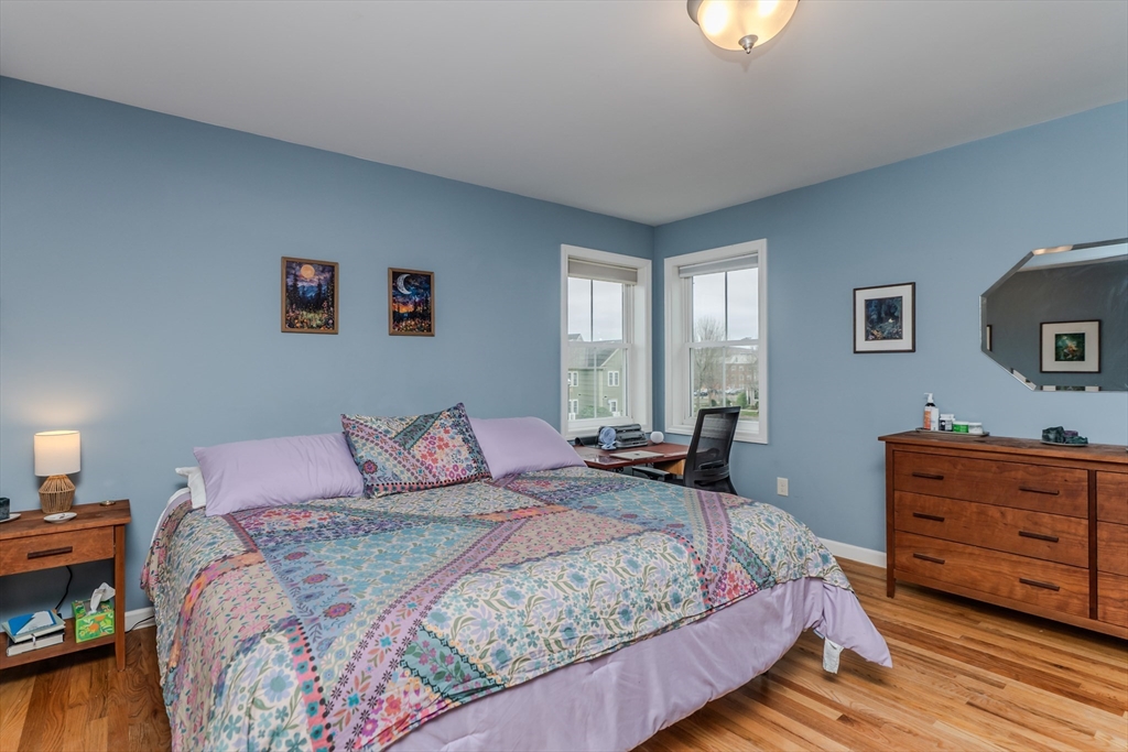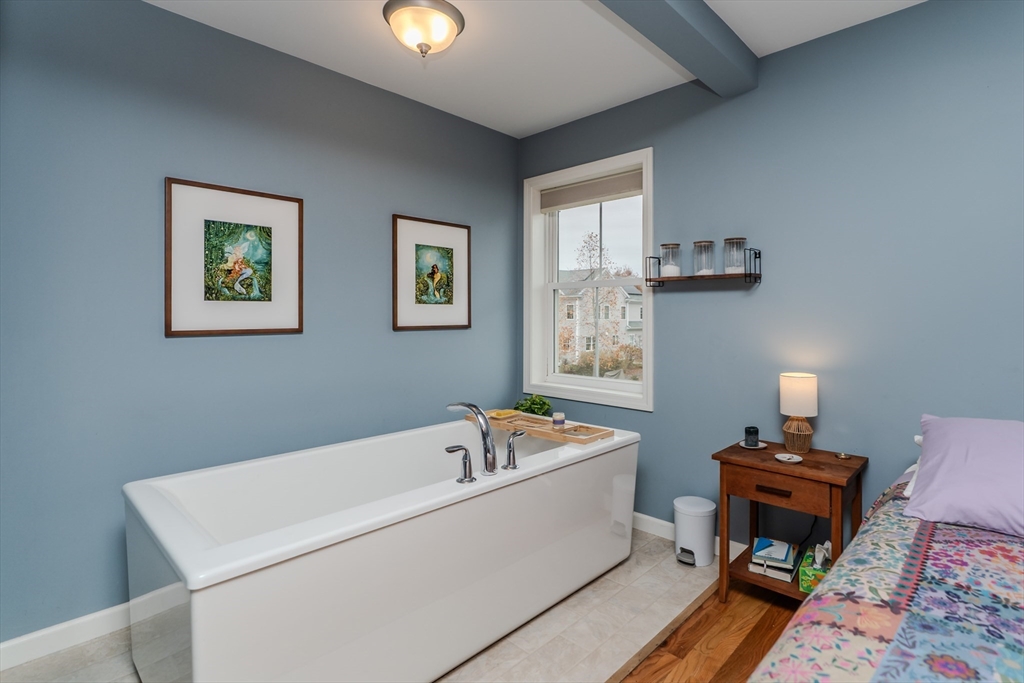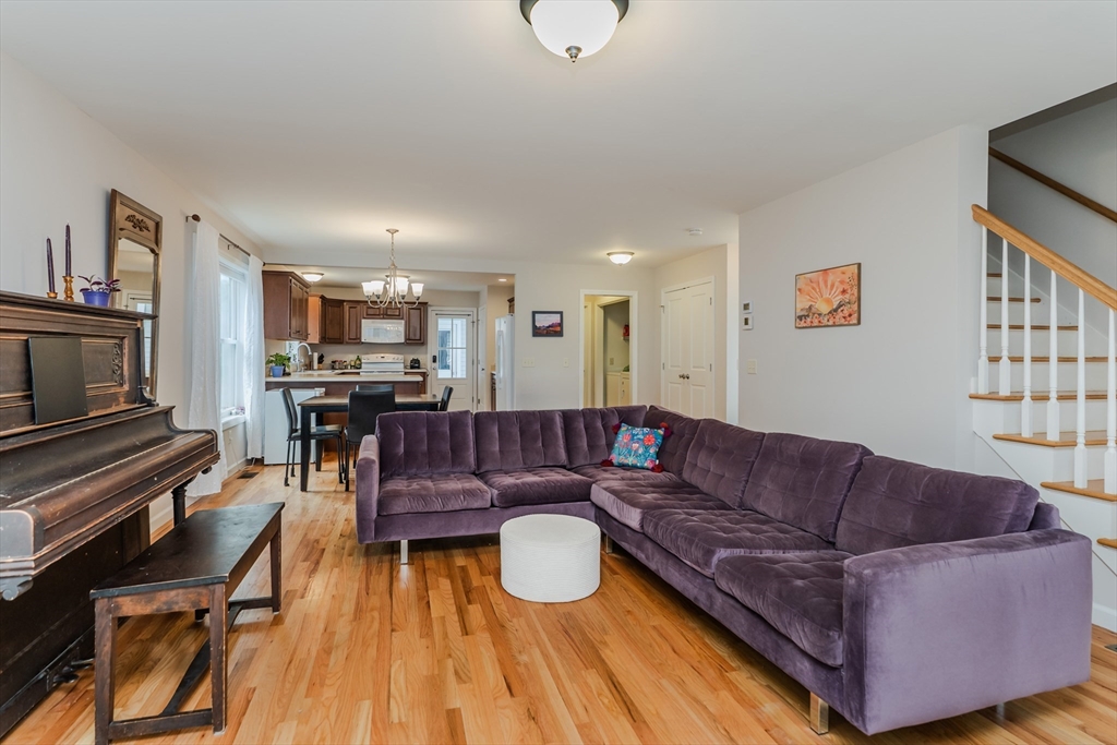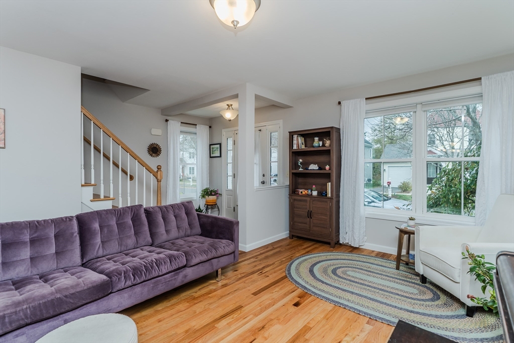 This newer construction, energy efficient home combines modern comfort with timeless style. Featuring an open, sun filled floor plan and beautiful HW floors throughout, this home welcomes you from the moment you arrive. Step in from the covered front porch into a bright, inviting foyer that opens to a cozy living room, spacious dining room & kitchen with a peninsula, perfect for entertaining. A dedicated 1st floor laundry room & 1/2 bath add everyday convenience. Upstairs, the spacious primary suite offers a walk-in closet & a luxurious soaking tub, your private retreat at the end of the day. 2 additional bedrooms & a full bath complete the 2nd floor. The basement offers great potential for finishing & is home to the high-efficiency natural gas Trane HVAC w/ central air & fresh-air exchange system. One car garage is easily accessed via a covered breezeway. Enjoy this vibrant neighborhood near the community gardens, new pickleball courts, scenic trails along the Mill River, & downtown!