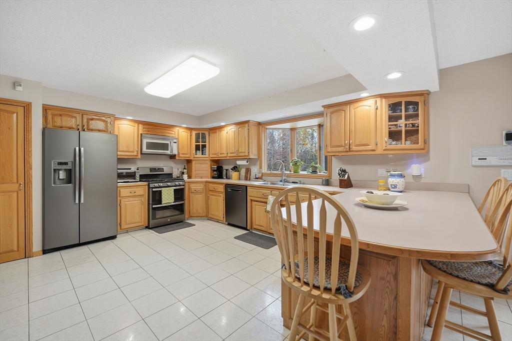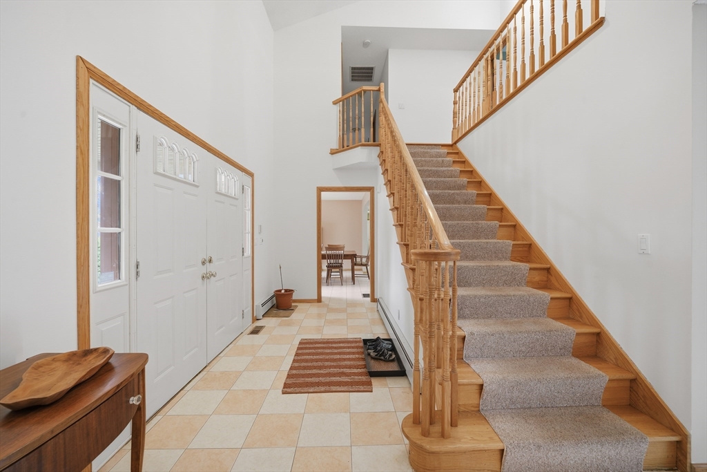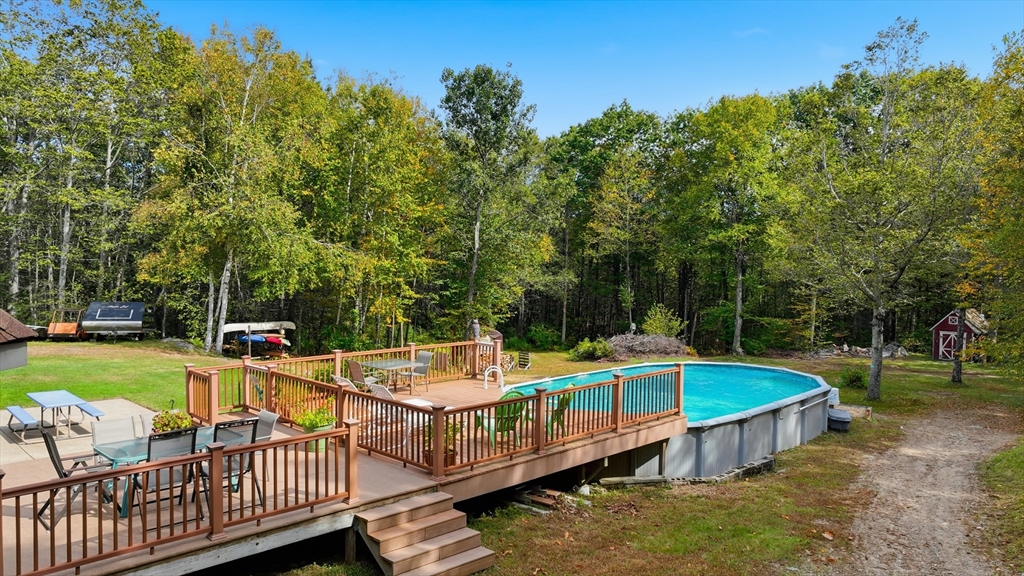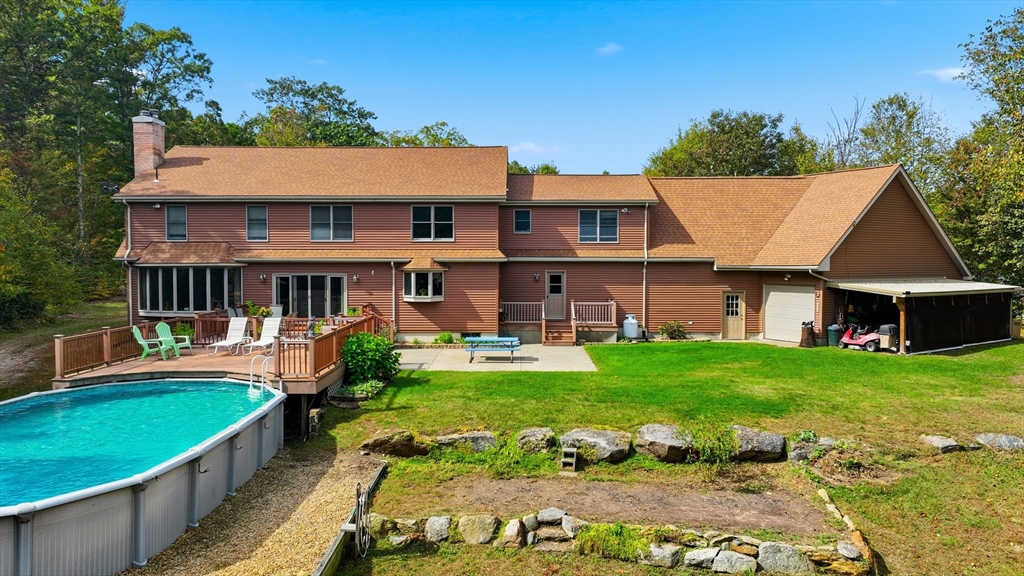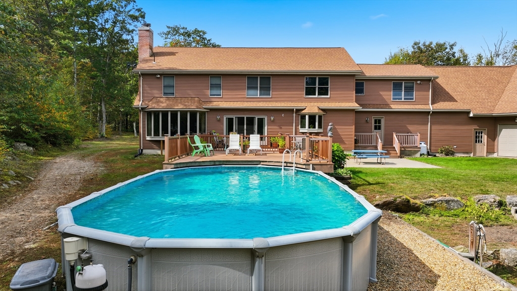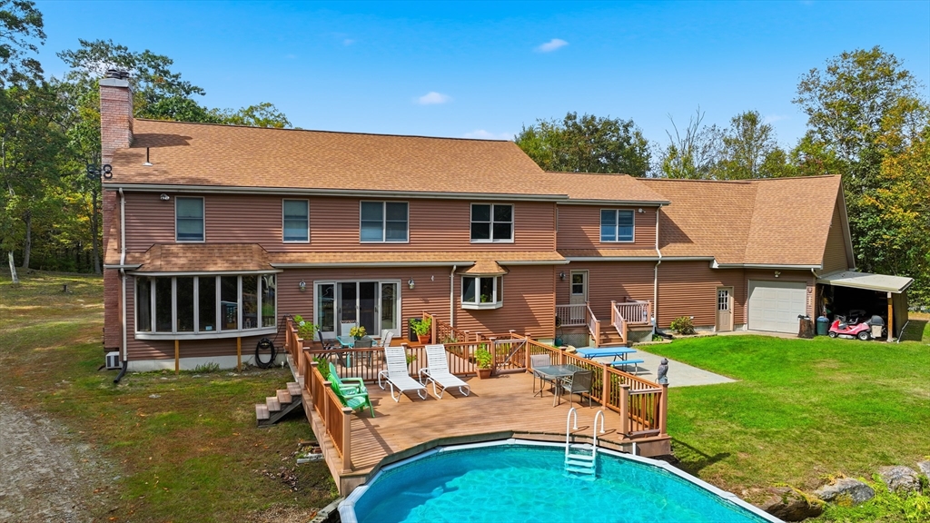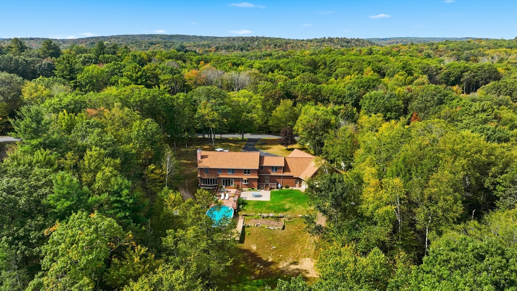 Lovingly maintained by the same family since being built in 1994, this stately brick home sits on a serene 2.55-acre wooded lot in a premier neighborhood. Set well back from the road with 200 ft of frontage, it offers exceptional privacy and curb appeal. Step inside to a grand foyer with soaring ceilings and an inviting open layout. The living room features a cozy wood-burning stove, and the kitchen offers stainless steel appliances, abundant cabinetry, and sliding doors to a deck overlooking the pool and picturesque backyard. The oversized garage with 12-ft ceilings is perfect for hobbyists or car enthusiasts. A full bath, laundry, and bedroom complete the first floor. Upstairs includes three spacious bedrooms, a full bath, and ample storage. The luxurious primary suite features a walk-in closet, jacuzzi tub, and separate shower. With 3,422 sq ft of living space, this elegant home blends sophistication, comfort, and privacy in a truly exceptional setting.