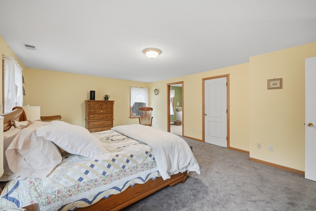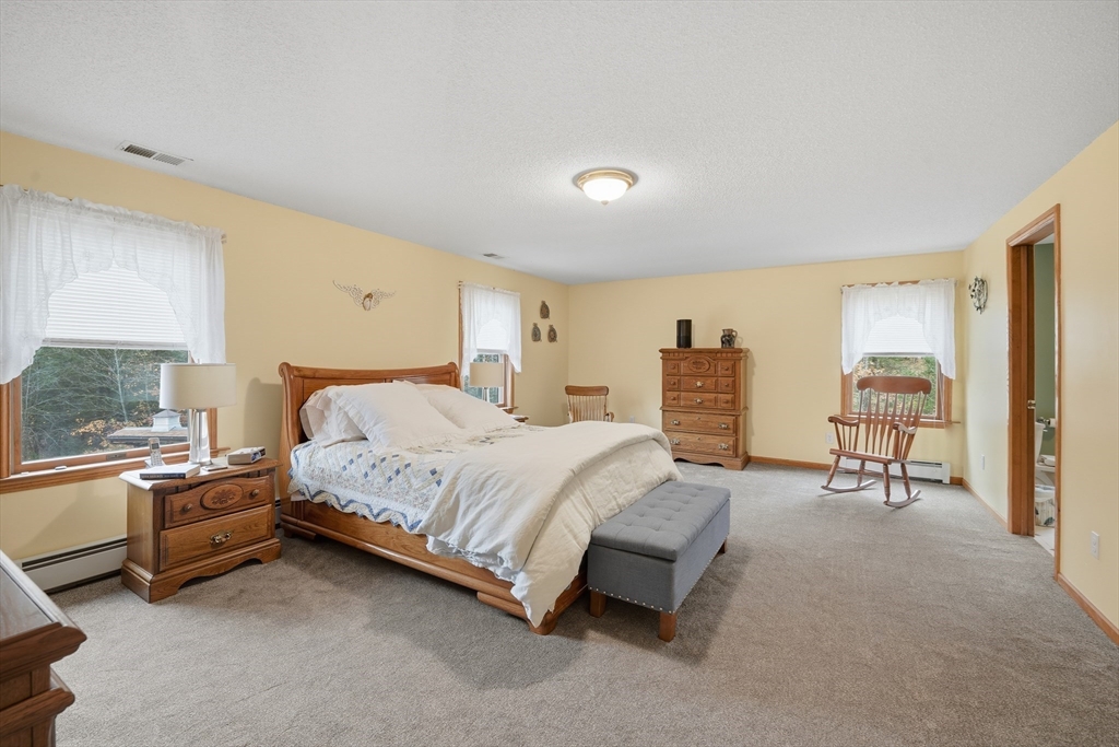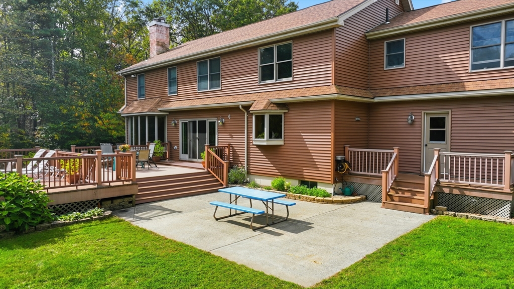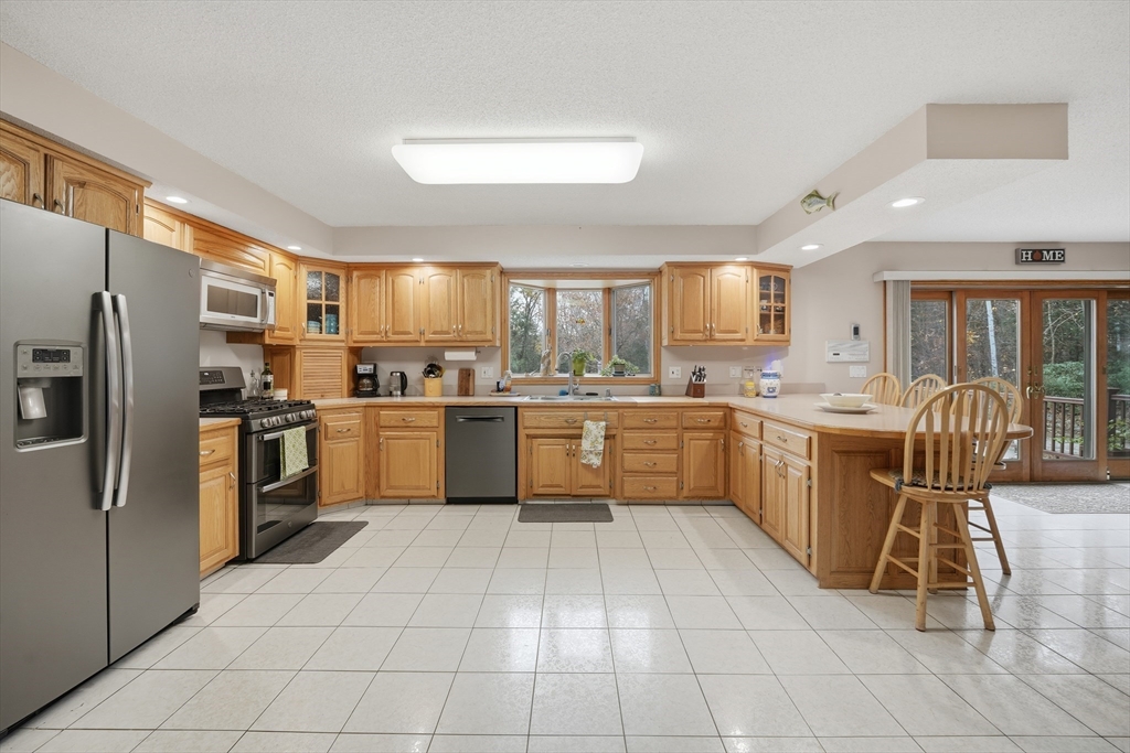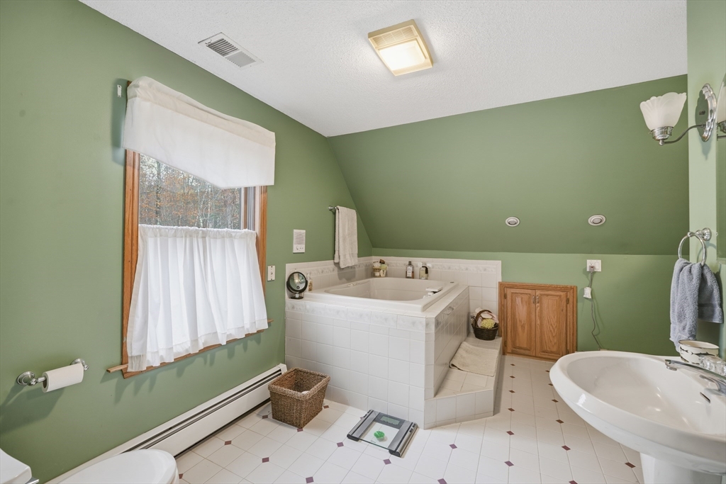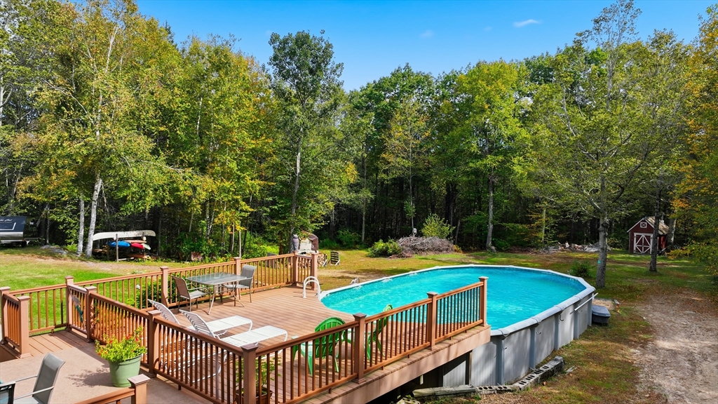 Lovingly maintained by the same family since being built in 1994, this stately brick home sits on a serene 2.55-acre wooded lot in a premier neighborhood. Set well back from the road with 200 ft of frontage, it offers exceptional privacy and curb appeal. Step inside to a grand foyer with soaring ceilings and an inviting open layout. The living room features a cozy wood-burning stove, and the kitchen offers stainless steel appliances, abundant cabinetry, and sliding doors to a deck overlooking the pool and picturesque backyard. The oversized garage with 12-ft ceilings is perfect for hobbyists or car enthusiasts. A full bath, laundry, and bedroom complete the first floor. Upstairs includes three spacious bedrooms, a full bath, and ample storage. The luxurious primary suite features a walk-in closet, jacuzzi tub, and separate shower. With 3,422 sq ft of living space, this elegant home blends sophistication, comfort, and privacy in a truly exceptional setting.