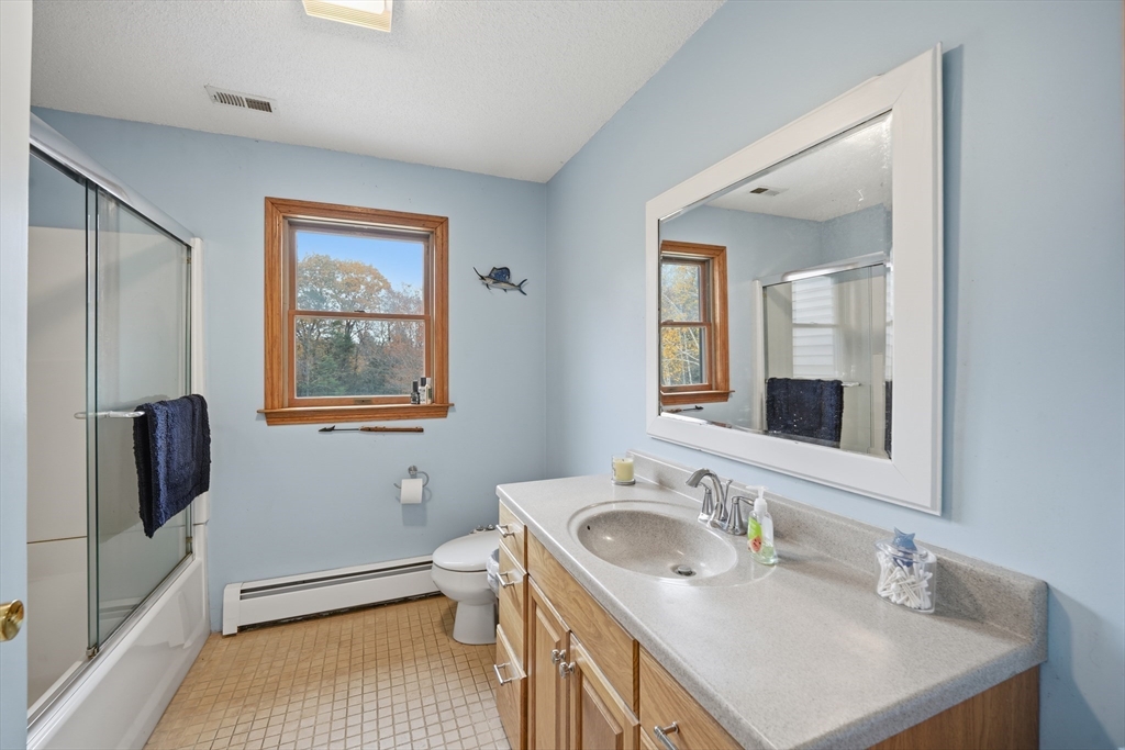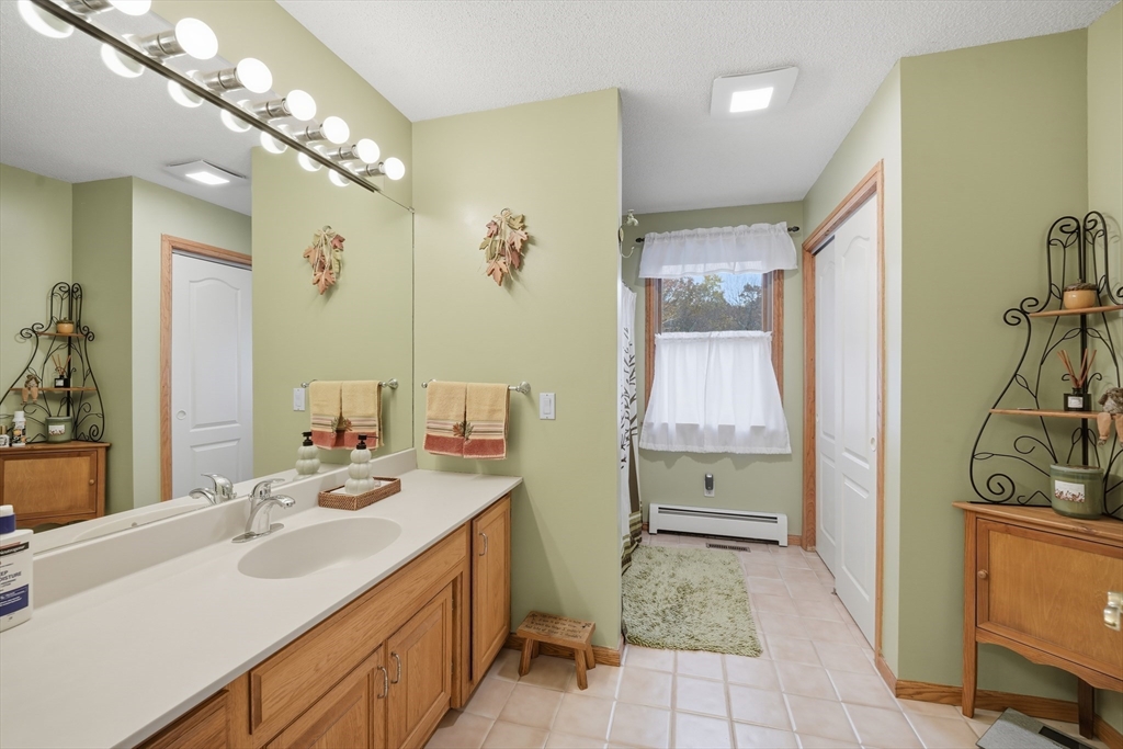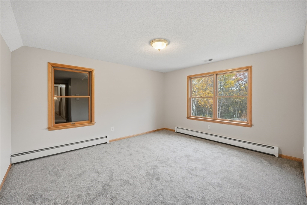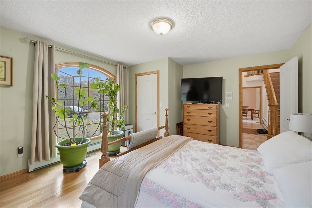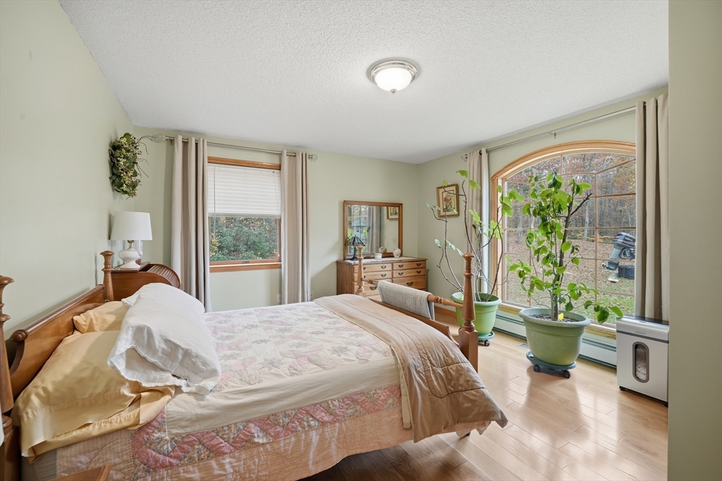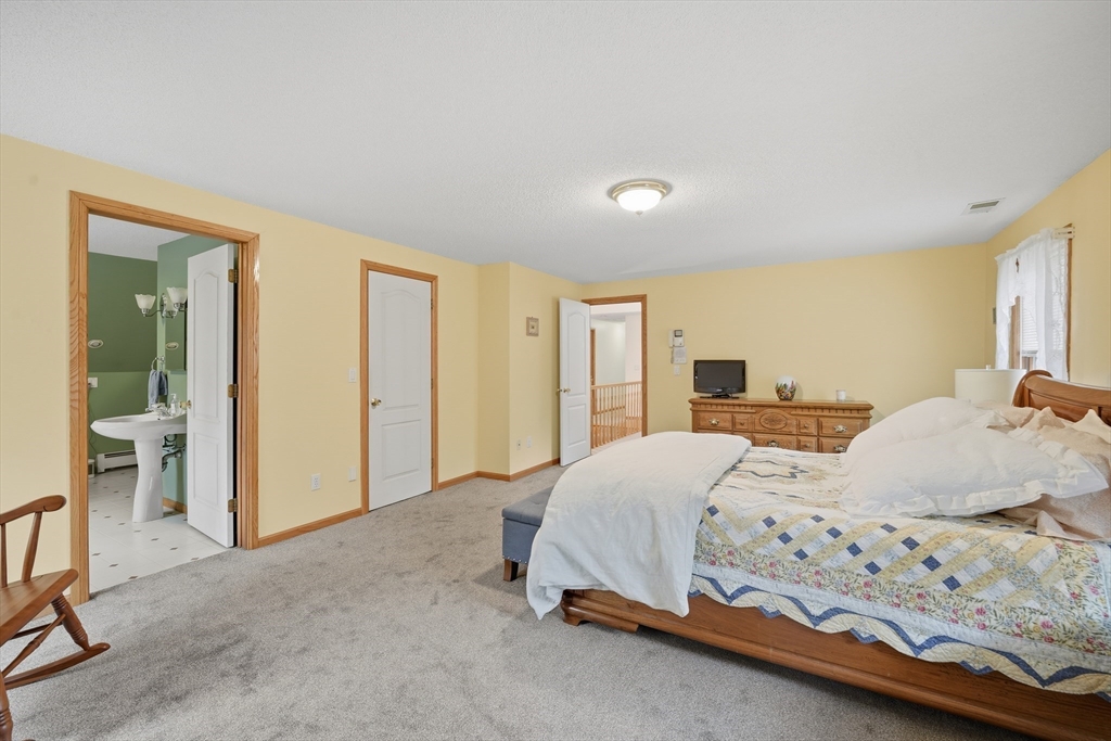 Lovingly maintained by the same family since being built in 1994, this stately brick home sits on a serene 2.55-acre wooded lot in a premier neighborhood. Set well back from the road with 200 ft of frontage, it offers exceptional privacy and curb appeal. Step inside to a grand foyer with soaring ceilings and an inviting open layout. The living room features a cozy wood-burning stove, and the kitchen offers stainless steel appliances, abundant cabinetry, and sliding doors to a deck overlooking the pool and picturesque backyard. The oversized garage with 12-ft ceilings is perfect for hobbyists or car enthusiasts. A full bath, laundry, and bedroom complete the first floor. Upstairs includes three spacious bedrooms, a full bath, and ample storage. The luxurious primary suite features a walk-in closet, jacuzzi tub, and separate shower. With 3,422 sq ft of living space, this elegant home blends sophistication, comfort, and privacy in a truly exceptional setting.
