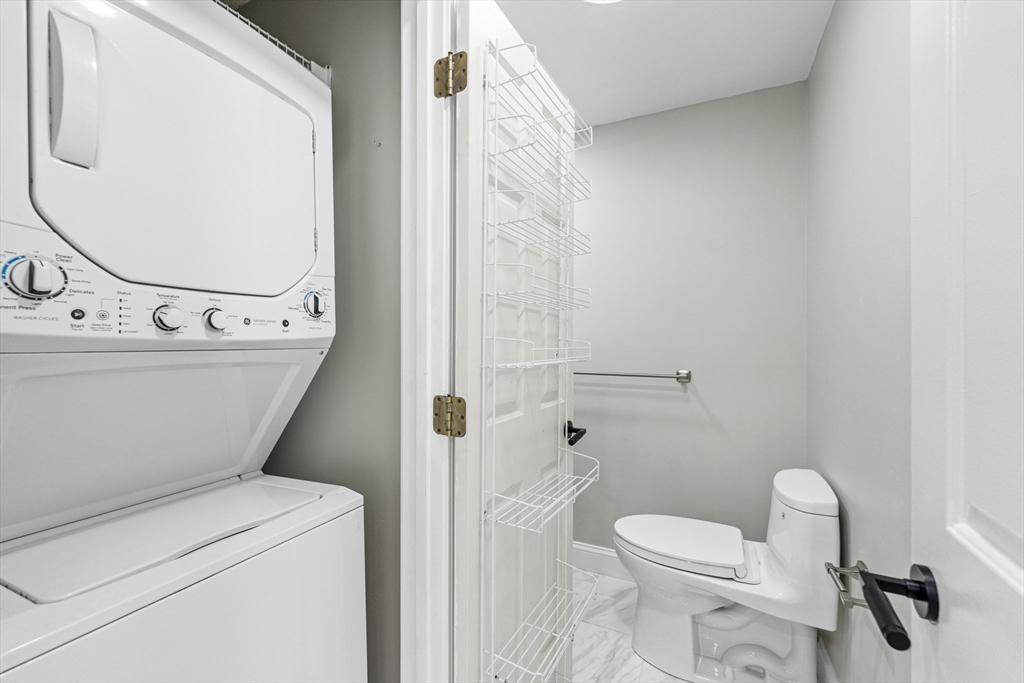 Step into this beautiful garden-style condo in the heart of historic Newburyport. This condominium features a designer kitchen with stone countertops, a glass front Sub-Zero fridge and freezer, a Wolf glass-top induction cooktop, a Wolf convection oven, and a sleek backsplash that unites modern elegance with everyday function. The living room is defined by its soaring high ceiling that creates an open and airy atmosphere, perfect for relaxation or entertaining. The bedroom offers a private retreat with an ensuite bathroom, featuring a walk-in shower that adds a touch of spa-like luxury to your daily routine. Unit comes with an exclusive underground parking space and a separate storage area. Enjoy the beautiful sights surrounding the home, including Newburyport's seaport, with easy access to downtown and public transportation, which makes commuting a breeze. Turn this home into a luxurious escape, or into your new hosting spot before a night on the town; the opportunities are endless!