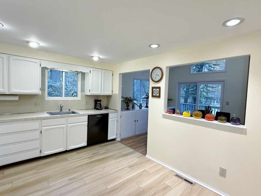 Welcome to this inviting & over-sized Split-Entry Style Home, located on a country road, & ready for its next chapter. The Living Rm is beautifully complemented by a flr to ceiling brick FP promising cozy evenings, & serves as a dramatic focal point; featuring beautiful hardwood flrs, recessed lighting, & a vaulted ceiling that amplifies the sense of space. The Kitchen offers a delightful space to create culinary masterpieces, showcasing shaker style cabinets & a beautiful Pergo flr that enhances the room's aesthetic. The Dining Rm w/built-ins provide plenty of storage & serving space for entertaining & family gatherings. Three good-sized Bedrms & Full Bath complete the Main Flr.. The finished walk-out LL provides a flex-space for many uses. The 2.2 acre lot provides ample space to enjoy the outdoors. Enjoy the wrap around deck for relaxing, dining or enjoying the beautiful sunsets. This well cared for property is waiting to welcome you. Nothing to do but move-in, unpack & enjoy!