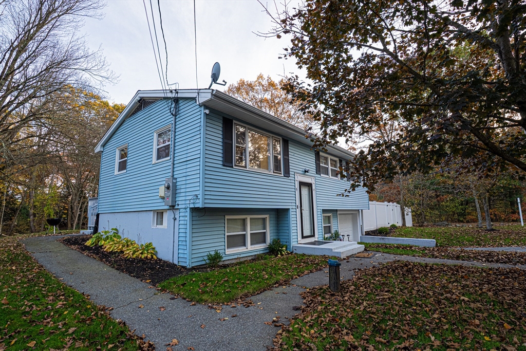 Welcome to this beautifully updated raised ranch in desirable East Dracut! Move-in ready and full of recent updates. The main level offers a bright living room, eat-in kitchen, 2 bedrooms, and a full bath. The lower level includes a cozy family room, 3rd bedroom, half bath with laundry hookups, and one-car garage.Enjoy summer fun from the oversized deck overlooking the above-ground pool — fully operational and perfect for entertaining. Recent 2023 updates include a new furnace, hot water tank, central air, modern kitchen with stainless steel appliances, updated electrical and plumbing, and a smart thermostat. The interior has been freshly painted and new hardwood floors were added on the main level and new vinyl flooring downstairs. new fencing for added privacy. Fresh landscaping that enhances the spacious backyard.2 driveways for up to 4 cars, conveniently close to routes 93 and 495.Make this home yours.