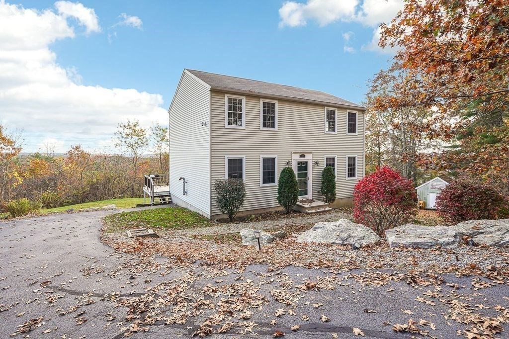 Welcome to this Colonial Home, a blend of Modern Elegance & Custom Design Located near Outskirts of Town in a Rural Neighborhood. Open Concept Living space Ideal for Entertaining. Hardwood Flooring throughout the Main Level. Updated Eat-in Kitchen features Stainless Steel Appliances, Granite Countertops, a Spacious Island, Custom Built Wall of Storage w/ access to a Deck overlooking the Wooded Backyard and Spectacular Views! First Floor Laundry Rm is shared with a Half Bath. Upstairs find 3 good sized Bedrooms. The Primary Bedrm Suite hosts 3 closets, one being a Large Walk-in Closet. Recently Updated adjacent Tiled Double Vanity Full Bath includes a Walk in Shower with another Large Walk in Closet. New Carpet recently Installed. Unfinished Lower Level offers a Ton of Space that can be finished. The current owners used a few areas as a Family Room and a Home Gym/Office. Built in Storage will stay. Wood Pellet Stove is not currently hooked up. Close to Rt 84/CT and Rt. 90/MA Pike.