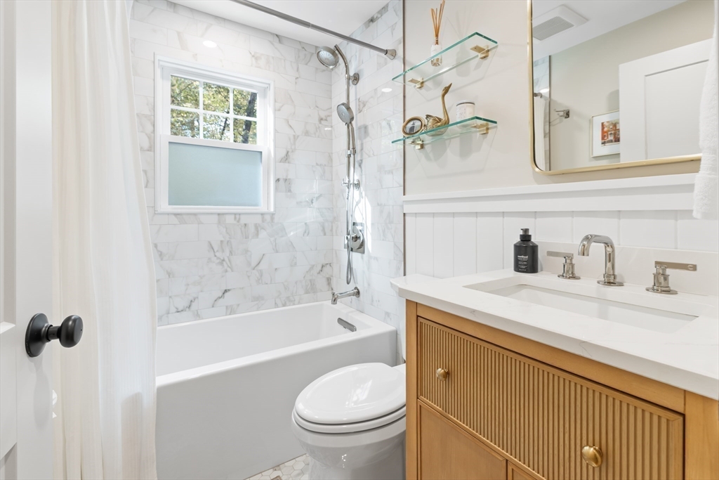 JUST LISTED! Be home for the holidays in this charming and thoughtfully updated 3 bedrm / 2 full bath Colonial in a fantastic Sherborn location! The first floor offers an open floorplan w/fireplace living rm w/custom built-ins, beautifully updated kitchen w/custom cabinets incl professional gourmet gas stove & SS appliances, an eat-in dining area w/access to an oversized deck for entertaining, built-in mudroom area, spacious first floor bedroom (currently used as guest room & office) and stunning newly renovated full bath w/radiant floors (2024). The second floor features 2 generous bedrms & another attractive full bath. Brand new roof (2025), remodeled basement (2023), 4 bedroom septic offering future expansion. Unique 2 level lot w/fenced in vegetable garden and mature plantings. Close to Pine Hill Elementary, Farm Pond, Sherborn Center and very convenient to Wellesley, Natick & Dover and the commuter rail. Enjoy top rated schools and all the outdoor recreation! A must see!