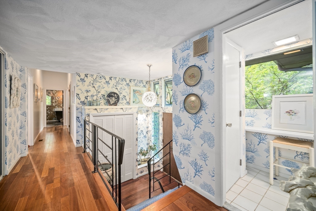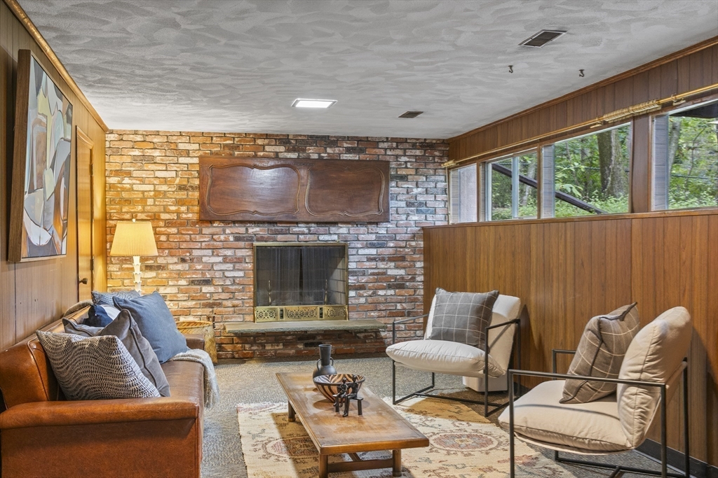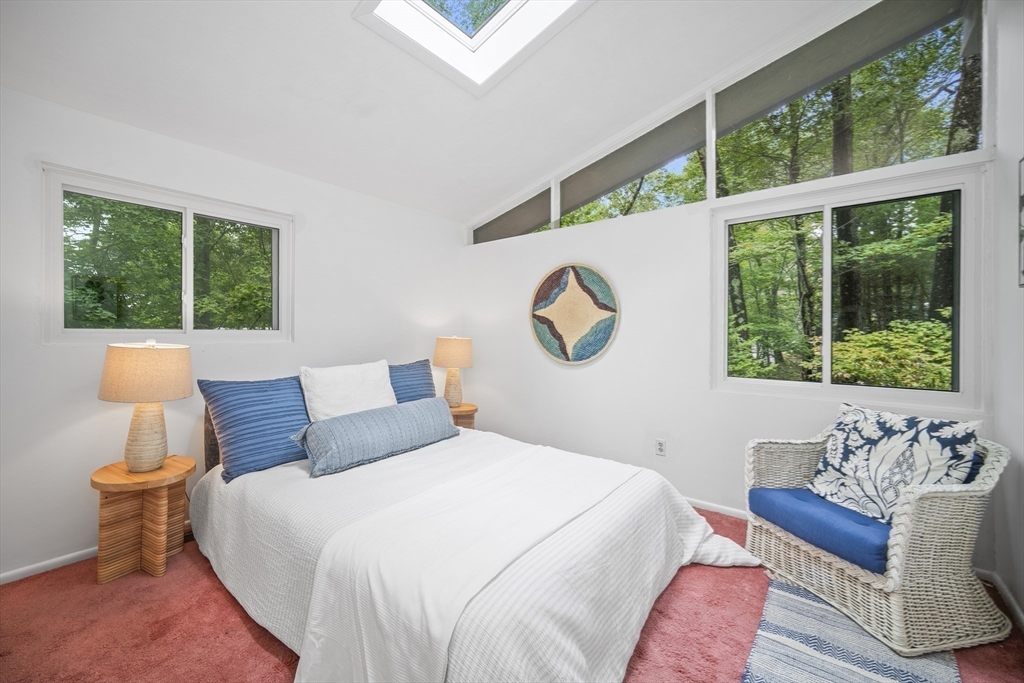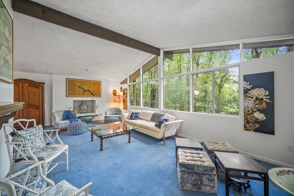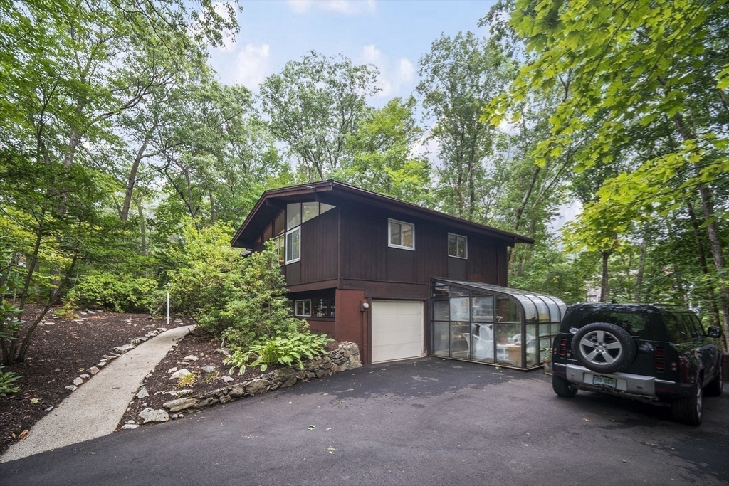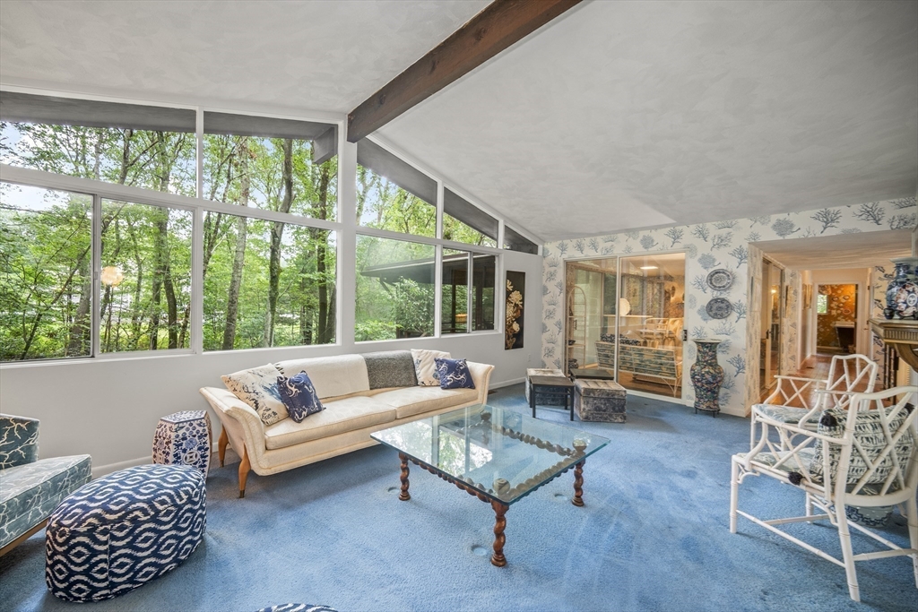 Looking for a home in beautiful South Natick, on the Dover line? Look no further. When ordinary cookie cutter homes just won't fill the bill, come see this unique & sun-filled contemporary with 10 rooms, 4 bedrooms & 2.5 baths on a level 40,000 SF lot with privacy! With inspirational walls of windows letting the outside in, soaring ceilings, skylites & an open & flexible floor plan, this home offers functionality for today's busy lifestyles. Beautiful solid wood kitchen cabinetry, a green-house window in the inviting dining room is great for growning herbs all year long & a fplc living rm is the ideal space to relax & unwind at days end. The 23x12 family rm offers a fireplace & ample space for a pool table, hobbies or a place to watch the Patriots! Owner's investments include a 2024 Water heater, NEW ROOF in 2022 & a completely NEW DRIVEWAY in 2021. 2022 Gutter guards. This home offers two heating systems & central air conditioning. A FABULOUS & spacious screened in porch.