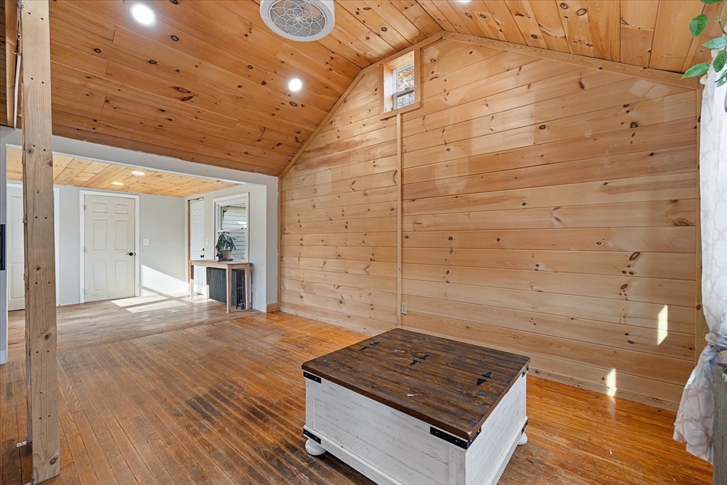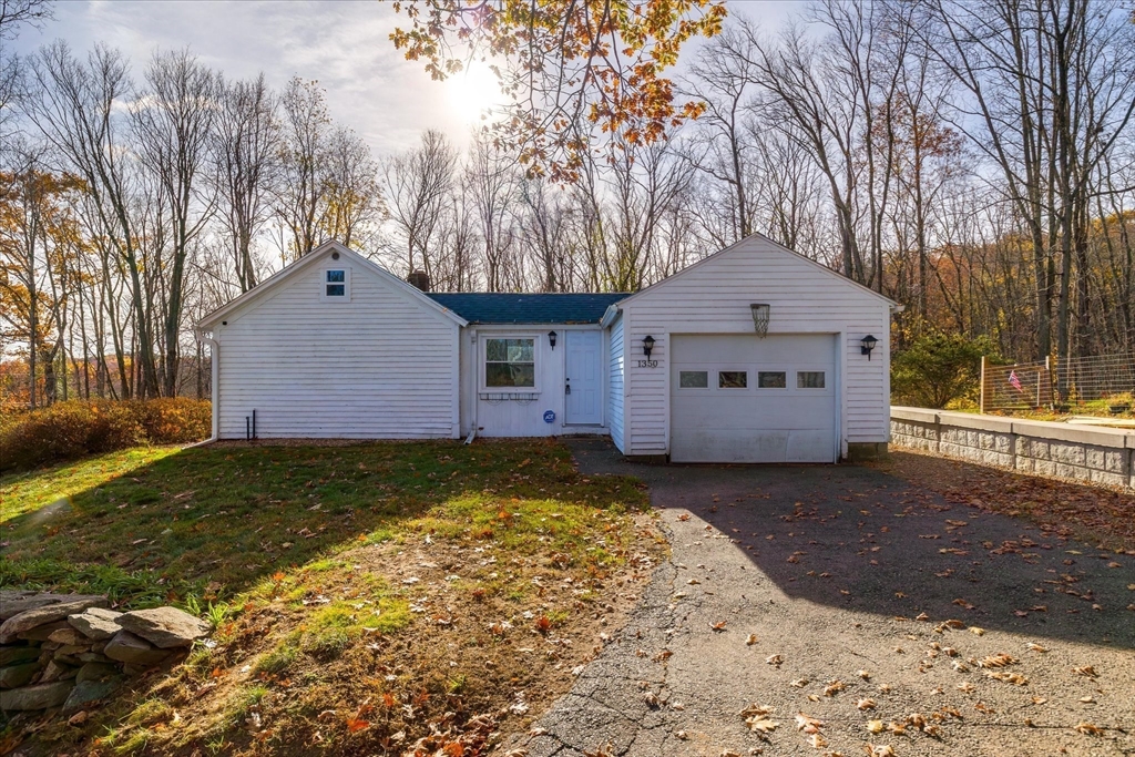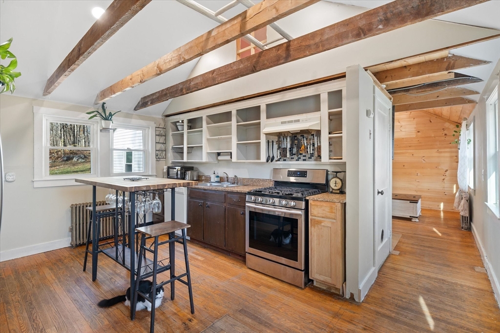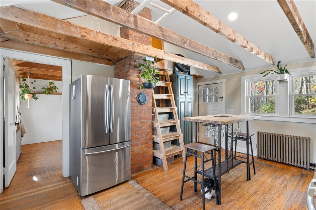 Discover the charm of this cozy 1-bed, 1-bath ranch nestled on a peaceful 1-acre lot surrounded by acres of forest. Offering 740 sq. ft. of well-designed living space, this hidden country retreat is ready for your finishing touches. The living room features a wooden vaulted ceiling that flows into a quaint kitchen with a stainless steel fridge, gas range, and dishwasher. Exposed joists add rustic character throughout, complemented by a spacious bedroom and a bathroom accented with natural stonework. Two small loft spaces offer perfect reading nooks or extra storage. A single car garage provides parking out of the elements, storage, or convert for more living space! Outside you will find a shed, a relaxing fire pit, and raised garden beds. The walk-out basement includes a Peerless boiler, new electrical panel, and generator hook-up. This property is ideal for home-based work, a studio, or future expansion. Septic will not meet current code. Cash or rehab loan only. Property sold as-is