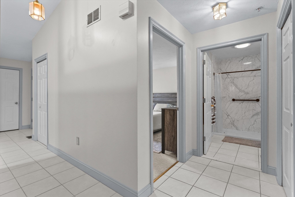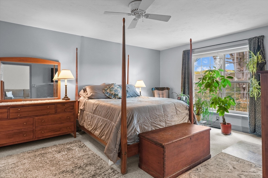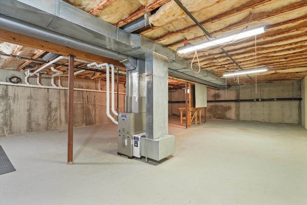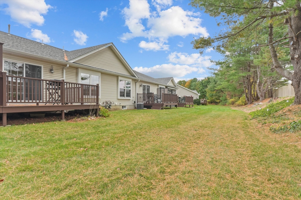 Welcome to The Village at Newburyport! Enjoy the ease of single-level living in this well maintained home featuring a bright, open floor plan with cathedral ceilings. The kitchen flows seamlessly into the spacious dining and living areas, offering an inviting atmosphere and direct access to the deck. This home includes two bedrooms, highlighted by a primary suite with en suite bath, a walk-in closet, plus a second laundry closet for added convenience. Two updated full baths with new walk-in showers. The expansive, unfinished basement provides excellent storage or potential for future living space. Additional features include a freshly painted interior, newer HVAC system and hot water tank, newer laundry units, 5 year old roof and an attached one-car garage. Ideally located across from the clubhouse and close to all that Newburyport has to offer!