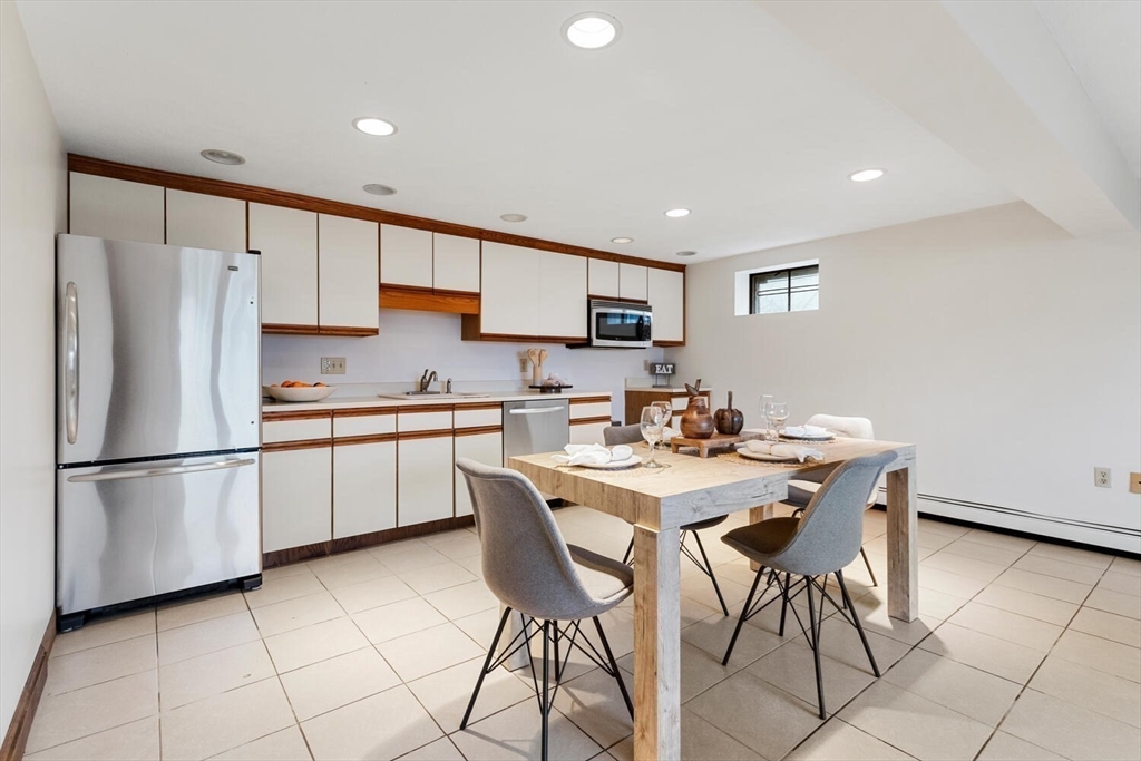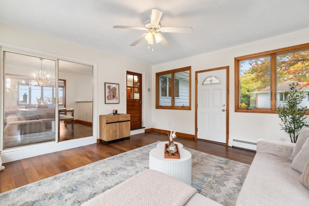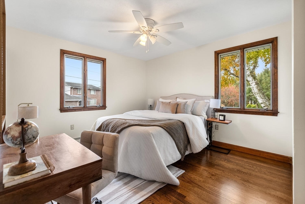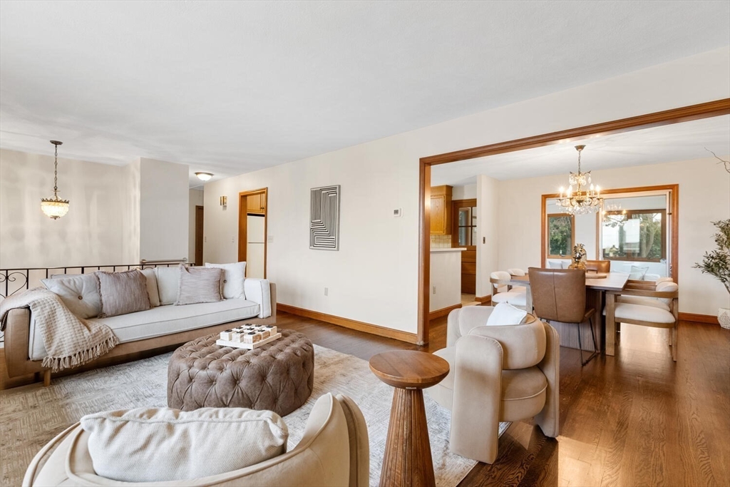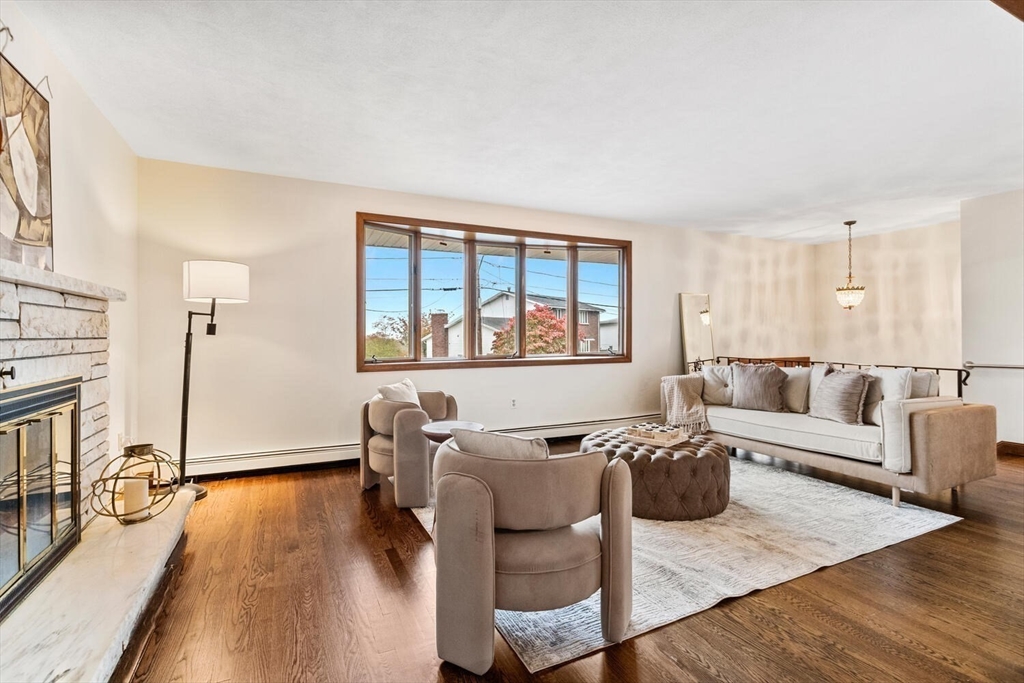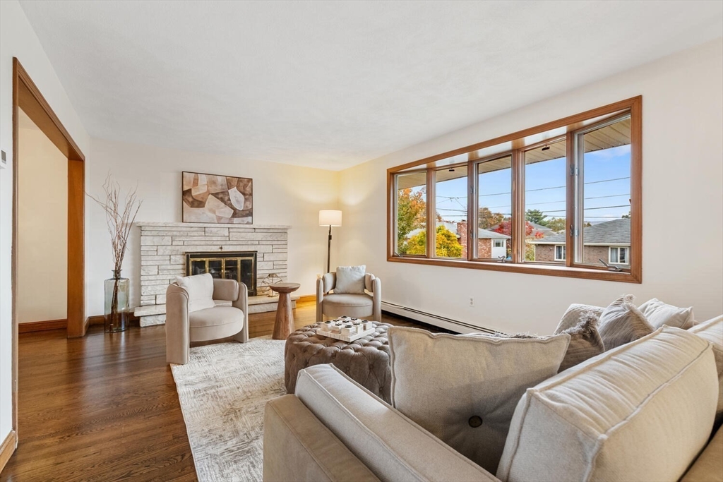 One owner - custom built 3 bed/3 bath Split-Entry home! This beautiful & spacious home sits on the highly coveted Rita Drive - a private culdesac! A wonderful entertaining home awaits you! The well-sized living room is complemented by a wood-burning fireplace with marble hearth, bay window, & newly refinished hardwood floors. The adjacent dining room flows nicely into the eat-in-kitchen & the family room that features new vinyl flooring & windows galore! Enjoy the sunshine in this room overlooking the lovely yard! Three bedrooms, including a primary bedroom with ensuite & an additional modern bathroom complete the main level. Step down into the lower level into the second family room complete w/a second wood burning fireplace, kitchenette, laundry, & 3/4 bath! Attached 2 car garage, gas heating, & newer exterior & interior painting. Close to 93, Wright's Pond, MBTA, bus line, Spot Pond & the hiking & biking trails of the Middlesex Fells. You could be home for the holidays!
