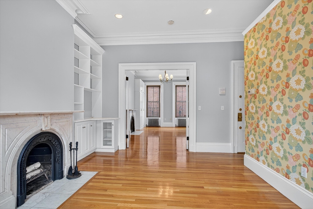 Prime Historic Town Hill Location! Dramatic 1 bedroom, 1.5 bathroom with the most amazing detail! Totally refreshed with all new paint, new appliances and custom window blinds! Lovely open concept living room & dining room with original fireplace mantel, custom built-in shelving and cabinetry! Sunshine from every oversized window with East & West sun! European style galley kitchen! Huge bedroom en suite with period double doors & endless closet space! 1.5 Baths! Free Laundry! Designer accent wall, beautiful moldings & towering ceiling height throughout complete this rare offering. City Living at its finest just minutes from Whole Foods, T, restaurants, waterfront, North End & Financial District! A Superior Rental Opportunity near all that Charlestown has to offer! Available 11/1, 11/15 OR 12/1/2025.
