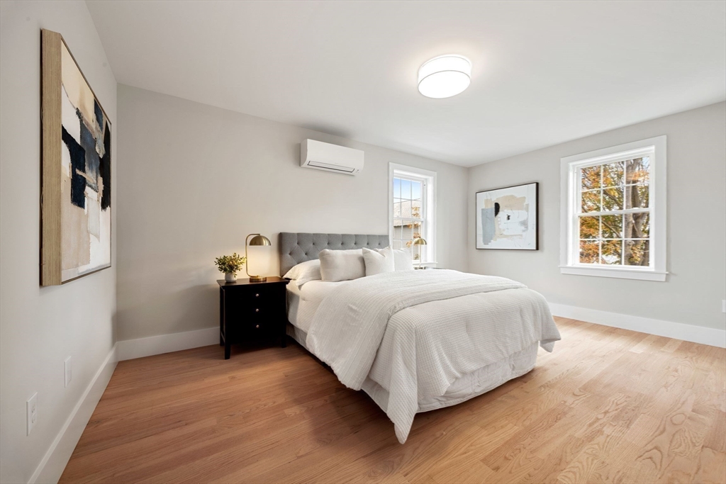 This brand-new, custom-built, energy-efficient townhouse is bathed in natural light and showcases the perfect blend of modern design and everyday comfort. Upon entering, you’re welcomed into a spacious open-concept kitchen-living-dining area featuring an expansive island, white cabinetry, stainless steel appliances, recessed lighting, and hardwood floors — ideal for both entertaining and relaxed living.The second floor hosts three generously sized bedrooms, including one with an ensuite bath with a tiled shower, plus a well-appointed main bathroom and a convenient laundry area with built-in cabinetry. The third-floor primary suite offers a private retreat with two large closets, a cozy sitting area, and a luxurious ensuite bath. An unfinished basement provides great potential for future expansion, while the attached one-car garage adds everyday convenience. Perfectly situated near the Minuteman Bikeway, Arlington Center, and a variety of shops and restaurants. This home has it all!