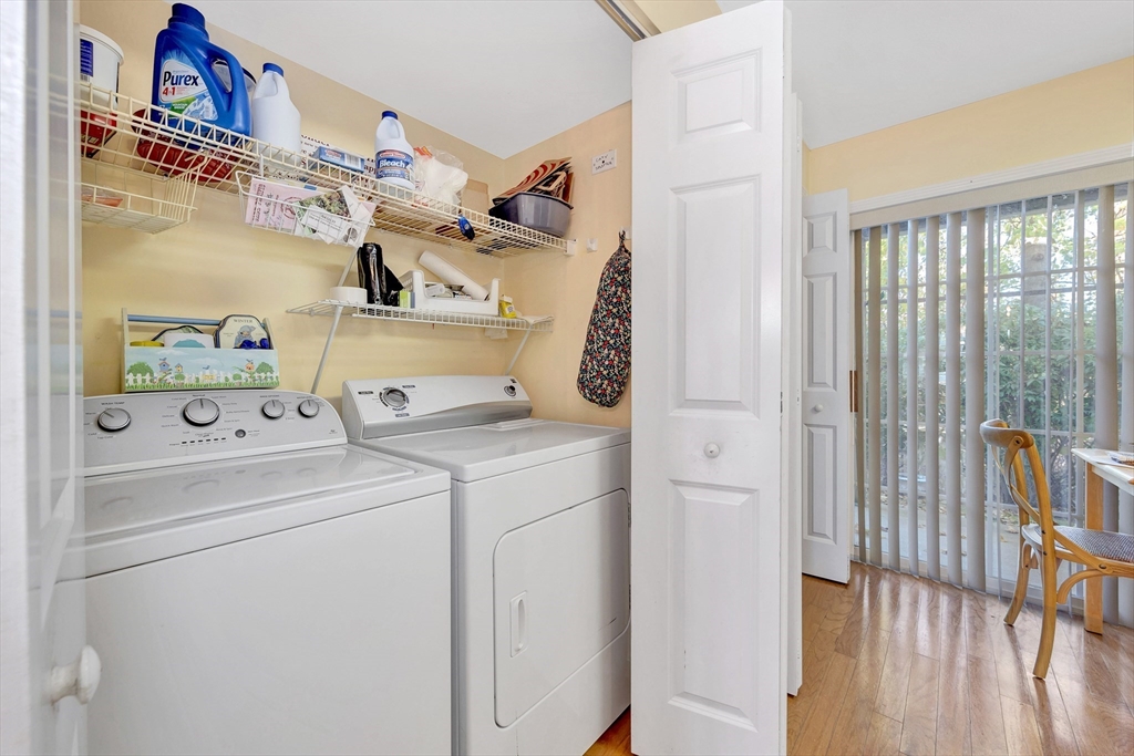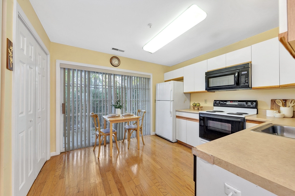 Great opportunity for one-floor living in this oversized 2-bedroom, 1-bathroom condominium in prestigious Danforth Village, an Over-55 community. The living/dining area offers an open floor plan and faces south. The fully applianced, eat-in kitchen features a slider that opens to your private covered patio, overlooking greenery. Off the kitchen is your laundry area with a washer and dryer and utility closet. Both bedrooms are good sized with ample closet space. This home boasts hardwood floors, gas heat, central air conditioning, extra storage and parking for 2 cars. This condominium is in the heart of it all, moments to public transportation, restaurants, and the shops of O'Connor's Plaza and Billerica Center. Pets under 30 pounds are welcome.