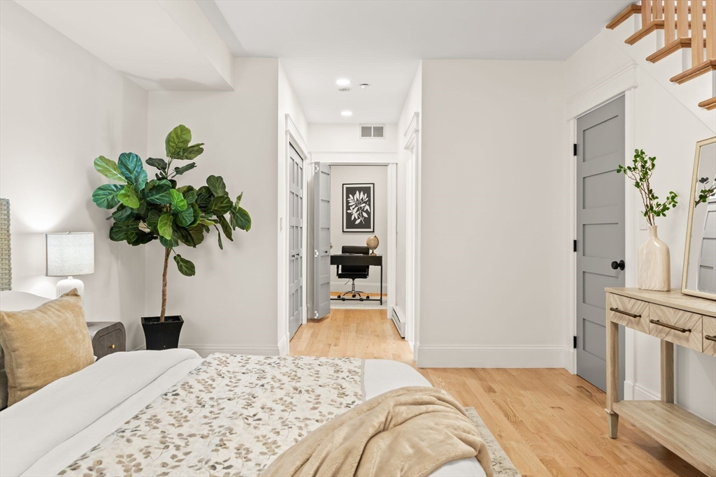 Short-term Furnished Rental Available starting December 1st. Perched on top of Thomas Park with views of the Harbor and across from the completely redone park at Dorchester Heights, this 1-bedroom plus den,1.5-bath home offers calming ocean views with nearly 1,000 sq. ft. of smartly laid out living space. The primary suite features a spa-like bath with radiant heated floors & 2-lg closets for excellent storage. A versatile flex space off the suite provides the perfect spot for a nursery, home office, or workout area. In-wall Polk Audio speakers & a smart lighting system add modern touches, while freshly refinished hardwood floors & a gas fireplace bring warmth/character. Double doors off the living room connect directly to a private deck, extending the space for seamless indoor-outdoor living. A massive common roof deck delivers sweeping views of downtown Boston/the Harbor. Close to the beach, both East/West Broadway, dining, shops, & restaurants/bars.