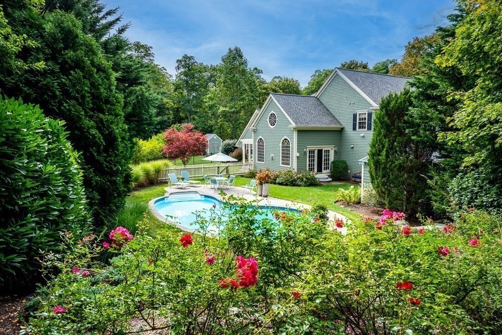 Welcome to 5 Pine Street, an executive style home in a prime Sandwich Village location. An idyllic setting, just down the street from local gardens, museums, nature paths, restaurants and cafés. Minutes away from the Sagamore bridge makes a commute to the Boston area within reach. This thoughtfully designed Colonial offers six spacious bedrooms, a home office, five and a half bathrooms and multiple gas fireplaces. This home has been meticulously maintained, boasting spectacular grounds with mature plantings and an in-ground pool for hosting all of life's events. This property is an ideal place for entertaining and spending time with your most cherished people. High-end finishes throughout, with top of the line appliances, cherry floors, and an extensive list of amenities. A true must-see. The lower level offers additional living space with a home gym, pool room, office/craft space, plus a media room. Enjoy a seamless blend of comfort and elegance in a home designed for entertaining.