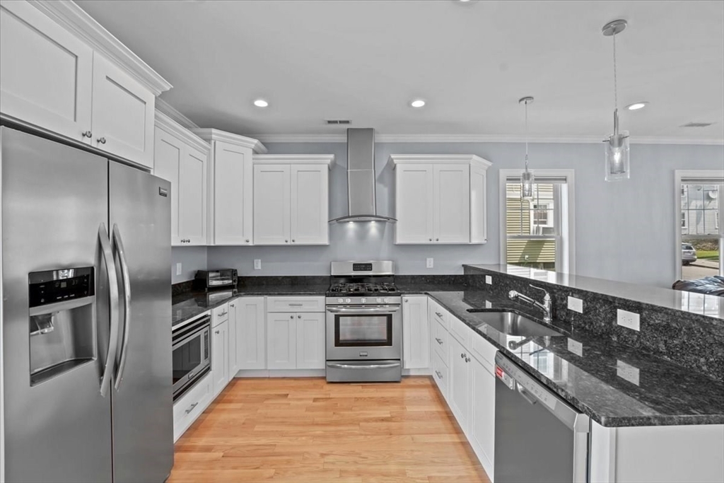 Location, Location! Built from the ground up in 2017, this well maintained townhouse checks off all the boxes! Parking just outside your door! Attention to detail with no expense spared! Immaculate 3 bedroom, 2.5 bathroom with a true single family feel. Open concept, sundrenched living room & dining room alongside a stunning gourmet kitchen featuring sleek granite countertops, stainless steel appliances and a breakfast bar! Private deck off the kitchen and a 1/2 bath convenient for guests complete the first floor. Upstairs you'll find three bedrooms including a primary with an en-suite tiled bath! Hardwood floors throughout! Full basement with excellent ceiling height is the perfect add-value opportunity or simply use for extra storage! Central Air, Laundry & 2 off-street Parking Spaces complete this rare offering! Minutes away from Quincy center, public transportation, restaurants, shops and more!