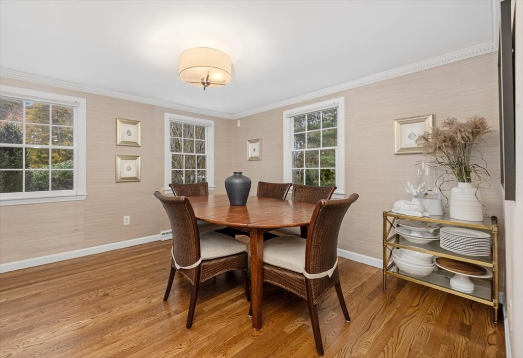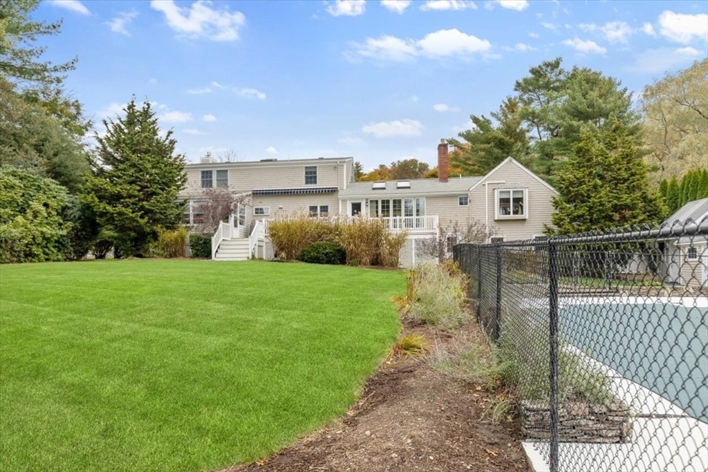 Welcome to 161 Cross Street, a pristine, sun filled Norwell Cape in a highly desirable location. This 3 bedroom, 3 bath home is currently lived in as a 4 bedroom and features hardwood floors throughout. The inviting living room with gas fireplace opens to the kitchen for easy entertaining, while the elegant dining room adds sophistication. Enjoy the cozy family room with its own gas fireplace or unwind in the bright sunroom. The oversized first floor primary suite offers an ensuite, and the additional bedrooms provide plenty of space. The lower level includes bonus space ideal for a gym, playroom, or media room. Set on 1.36 acres, the private backyard features beautiful trees, open space, and an inground pool, perfect for gatherings. Enjoy the outdoors from the oversized deck. Includes a 2 car attached garage, brand new gas furnace, one year old HVAC, and whole house generator. Turnkey and meticulously maintained. Welcome Home!