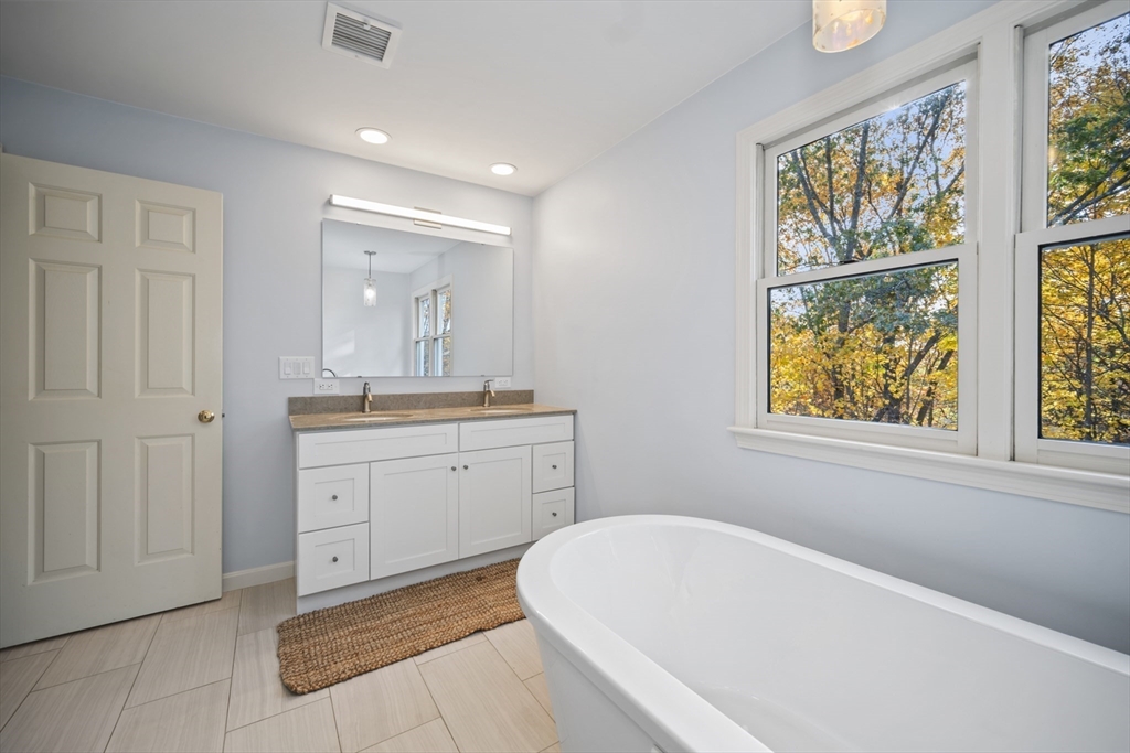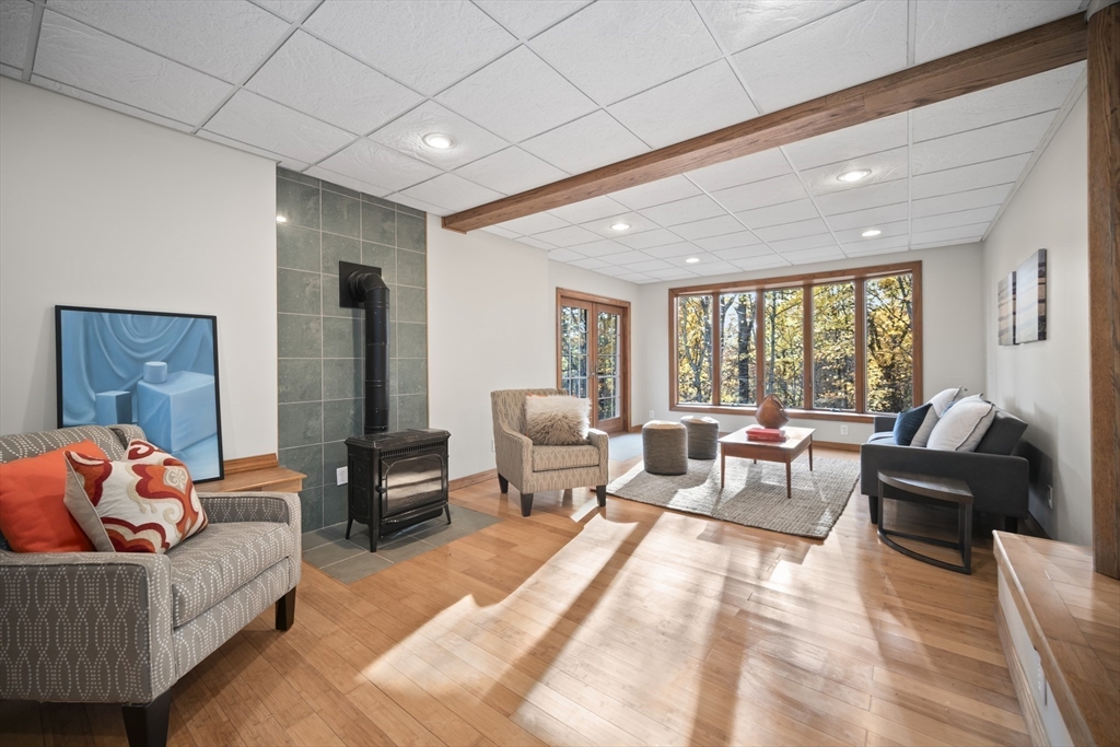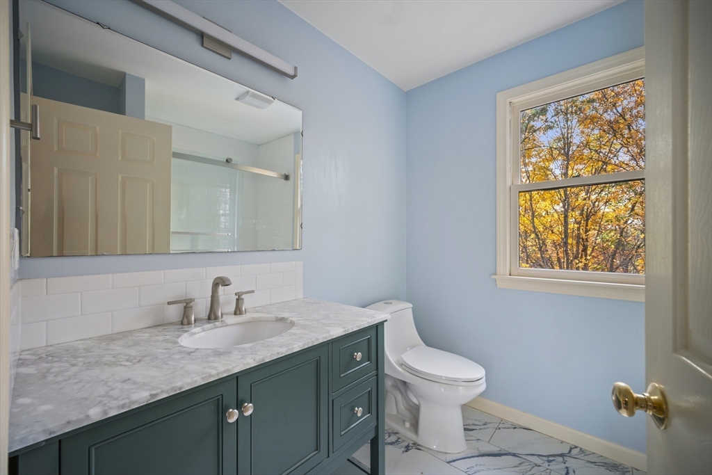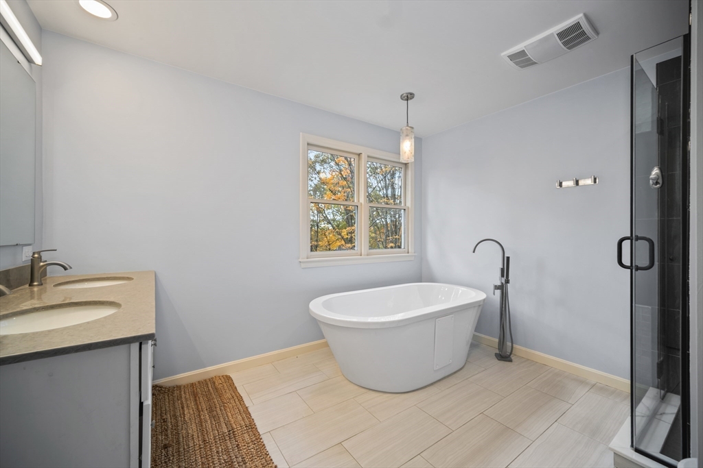 Welcome to 16 Abigail Drive @ Ashford Meadows! This Stunning 12 rm home offers 4 bedroom, 2.5 updated baths on nearly an acre in one of Hudson's most desirable neighborhoods. With over 3,100 sq ft of sun filled living space, this meticulously maintained home boasts timeless elegance & modern comfort. The main level features gleaming hardwood floors, a formal dining room with wainscoting & a 25x14 vaulted family room with a cozy fireplace. The renovated chef’s kitchen will impress with gorgeous granite countertops, stainless steel appliances & a center island perfect for entertaining. Upstairs, the expansive primary suite includes a beautiful spa-like bath & walk-in closet. A finished lower level offers a lg. game room with a wall of windows, hobby rm, & a huge workshop with walk-out access! Central A/C, Gas heat, Owned Solar & so much more! The spacious deck overlooking the private wooded backyard is a perfect escape minutes from conservation land, golf, farm stands & commuting routes