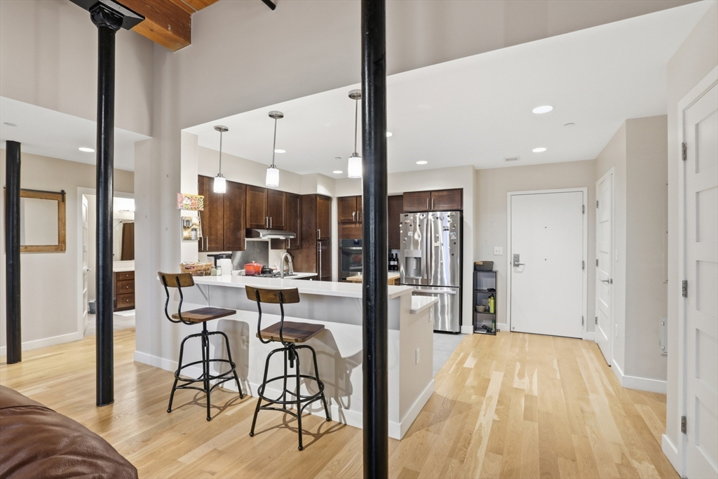 Experience the perfect blend of modern comfort and historic charm in this spacious two-bedroom, two-bath condo located in the highly sought-after Boott Mills Waterfront Lofts. This beautifully maintained residence highlights the mill’s original architectural character, thoughtfully enhanced with modern updates. The open layout includes a versatile den—perfect as a home office, guest space, or cozy reading nook—and a separate laundry room with ample storage. Generous closet space throughout ensures exceptional convenience and functionality.Enjoy the waterfront setting with access to scenic walking paths along the river, all just steps from downtown Lowell’s vibrant shops, restaurants, and amenities. As an added bonus, the washer and dryer are included—a thoughtful gift to make your move even easier.With abundant natural light, stylish design, and an unbeatable downtown location, this condo is the perfect combination of charm, comfort, and convenience.