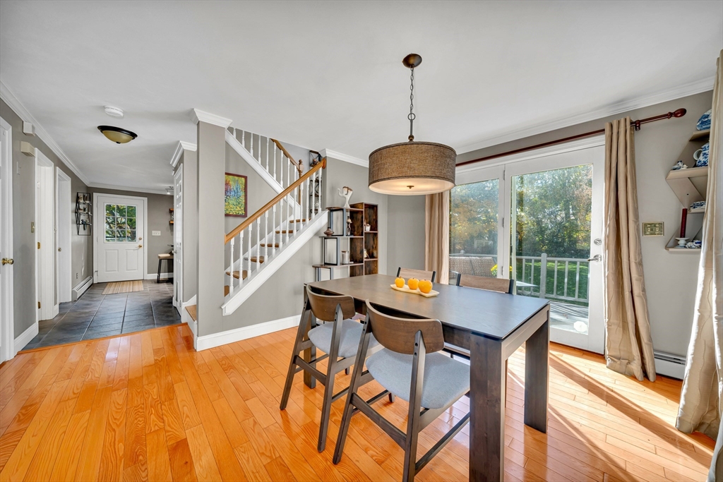 WELCOME TO THIS BEAUTIFULLY MAINTAINED COLONIAL IN THE HEART OF HAVERHILL! This 3-bedroom, 1.5-bath home blends classic charm with modern comfort. The sun-filled first floor features gleaming hardwood floors, crown molding, and an open layout connecting the living and dining rooms. The stylish kitchen offers stone countertops, an island, stainless steel appliances, and pendant lighting. Upstairs, the vaulted-ceiling primary suite includes a walk-in closet and private balcony. The partially finished lower level provides bonus space ideal for a gym or playroom. Enjoy outdoor living with a deck, patio, and storage shed surrounded by landscaped grounds. Conveniently located near Winnekenni Park and major routes for easy commuting. DON’T MISS THIS INCREDIBLE OPPORTUNITY TO OWN THIS MOVE-IN READY HOME!
