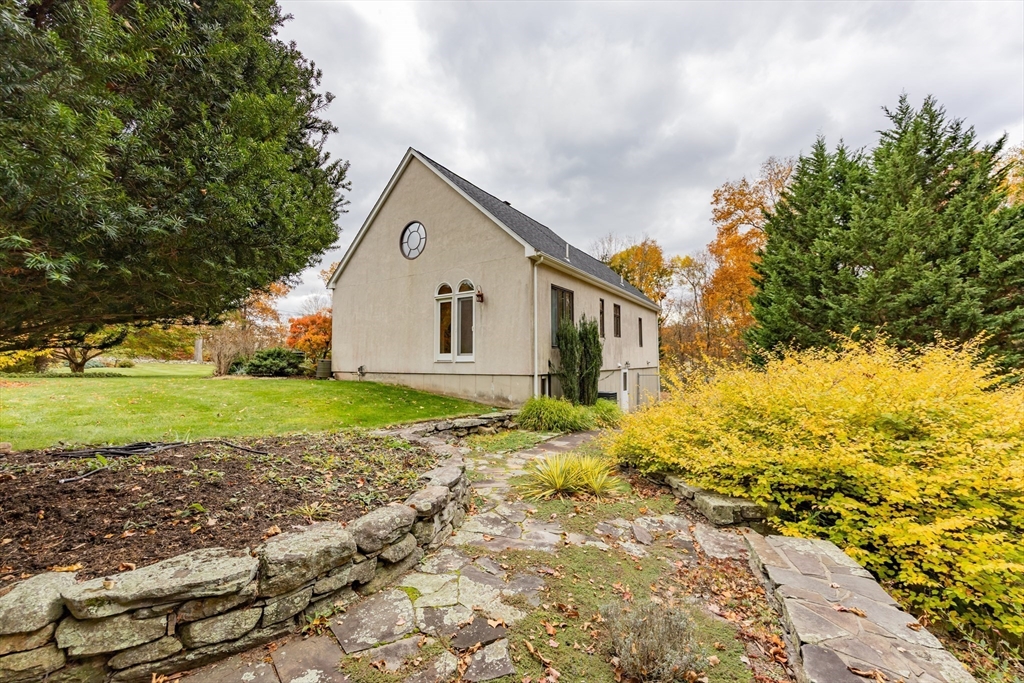 Discover this charming 2-bedroom, 1-bath home nestled on over 3 acres of beautifully manicured land — perfect for first-time buyers or those looking to downsize in style. Enjoy serene outdoor living with patio areas, stone walls, and custom shrubbery that create a private, park-like setting. The inviting front porch with graceful archways offers a true zen oasis. Inside, you'll find a spacious kitchen ideal for gathering, a large living and entertaining area with stunning custom hardwoods, and freshly repainted interiors. The partially finished basement offers the potential for one or two additional rooms, expanding your living space. Peaceful country living with modern comfort — a rare find!