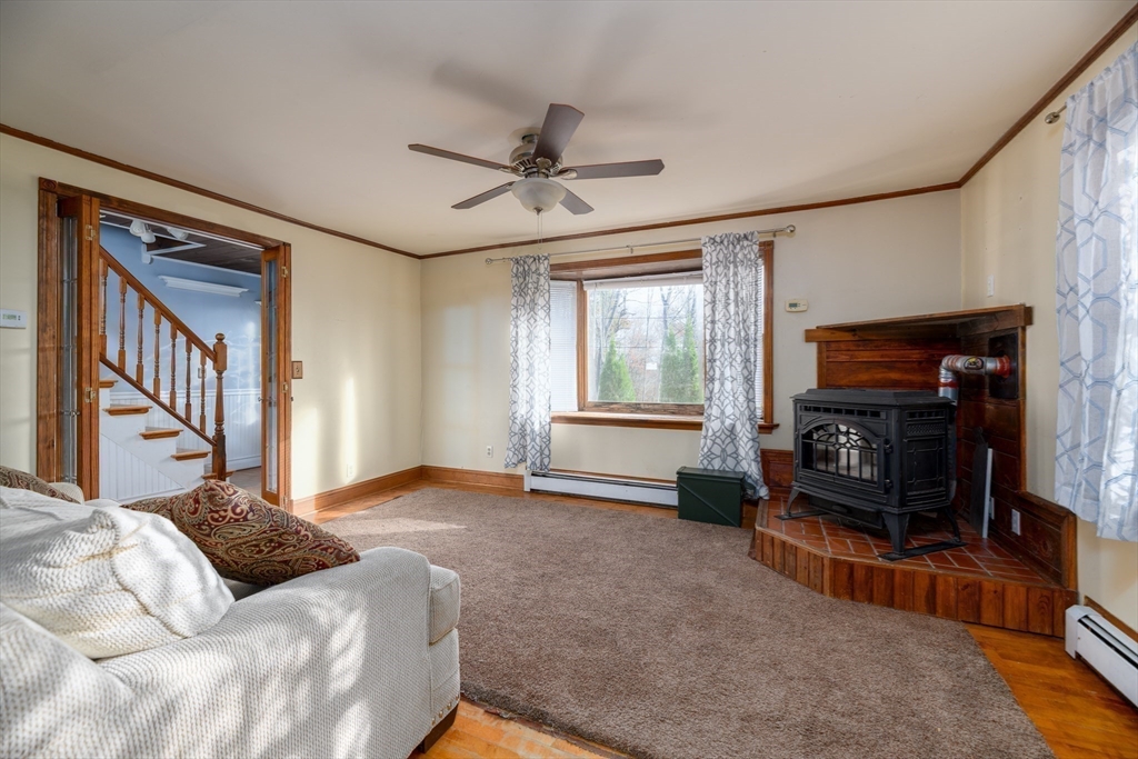Welcome to 190 Summer St a beautiful blend of classic character and modern convenience. This 3-bedroom, 2-bath home is perfectly situated in the heart of Barre, offering easy access to local shops, schools, restaurants, and town amenities, while still providing the peaceful atmosphere of small-town living.Step inside to discover warm hardwood floors that flow throughout the main living space, creating a cozy and inviting feel. The bright and open kitchen features stainless steel appliances, ample cabinet space, and a rustic wood-paneled ceiling that adds unique charm. Just off the kitchen, the formal dining room offers the perfect spot for family meals or entertaining, with French doors and natural light enhancing the space. Upstairs, you’ll find comfortable bedrooms with generous closet space, and a second full bath. The outdoor space makes the most of the acreage featuring a spacious private yard ,brick patio, and endless landscaping potential , perfect for entertaining. A must see!