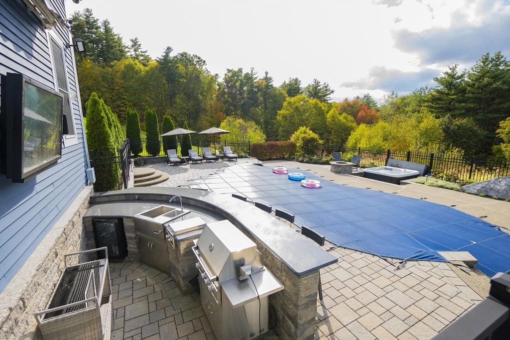 Step into modern luxury with this architectural masterpiece on 2.59 acres in Berlin. This expansive home offers seven bedrooms, six bathrooms, and a perfect blend of contemporary elegance and warmth. The gourmet kitchen features sleek design, a spacious island, walk-in pantry, and eat-in area. The opulent primary suite boasts breathtaking views, plus four additional upstairs bedrooms. The finished lower level includes a fifth bedroom, gym area, and access to a stone patio. Outdoors, enjoy a heated saltwater pool, hot tub, fire pit, outdoor kitchen, and bar. Inside, find soaring ceilings, hardwood floors, a granite fireplace, office/guest room, oversized playroom, and a stunning master bath with Italian marble. Additional features include surround sound, video surveillance, Aqua Pod lighting, Mist Guard, whole-house generator, and a heated three-car garage. This residence combines luxury, privacy, and modern living at its finest.
