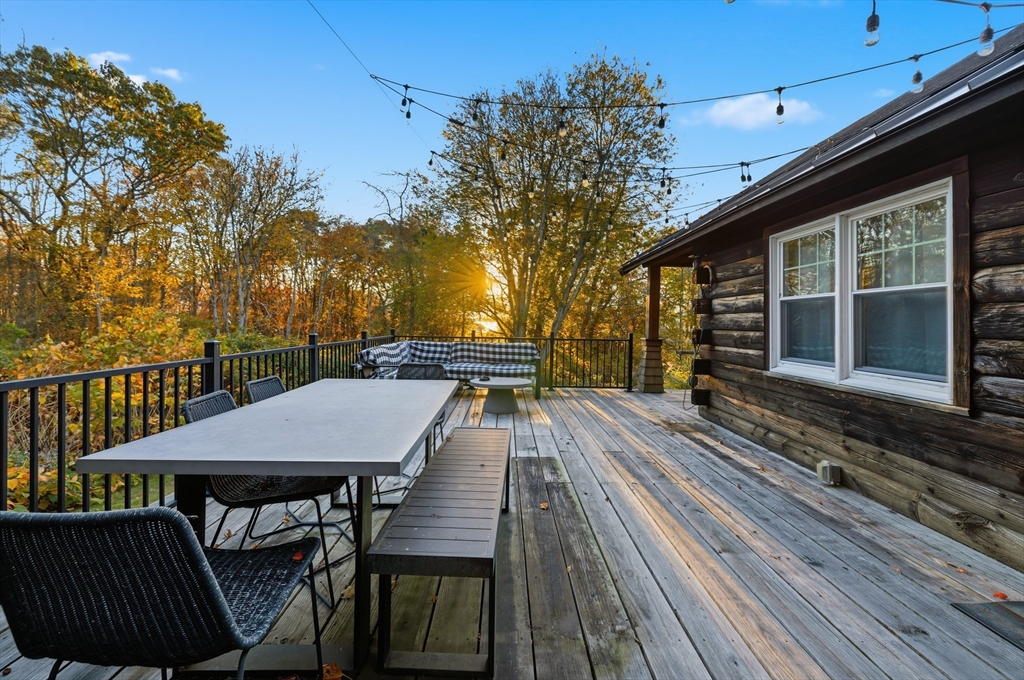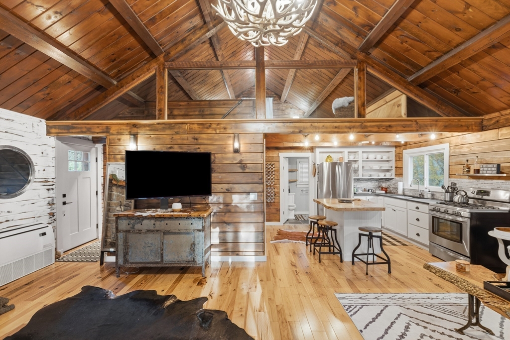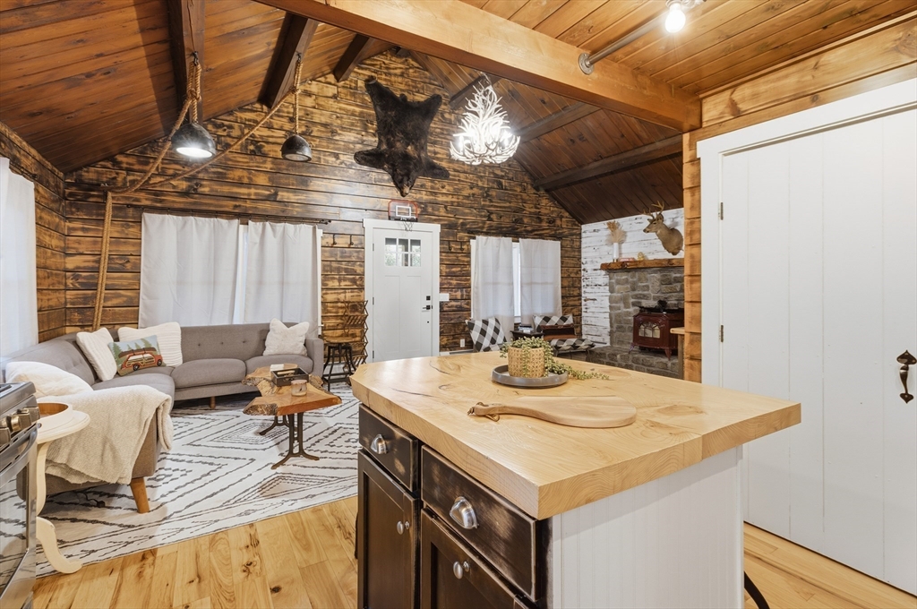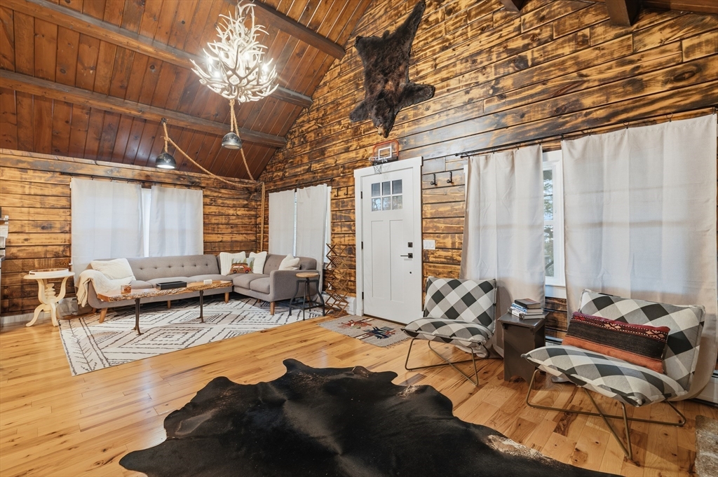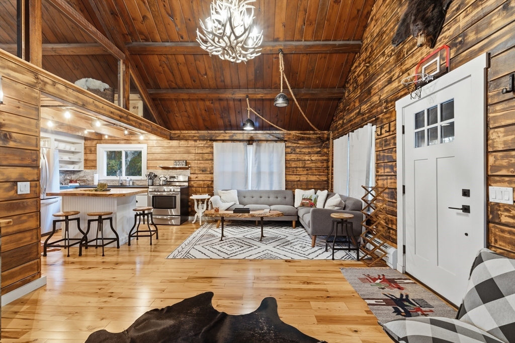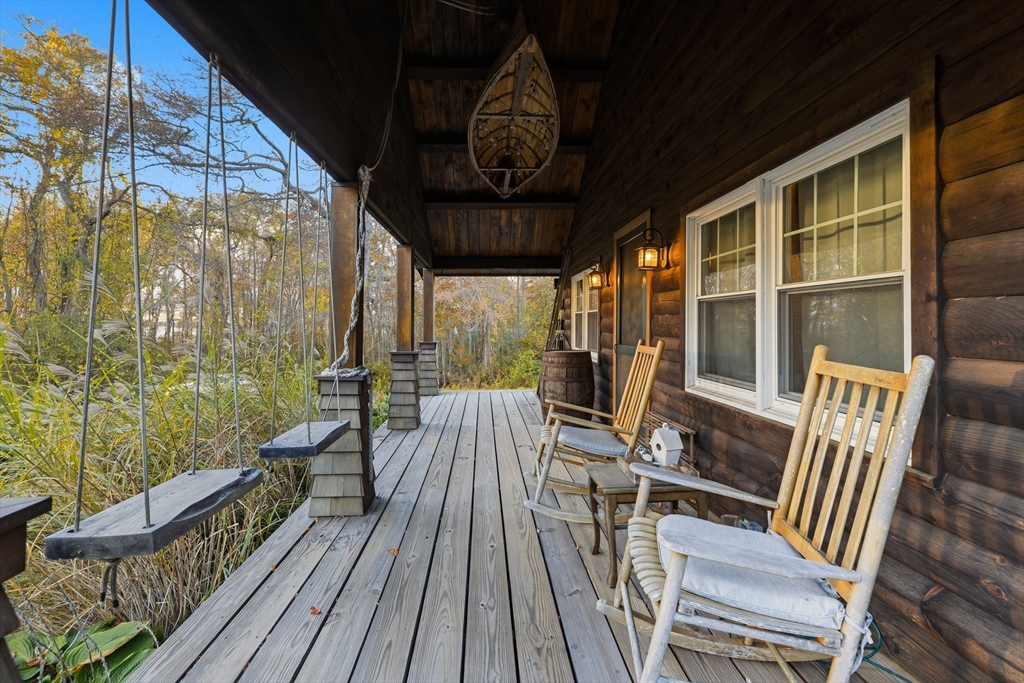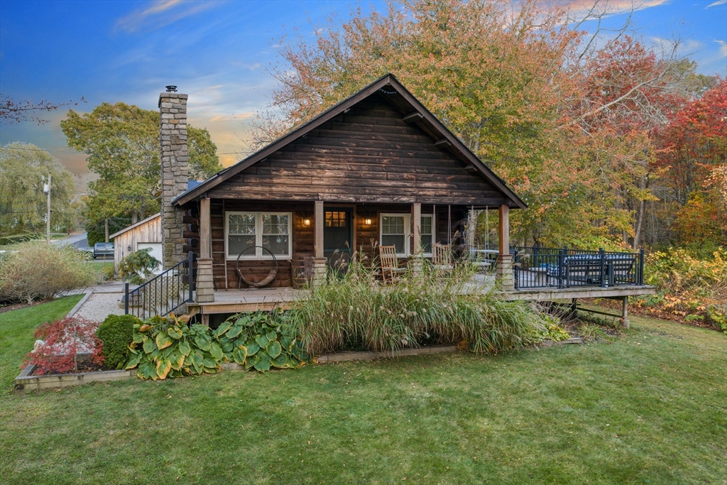 Just WOW! Located on Sconticut Neck! Escape to a truly unique retreat. Where the rustic charm of a custom log cabin, meets the tranquil rhythm of coastal living. Enjoy your morning coffee on the large covered front porch, while listening to the sound of the waves crashing on the shore. The open concept living room with vaulted ceilings, a stone fireplace and exposed beams will greet you. This warm and inviting space will make you feel right at home! The modern kitchen offers custom cabinets, solid surface countertops & stainless steel appliances. Enjoy the modern bathroom with a tiled walk-in shower. Beautiful hardwood floors throughout. One bedroom on the first floor and a grand loft bedroom on the second floor. The oversized rear deck features an outdoor shower, and plenty of space to entertain. Featuring a two car garage. Enjoy the quiet embrace of your cabin after a day of sun and fun. Home - where the smell of salty air mingles with the sounds of nature. A truly unique experience!