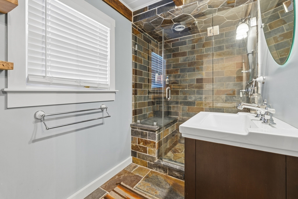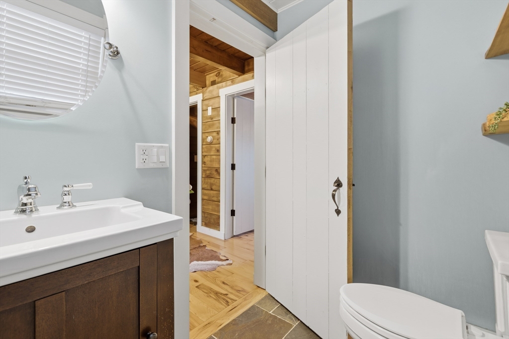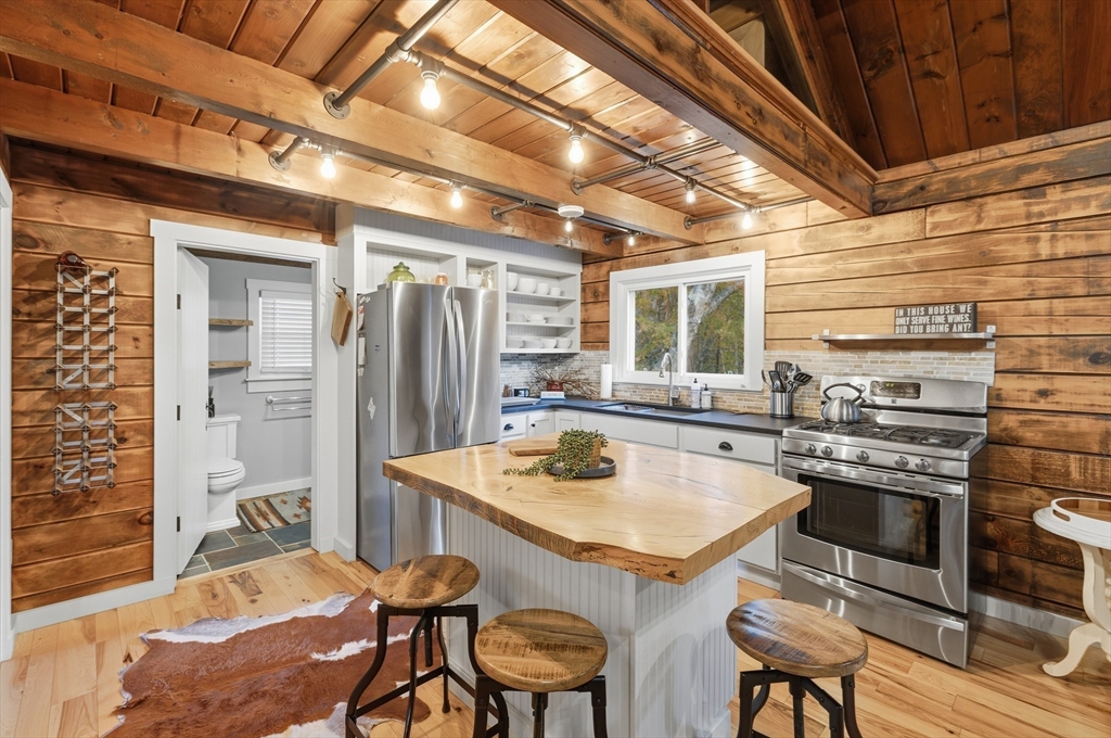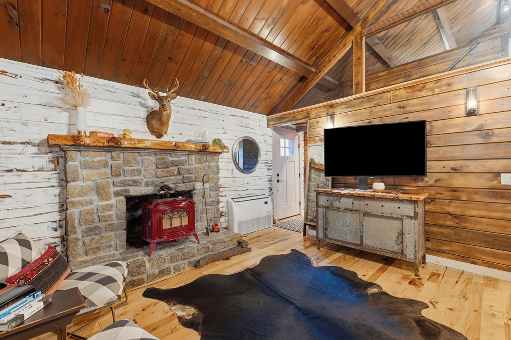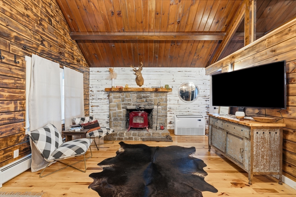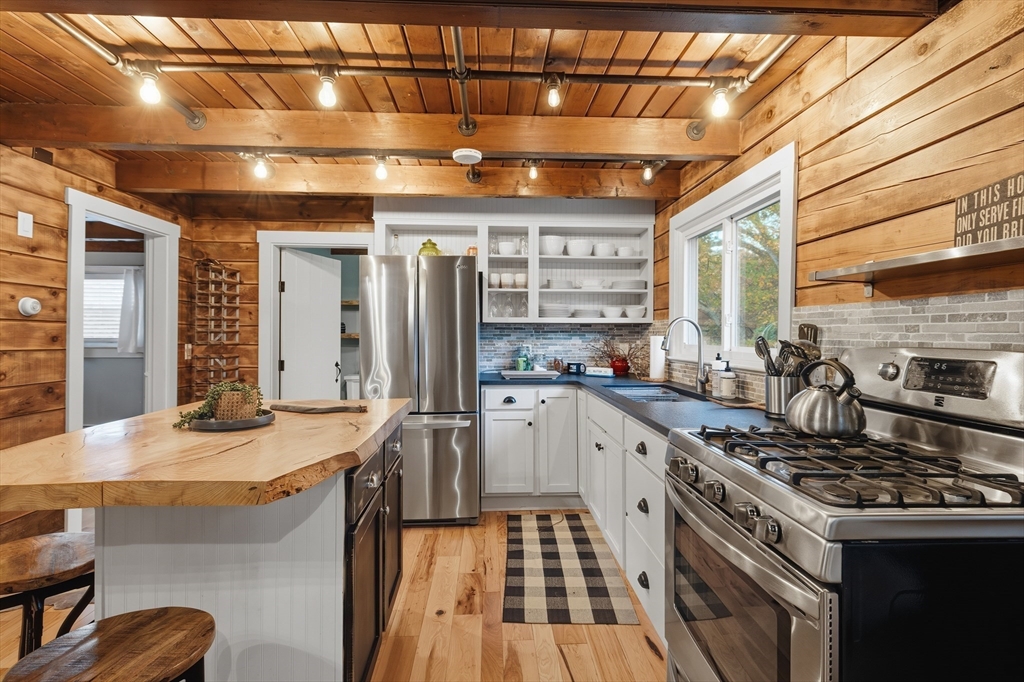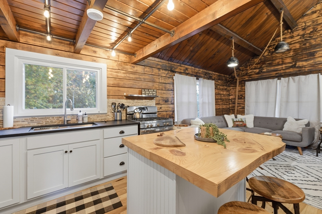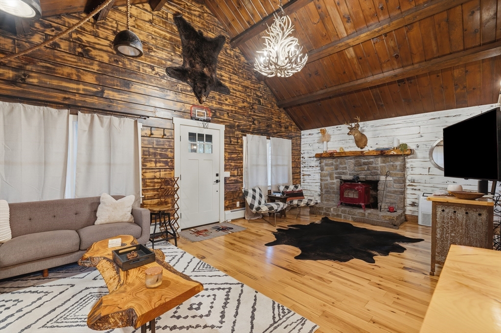 Just WOW! Located on Sconticut Neck! Escape to a truly unique retreat. Where the rustic charm of a custom log cabin, meets the tranquil rhythm of coastal living. Enjoy your morning coffee on the large covered front porch, while listening to the sound of the waves crashing on the shore. The open concept living room with vaulted ceilings, a stone fireplace and exposed beams will greet you. This warm and inviting space will make you feel right at home! The modern kitchen offers custom cabinets, solid surface countertops & stainless steel appliances. Enjoy the modern bathroom with a tiled walk-in shower. Beautiful hardwood floors throughout. One bedroom on the first floor and a grand loft bedroom on the second floor. The oversized rear deck features an outdoor shower, and plenty of space to entertain. Featuring a two car garage. Enjoy the quiet embrace of your cabin after a day of sun and fun. Home - where the smell of salty air mingles with the sounds of nature. A truly unique experience!