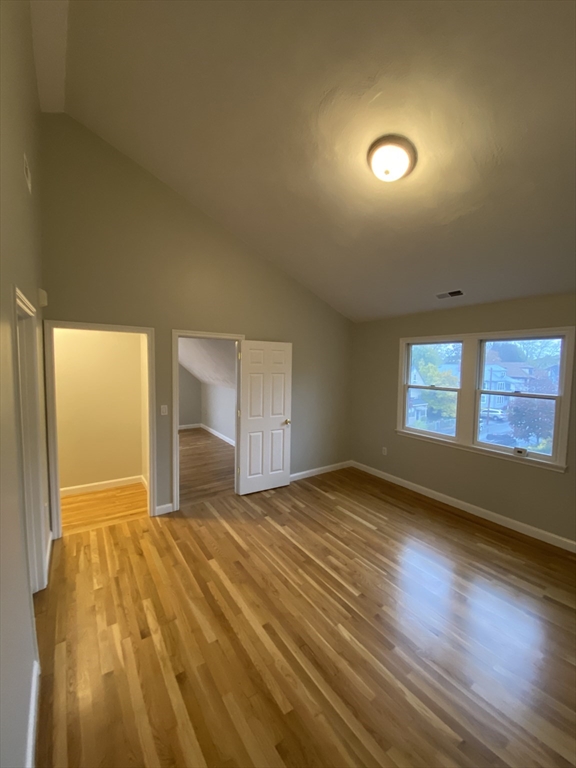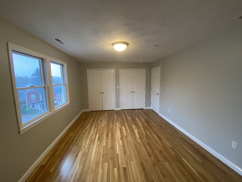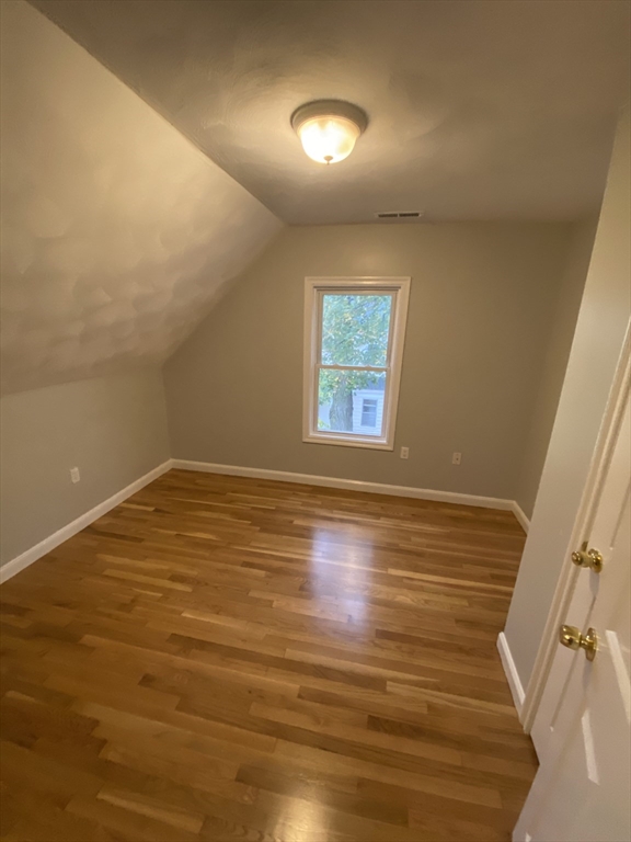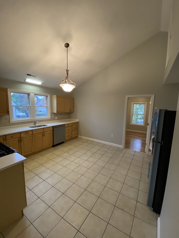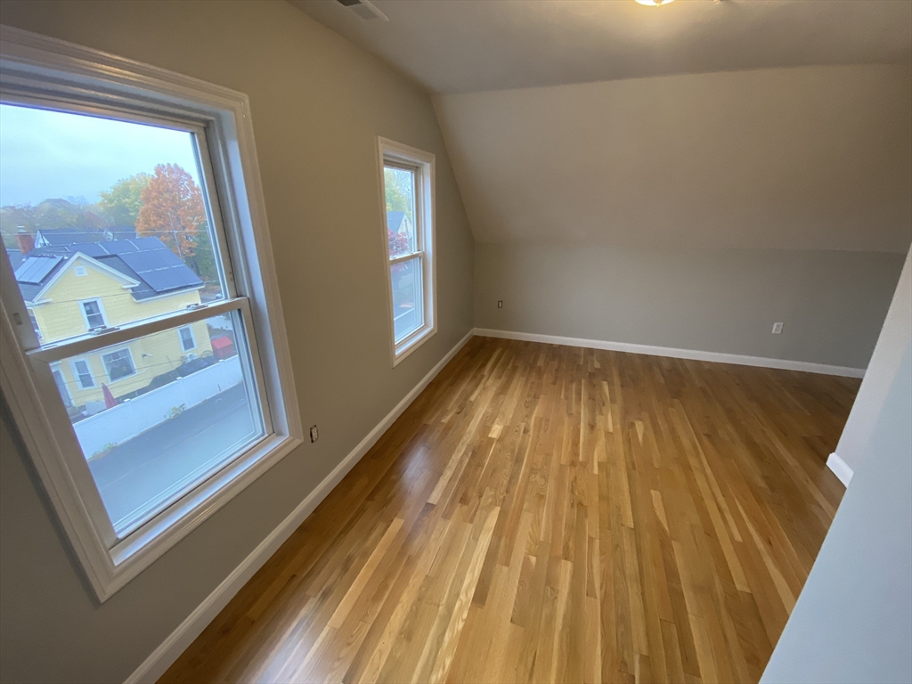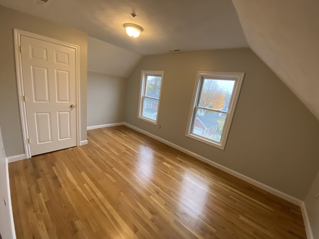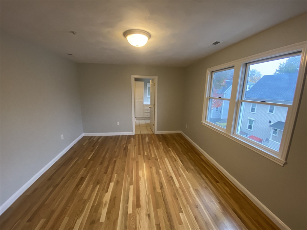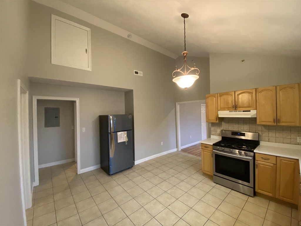 Spacious and beautifully updated 3-bedroom, 1-bath apartment on the top floor of a quiet 3-family home in North Andover. This 1,300 sq. ft. unit features cathedral ceilings, central air conditioning, quartz countertops, new dishwasher and refrigerator, refinished hardwood floors, and fresh paint throughout. Tile floors in kitchen and bath. Large master bedroom (12’x11’), second bedroom (11’x10’), and third bedroom (~120 sq. ft.). Laundry hookups in basement, street parking, and access to a peaceful backyard. Excellent condition—built approximately 20 years ago. Located in a quiet family neighborhood close to the commuter rail, shopping, and restaurants. Tenant pays gas heat and electricity; landlord pays water and sewer. Unit is deleaded. No large pets (small pets considered with deposit). First, last, and security required. Background and credit check mandatory. Available now.